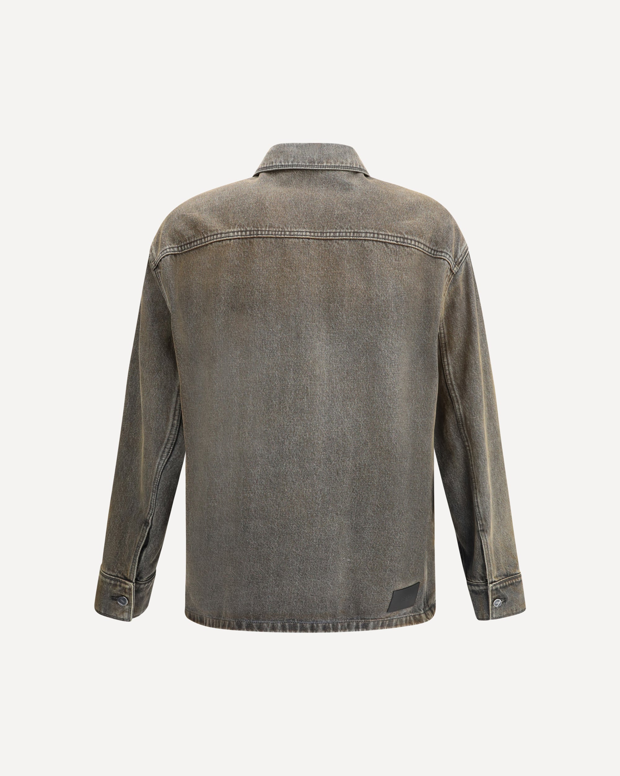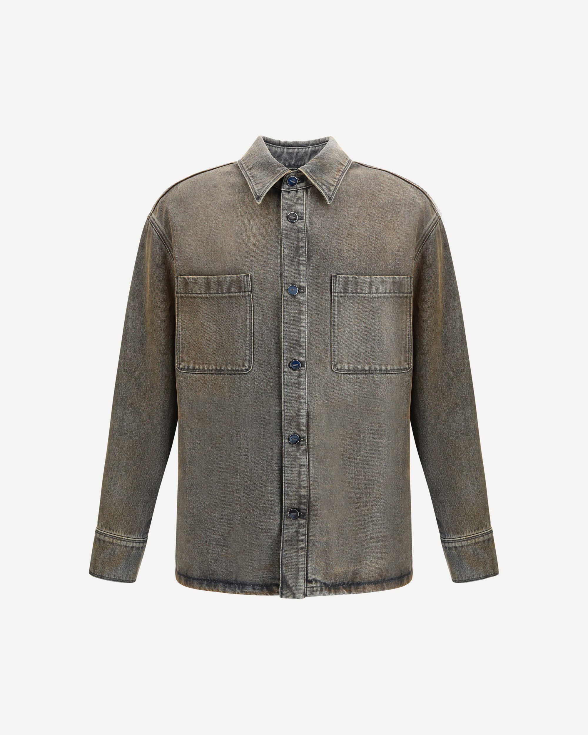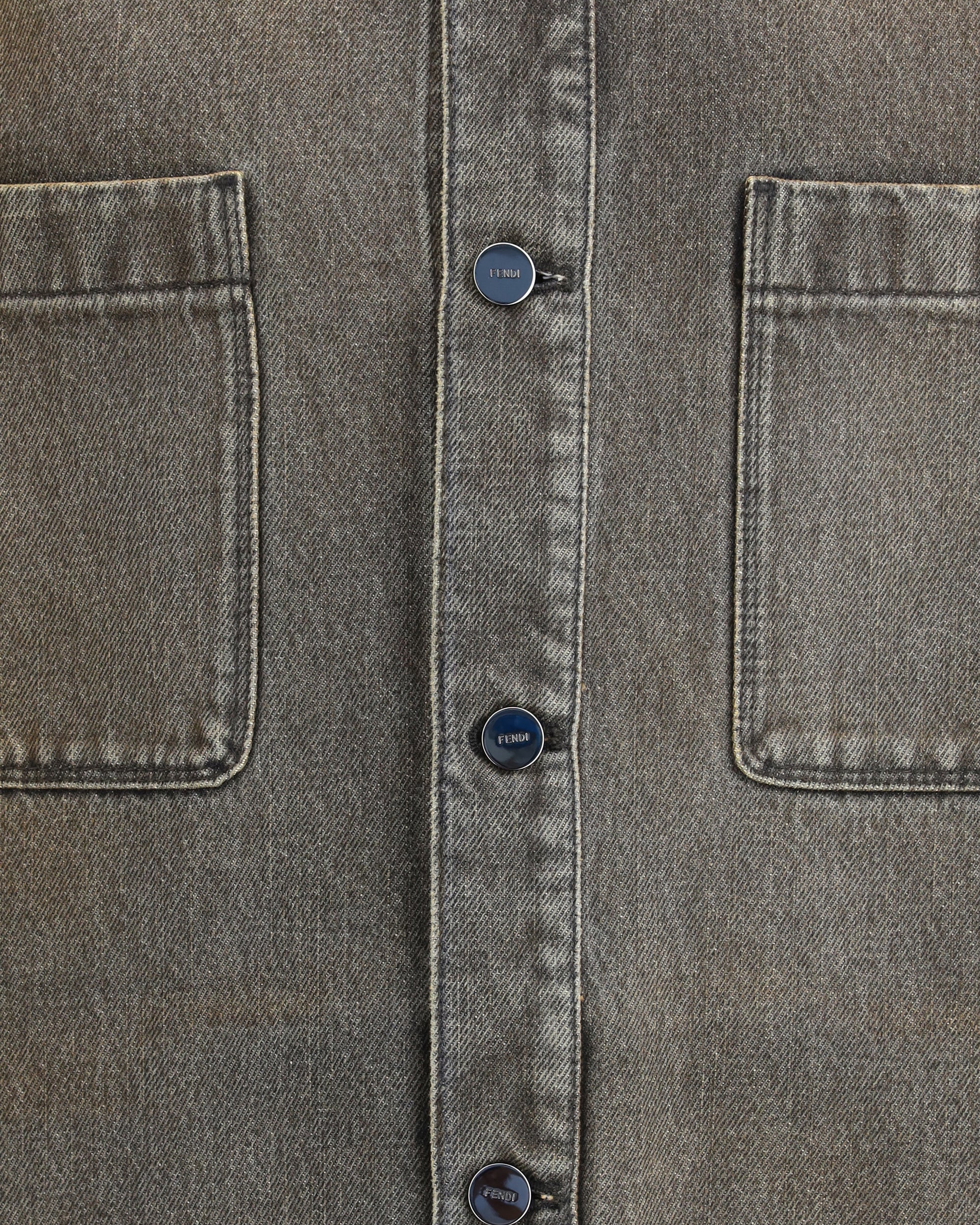 La Camicia in Denim sovratinto di Fendi rivela un carattere deciso e contemporaneo. Il taglio dalle spalle scese e le tasche a toppa sul petto le conferiscono un’allure informale ma sofisticata, mentre la chiusura frontale con bottoni logati in metallo ne sottolinea il pregio artigianale. Realizzata in denim sovratinto color grigio, si distingue per la texture intensa e ricercata. Sul taschino sinistro spicca il patch in pelle nera con logo Fendi, dettaglio iconico che dialoga con gli accessori metallici dalla finitura palladio. Un capo essenziale e distintivo, capace di elevare il guardaroba quotidiano.