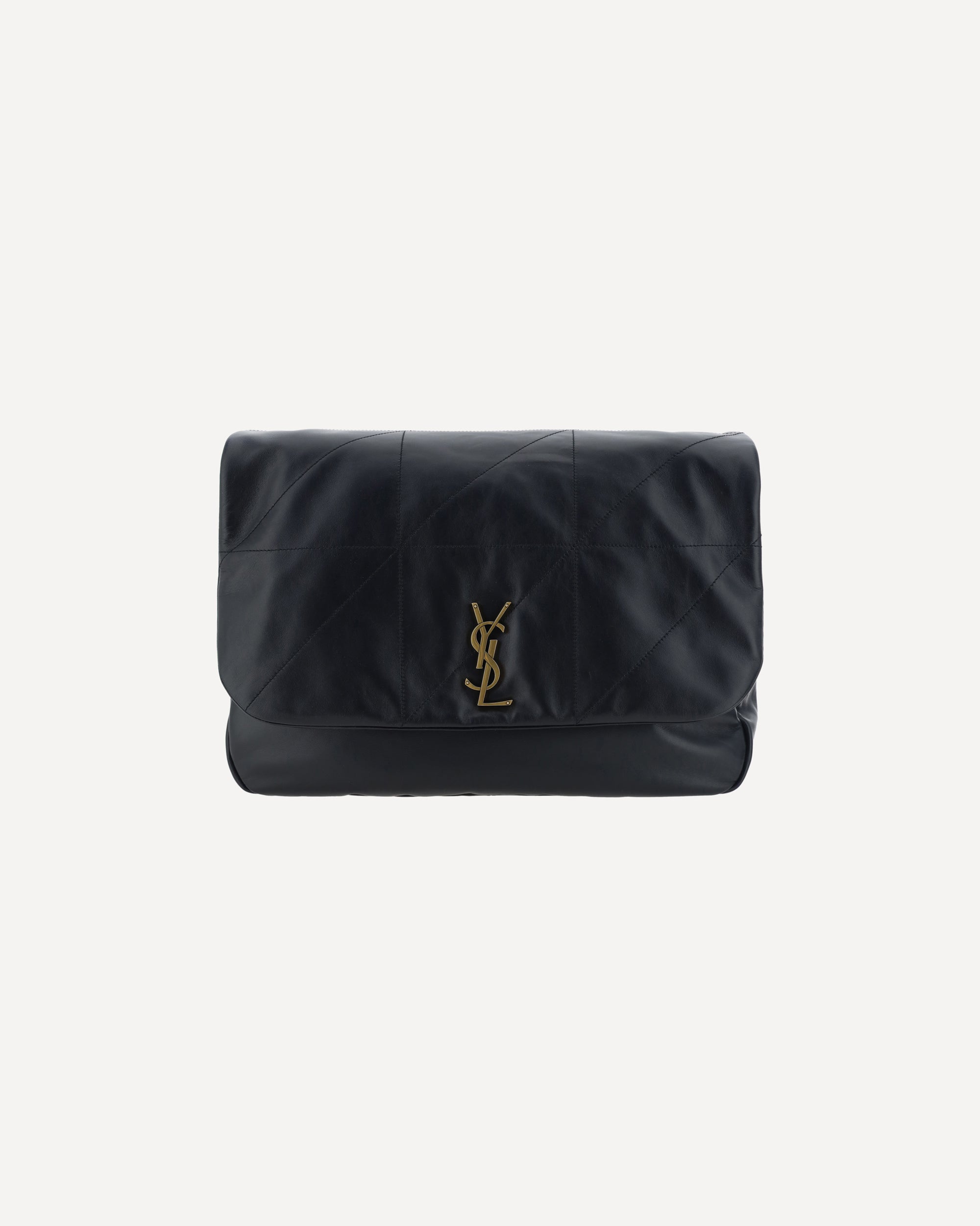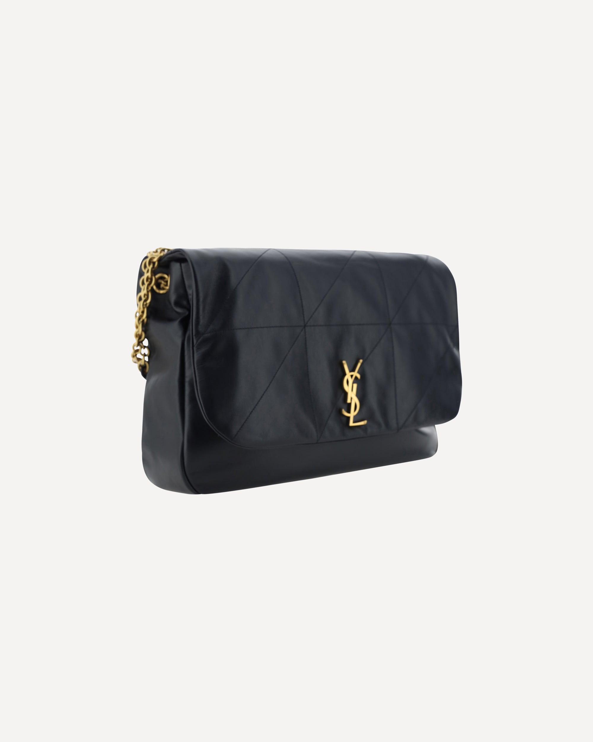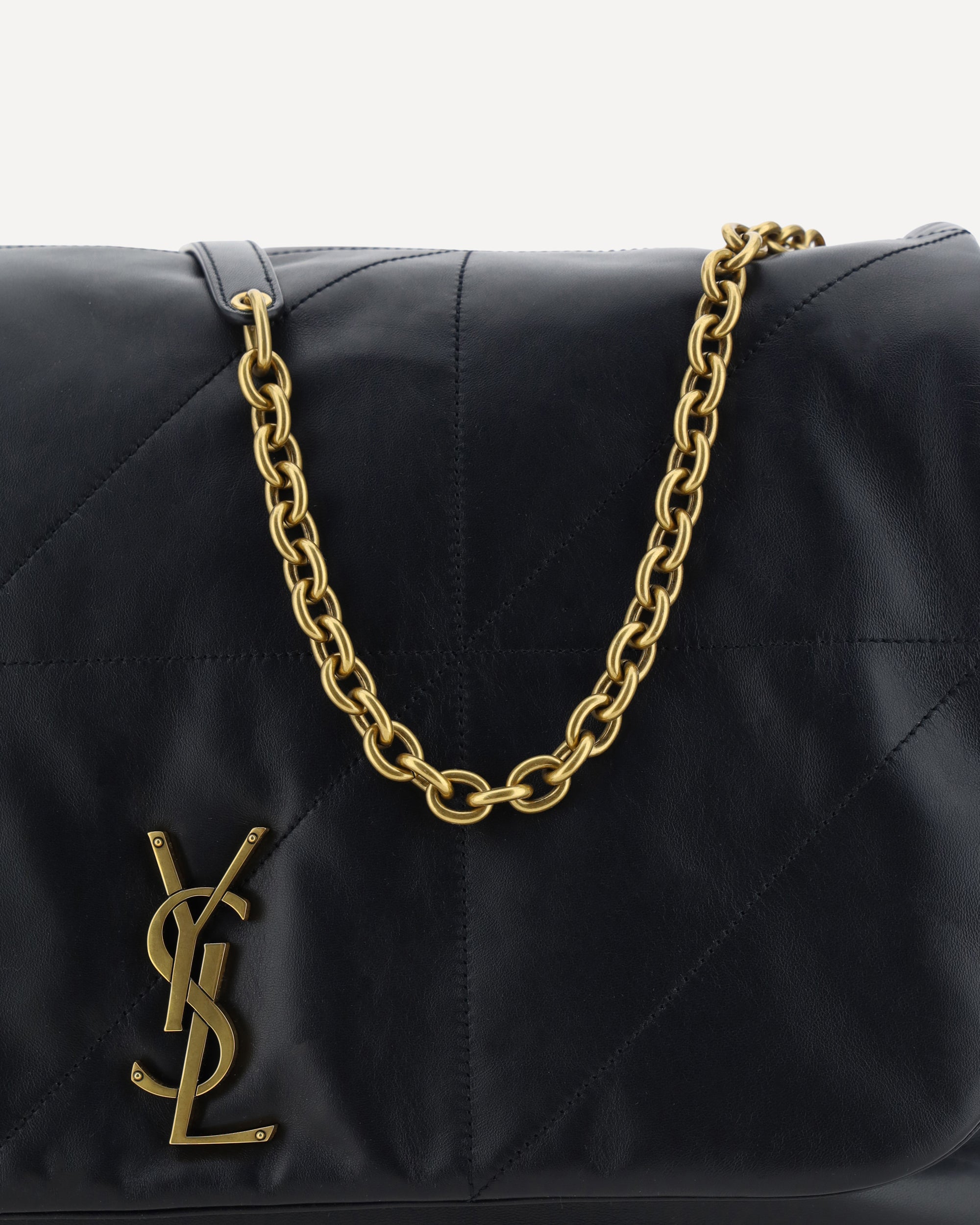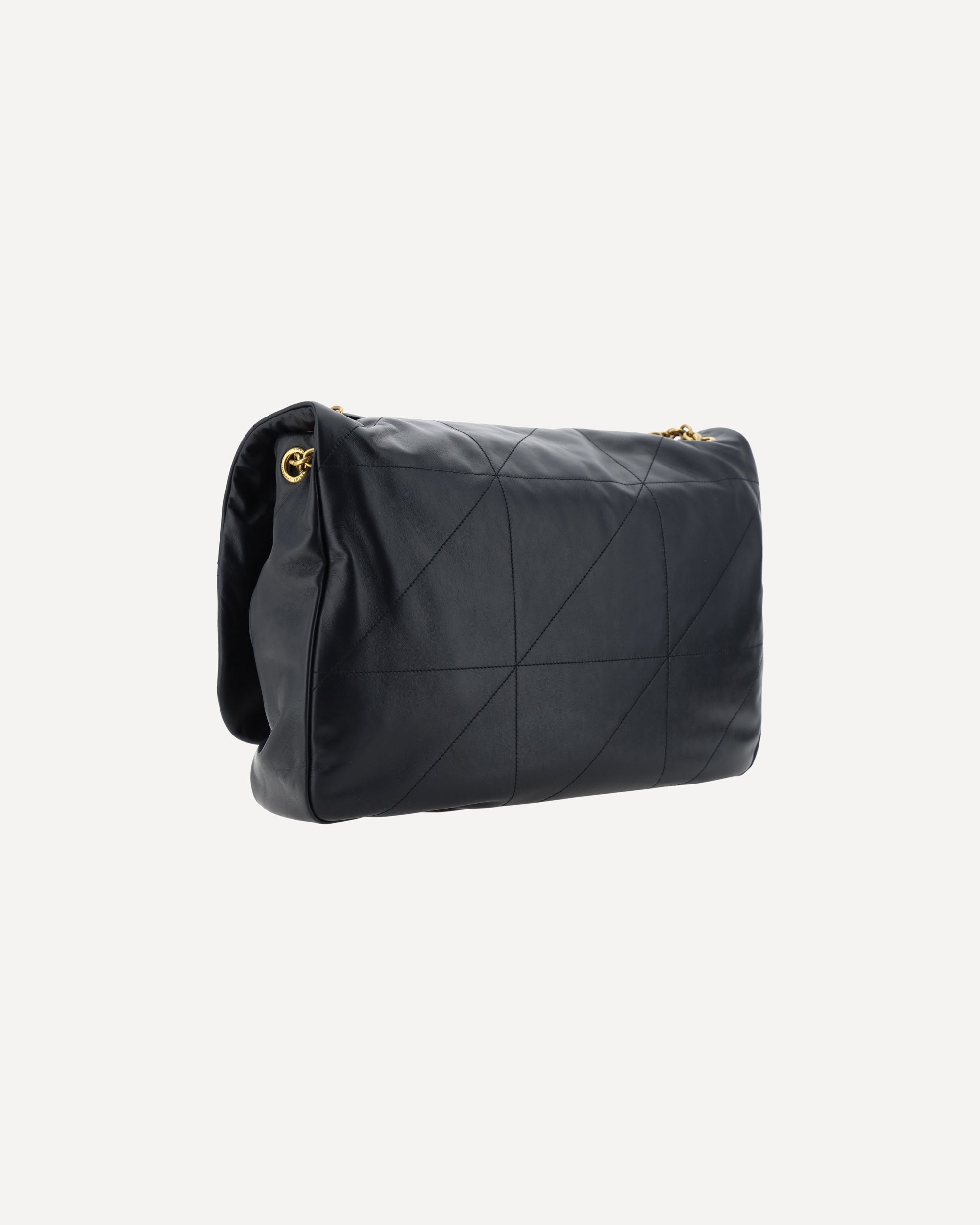 Borsa a Spalla Jamie in Pelle d'Agnello di Saint Laurent, design imbottito all-over, patta frontale per chiusura mediante bottone a pressione, tracolla a catena scorrevole con dettaglio in nappa, placca tridimensionale con iconico logo YSL placcato oro e applicato sul fronte, design imbottito all-over, impunture tono su tono all-over, scomparto unico interno.