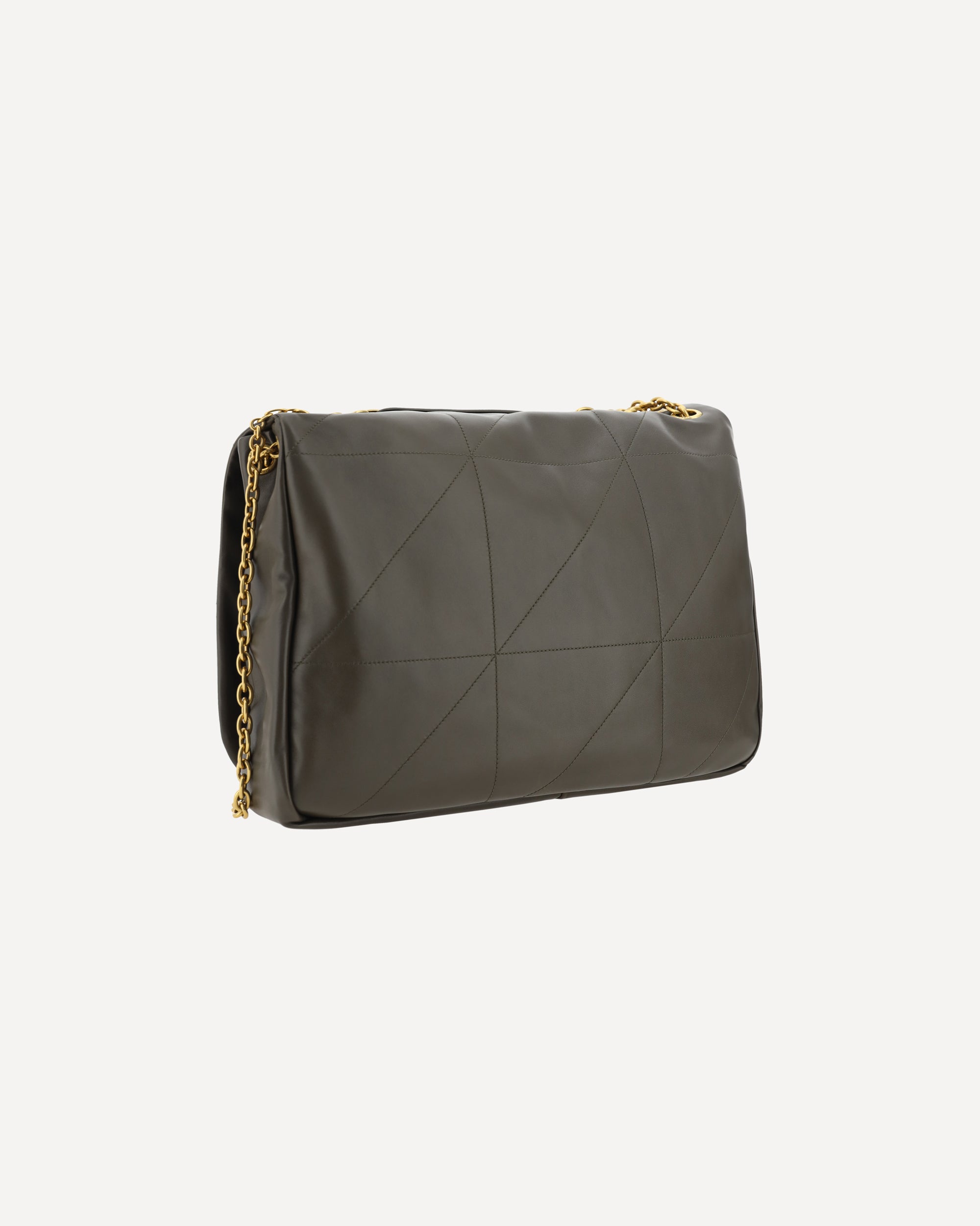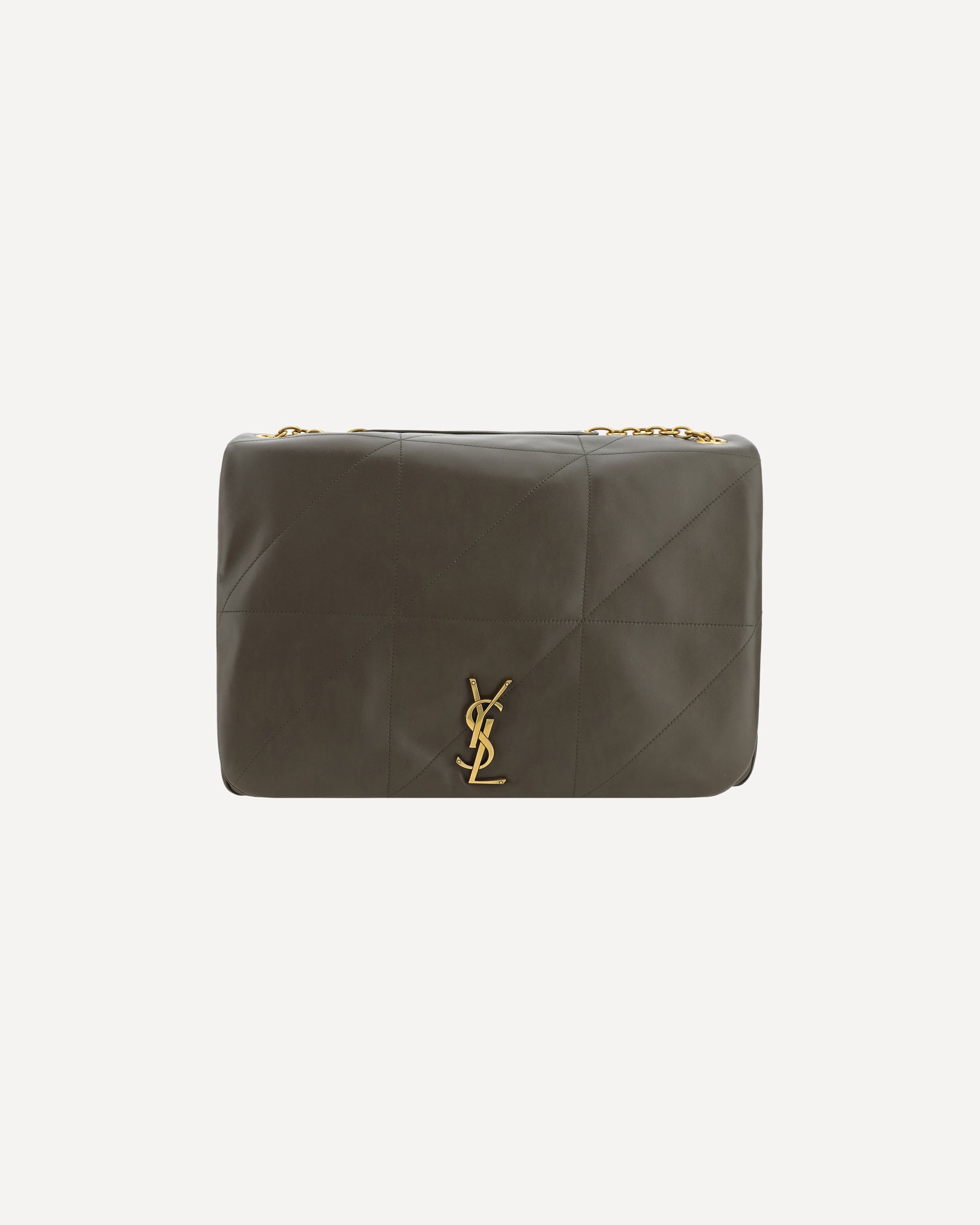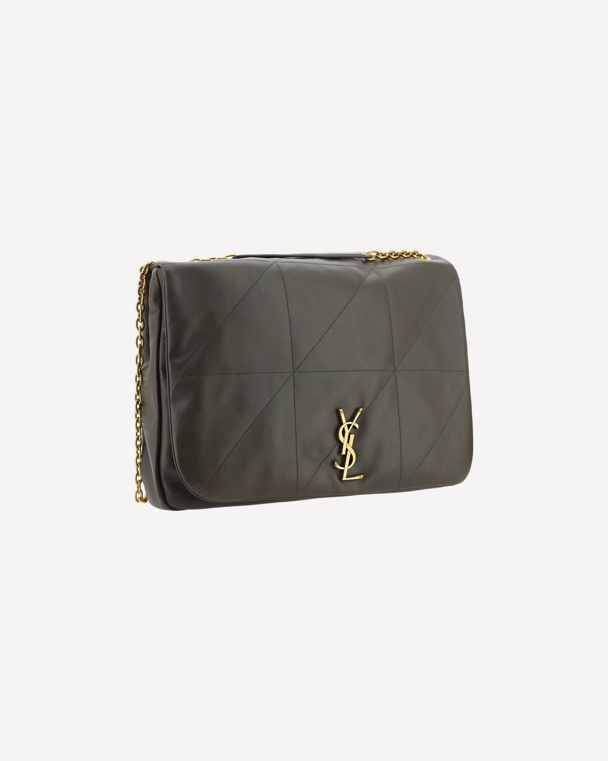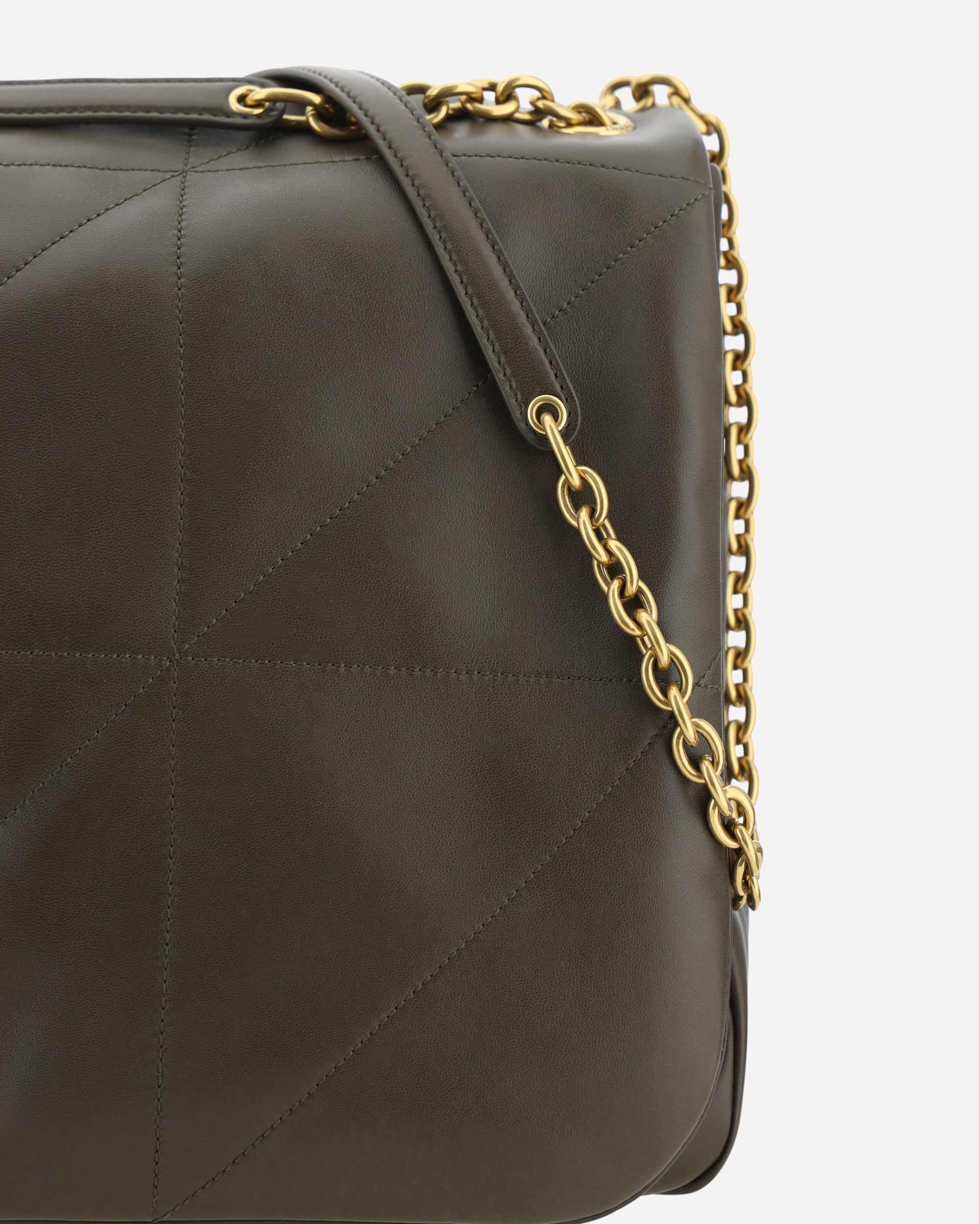 Borsa a Spalla Jamie in Pelle d'Agnello di Saint Laurent, design imbottito all-over, patta frontale per chiusura mediante bottone a pressione, tracolla a catena scorrevole con dettaglio in nappa, placca tridimensionale con iconico logo YSL placcato oro e applicato sul fronte, design imbottito all-over, impunture tono su tono all-over, scomparto unico interno.