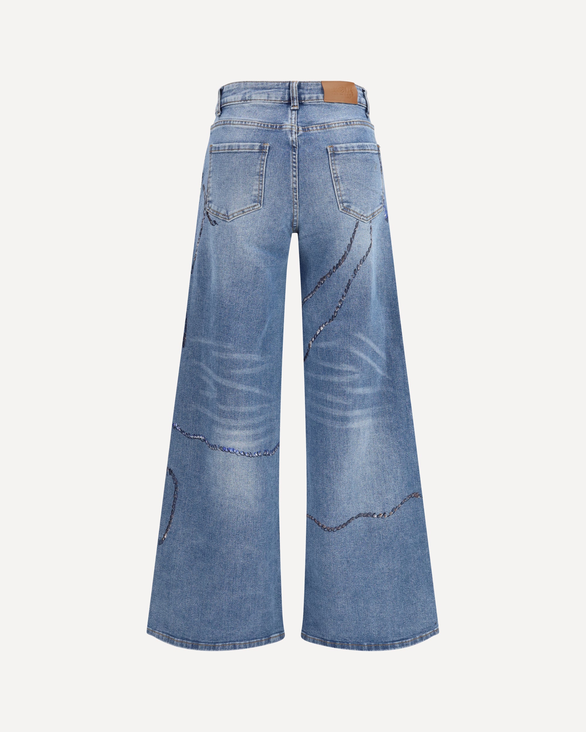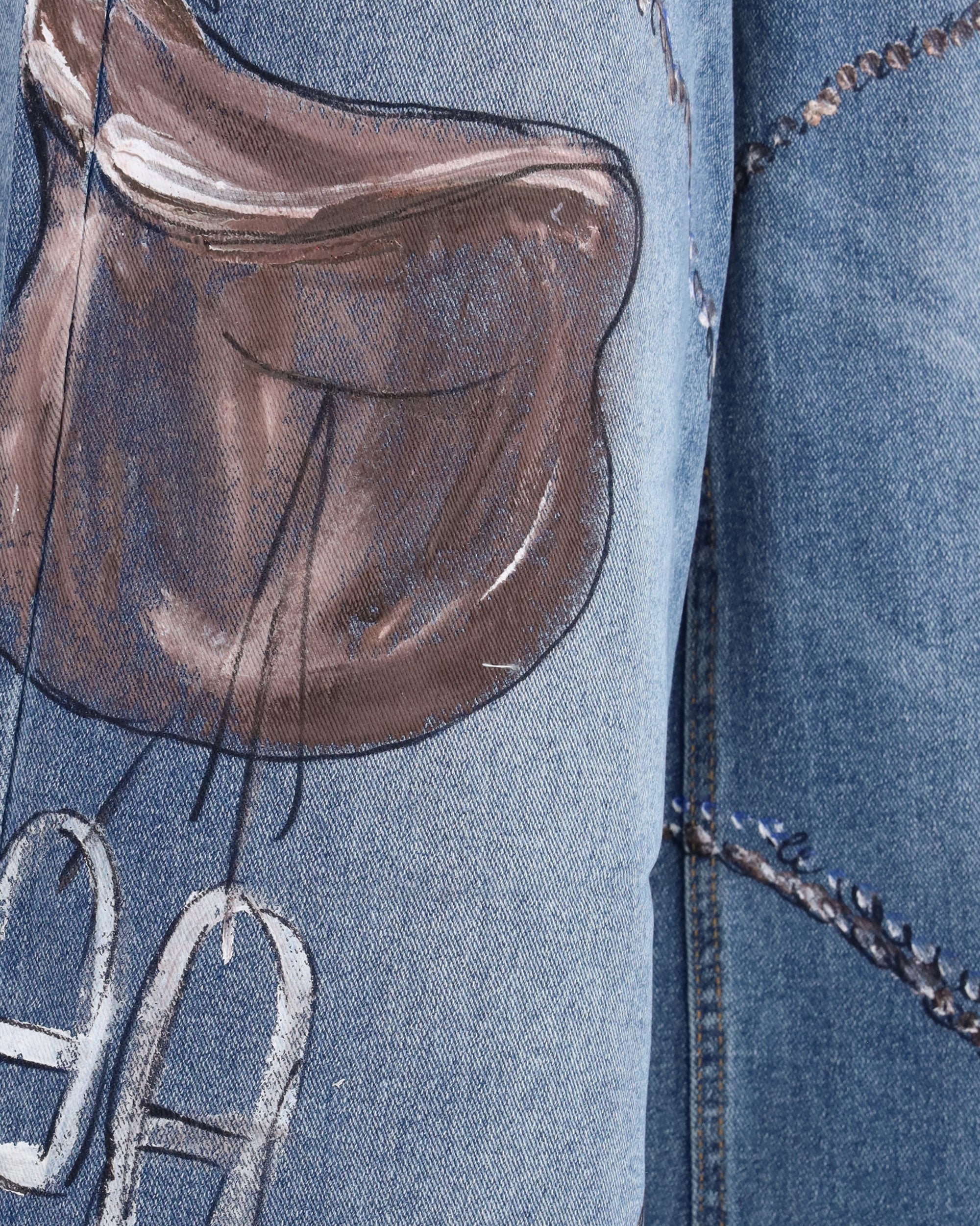 Il Jeans Palazzo Long dipinti regular fit con quattro tasche di Ella è caratterizzato da linea ampia e costruzione strutturata che valorizza la silhouette con equilibrio contemporaneo. I passanti in vita e la chiusura con bottone singolo e zip definiscono il punto vita con funzionalità essenziale, mentre il design dipinto introduce un segno distintivo dal carattere creativo. Un modello pensato per un guardaroba dinamico che unisce attitudine moderna e identità espressiva del brand.