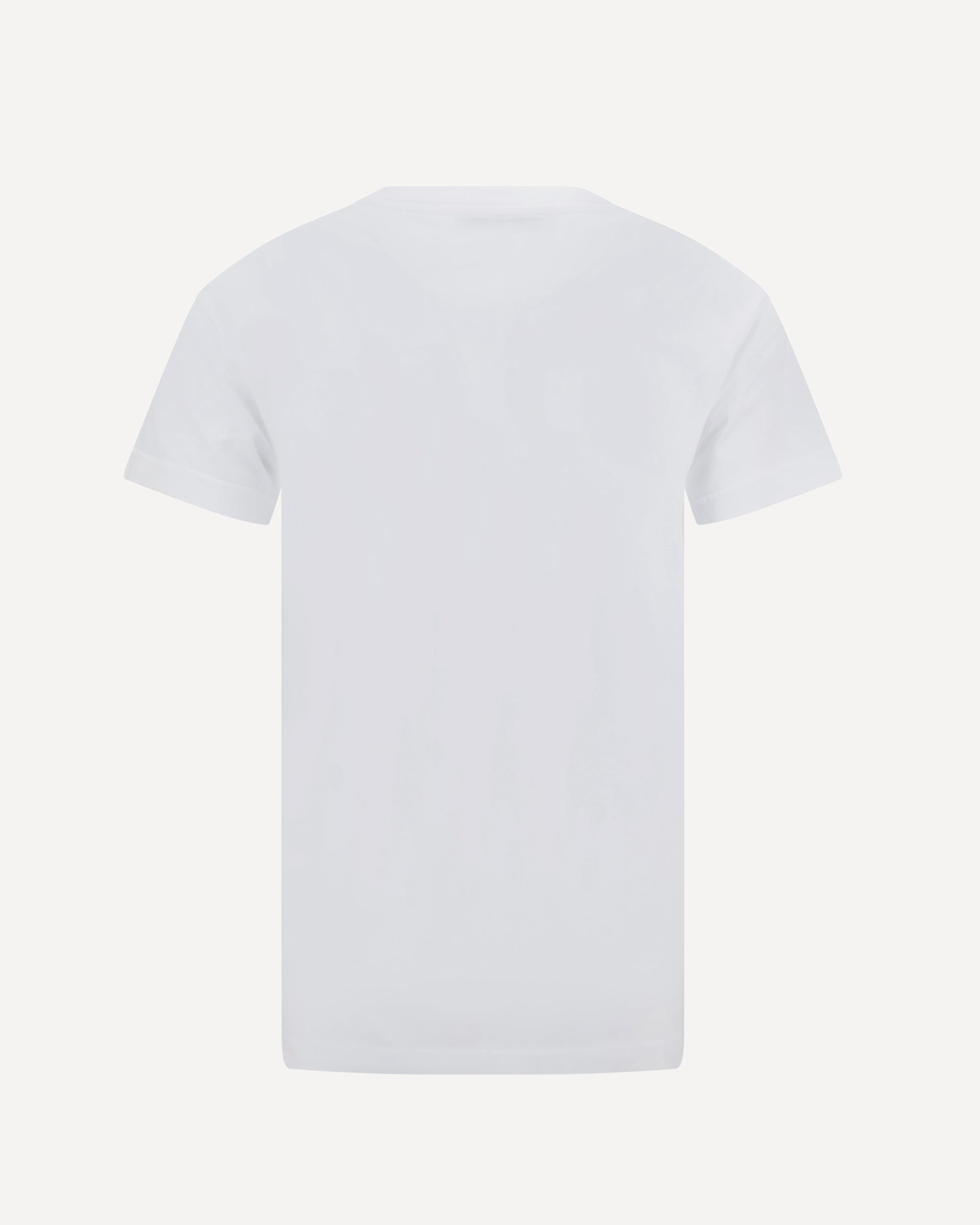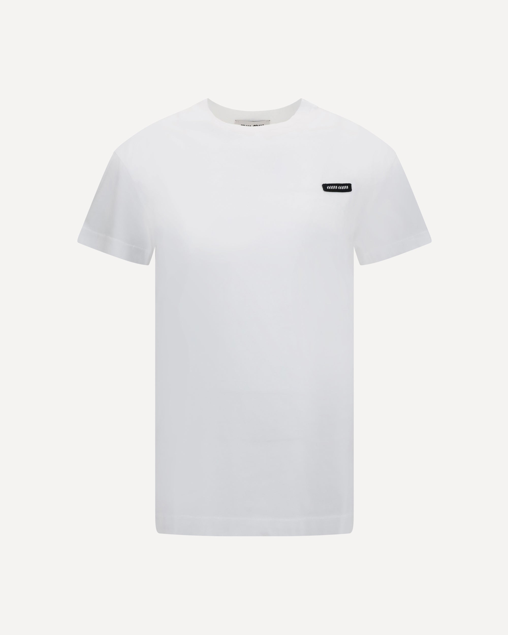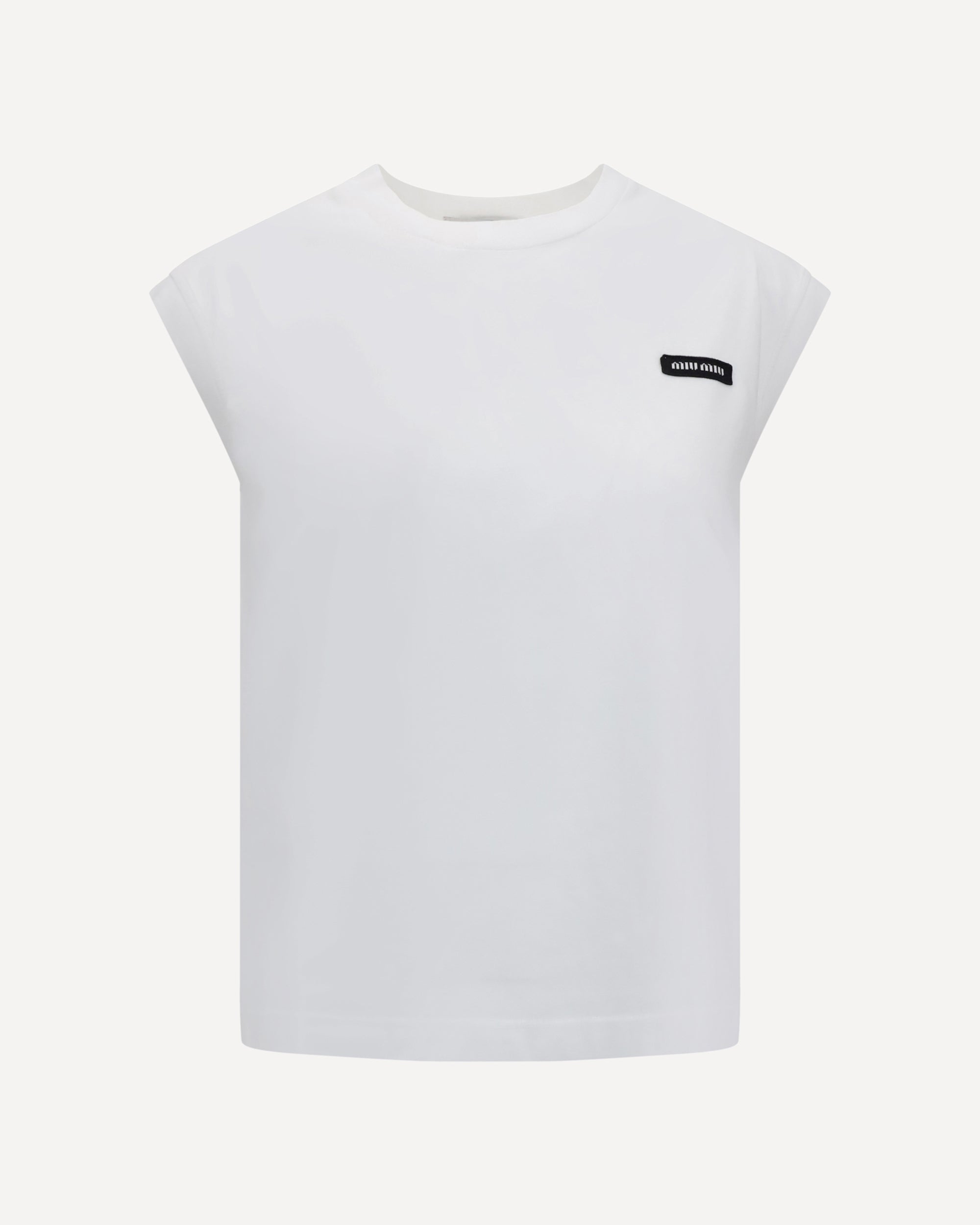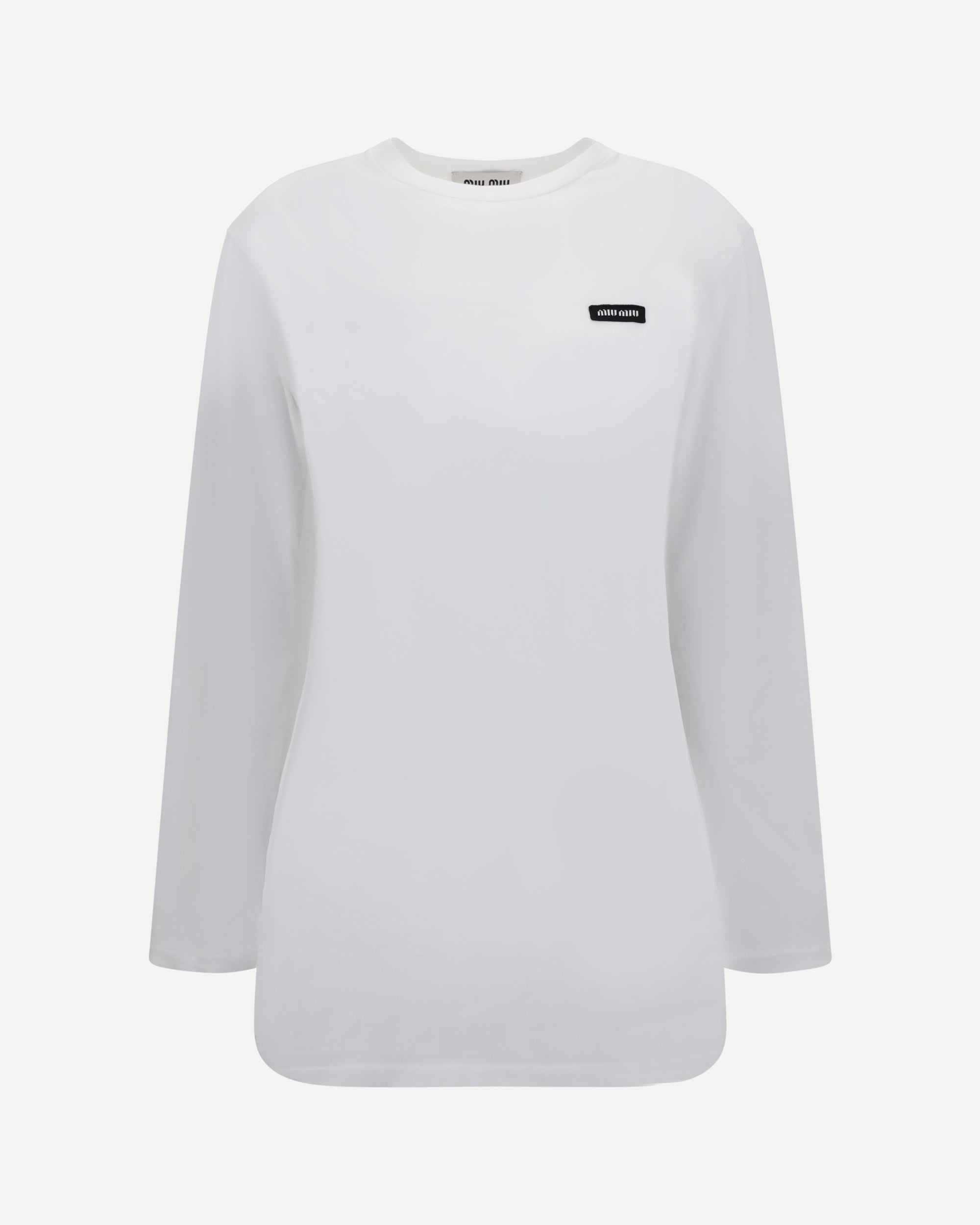 Il set di T-shirt in cotone di Miu Miu comprende tre modelli versatili e stilosi. Ogni T-shirt è arricchita da un’applicazione logata a contrasto sul petto. Il set include una versione a maniche lunghe, una a maniche corte e una smanicata, tutte con girocollo e polsini a costine, per un fit comodo e un tocco di eleganza casual.