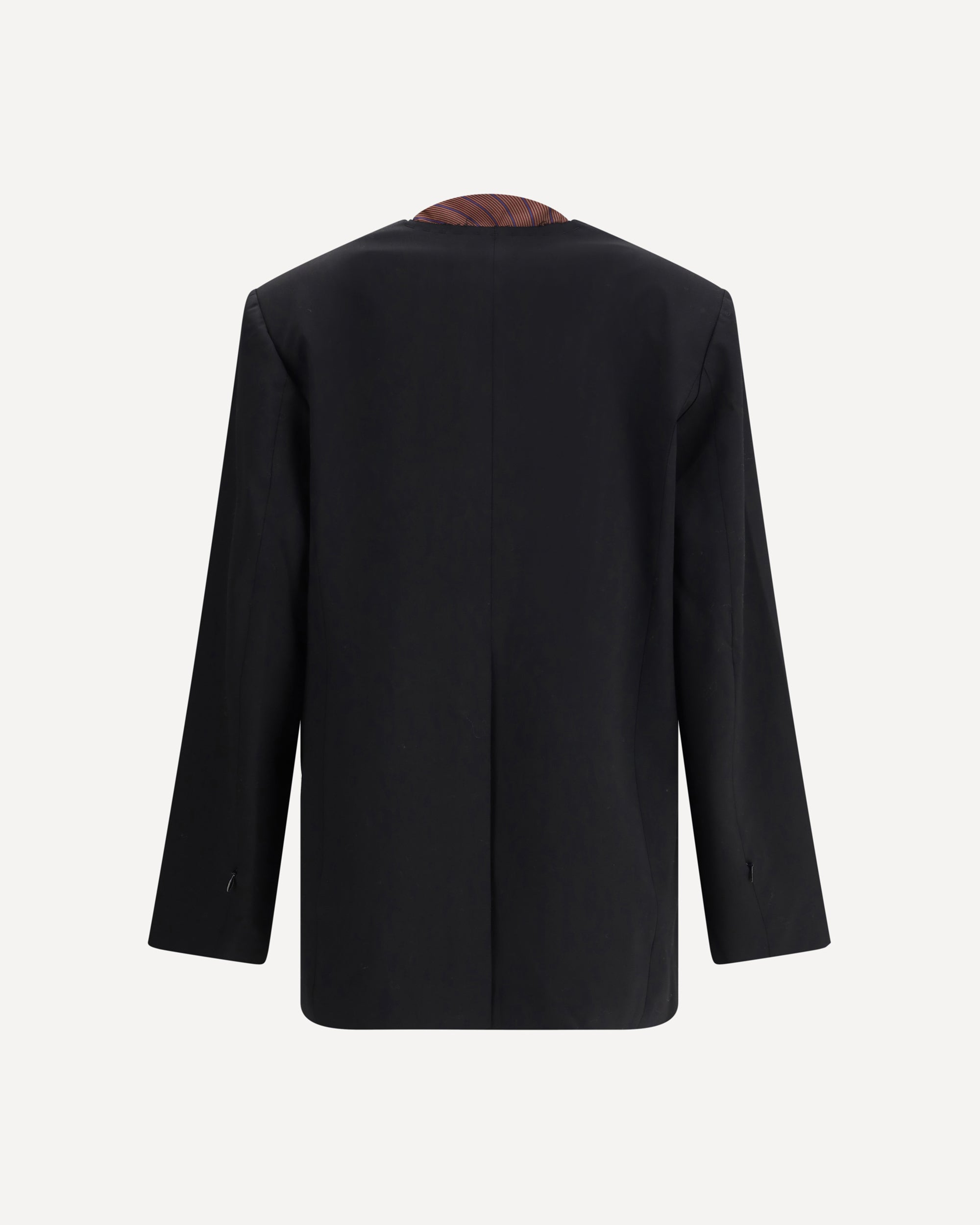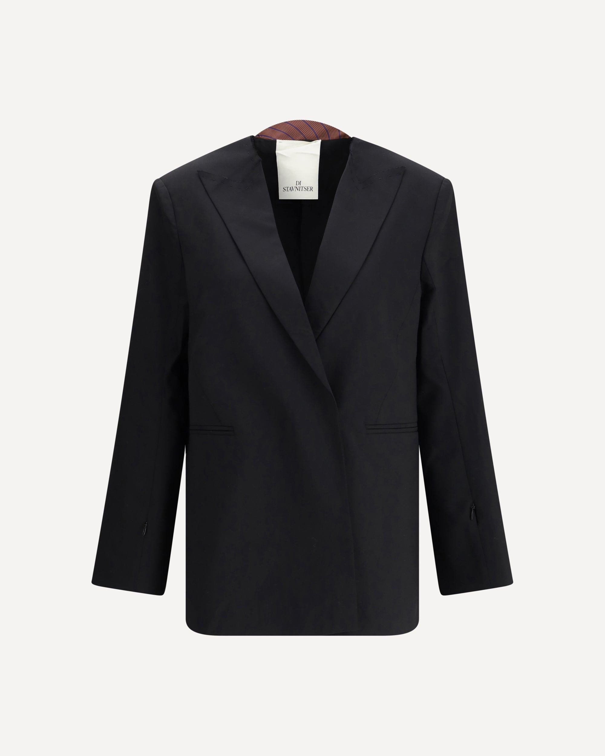 Il Blazer Jolie di Di Stavnister è un capo sartoriale dallo stile essenziale e raffinato. Caratterizzato da revers a lancia tagliati a vivo, presenta una chiusura con un bottone nascosto e due tasche a filetto sul davanti, per un’eleganza pulita e contemporanea.