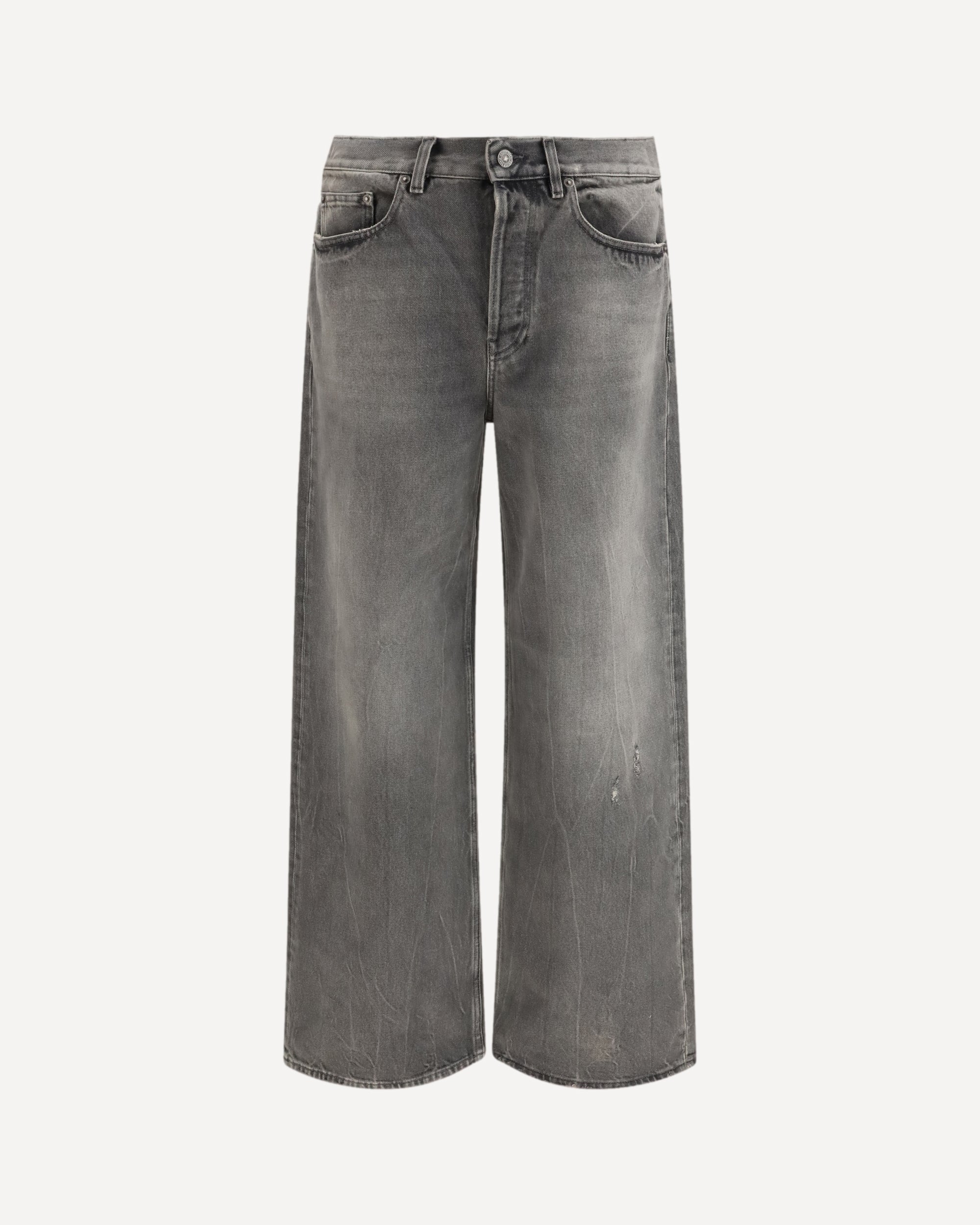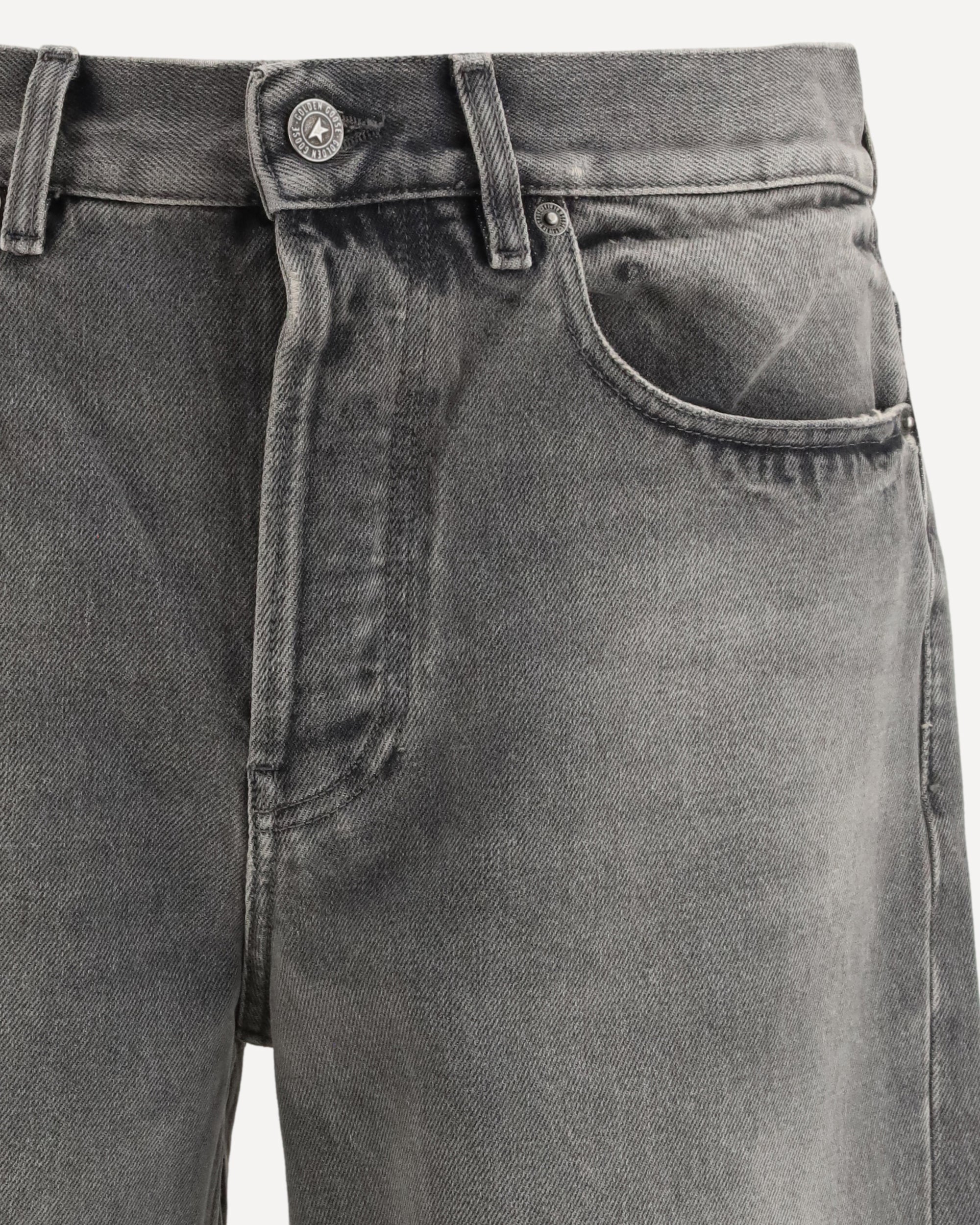 I Jeans Parker in denim di Golden Goose Deluxe Brand reinterpretano un classico del guardaroba con un’attitudine rilassata e contemporanea. La silhouette wide fit definisce un volume deciso ma naturale, mentre la costruzione a cinque tasche mantiene un’estetica essenziale. La chiusura frontale con bottoni in metallo completa il design con un dettaglio autentico, espressione dello stile distintivo di Golden Goose Deluxe Brand.