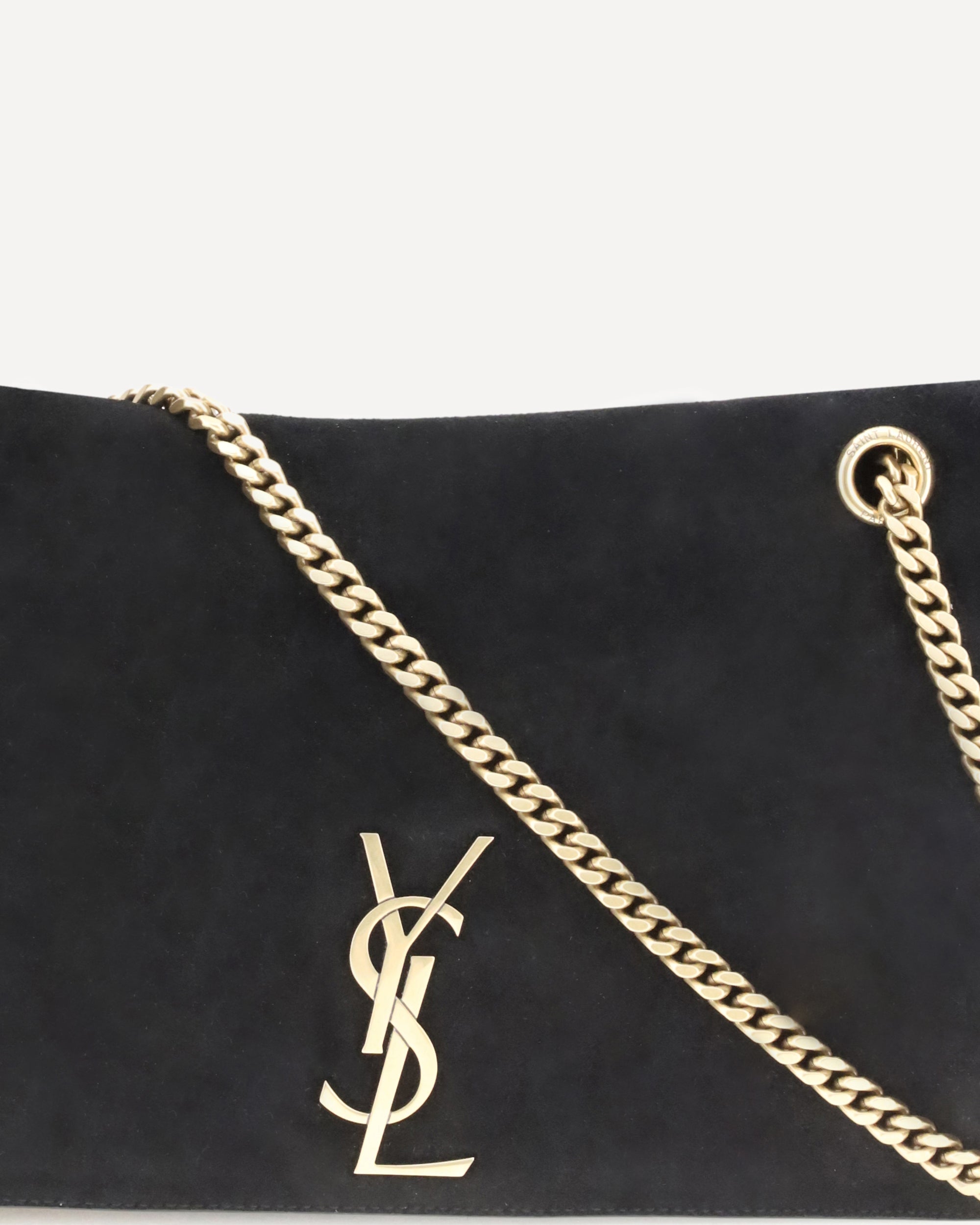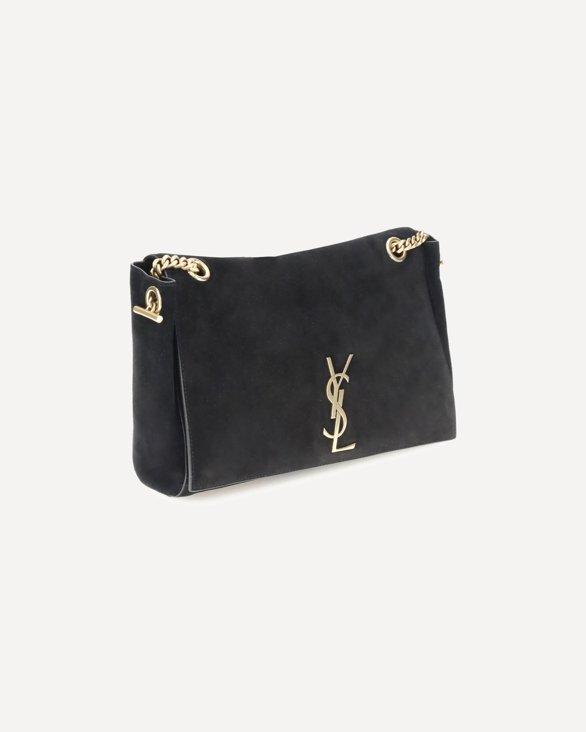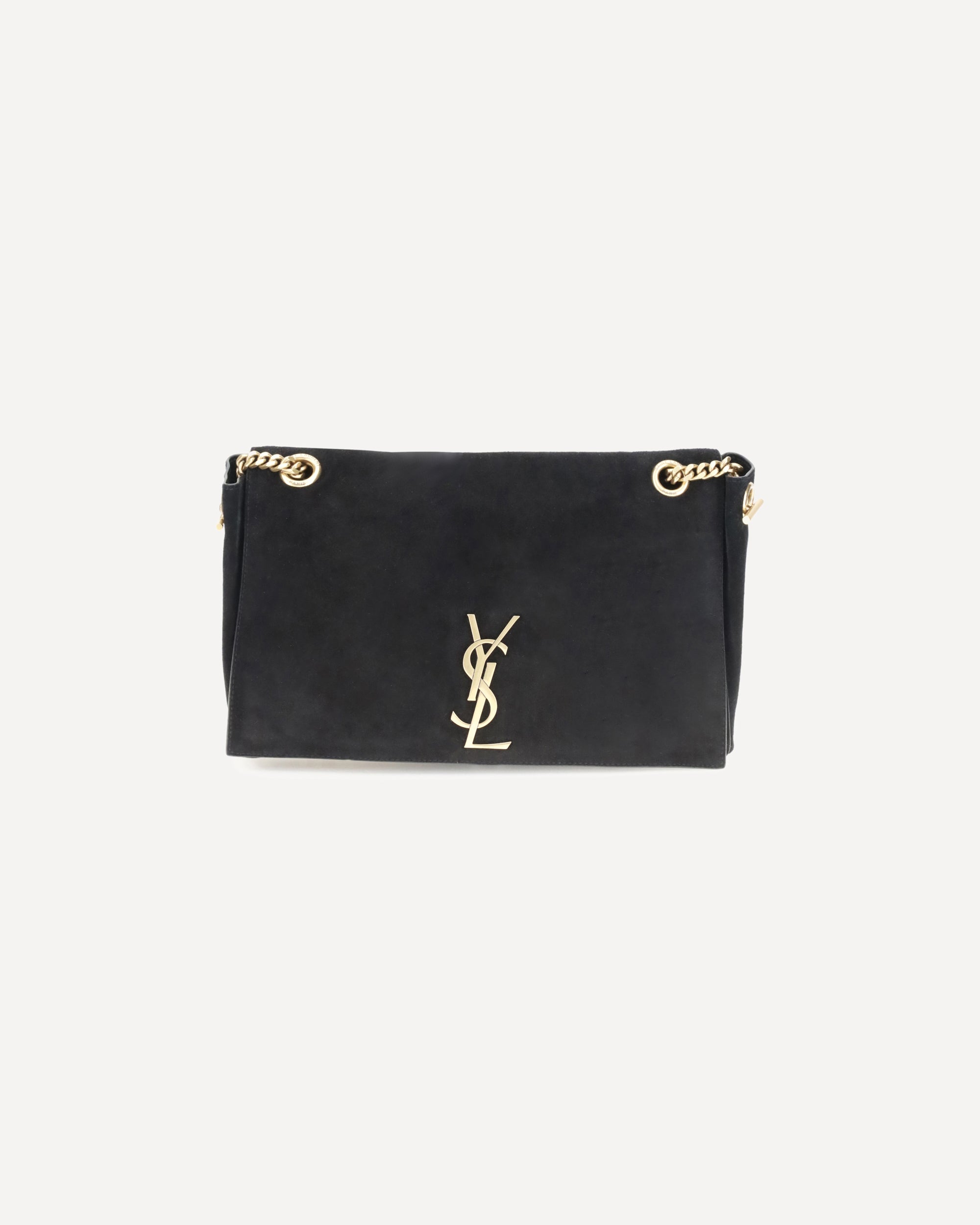 La Borsa a Tracolla Kate in pelle scamosciata di Saint Laurent unisce eleganza e modernità. Caratterizzata da una chiusura magnetica frontale, presenta sul fronte una placca in rilievo con l’iconico monogramma del brand. La tracolla scorrevole con catena aggiunge un tocco sofisticato, mentre l’interno è dotato di una pratica tasca a filetto. Un accessorio raffinato e versatile, perfetto per ogni occasione.