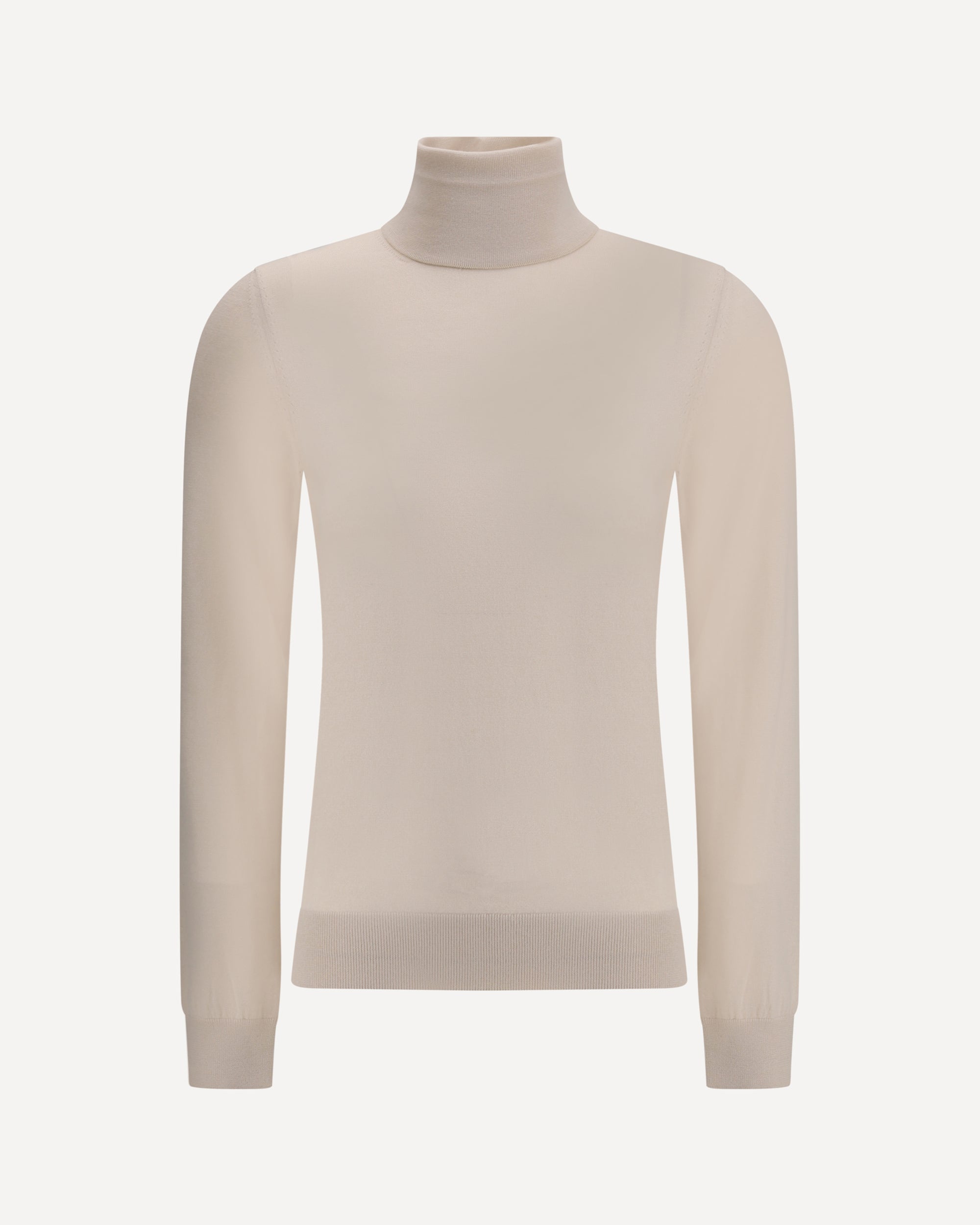 Il Maglione dolcevita di Loro Piana è realizzato in pregiato cashmere, garanzia di morbidezza e calore. Il design essenziale è valorizzato da polsini e orlo a costine, che donano struttura e una vestibilità impeccabile. Un classico intramontabile, perfetto per un’eleganza discreta e raffinata.