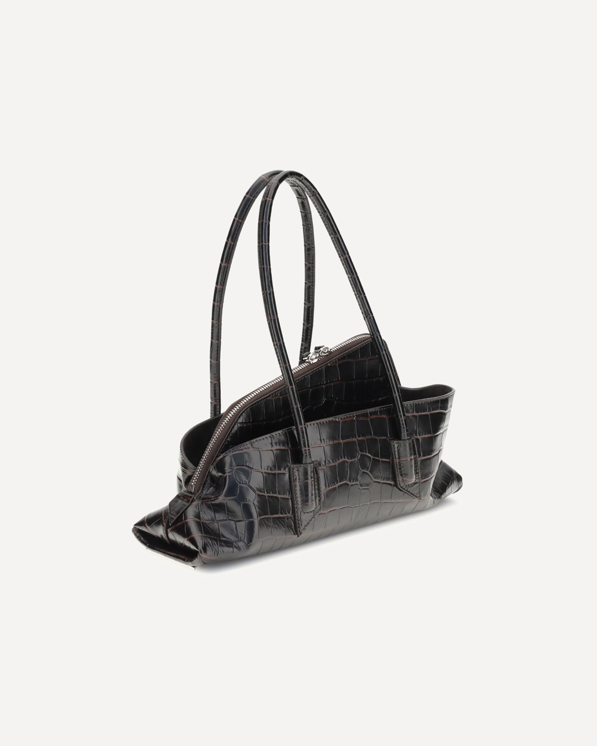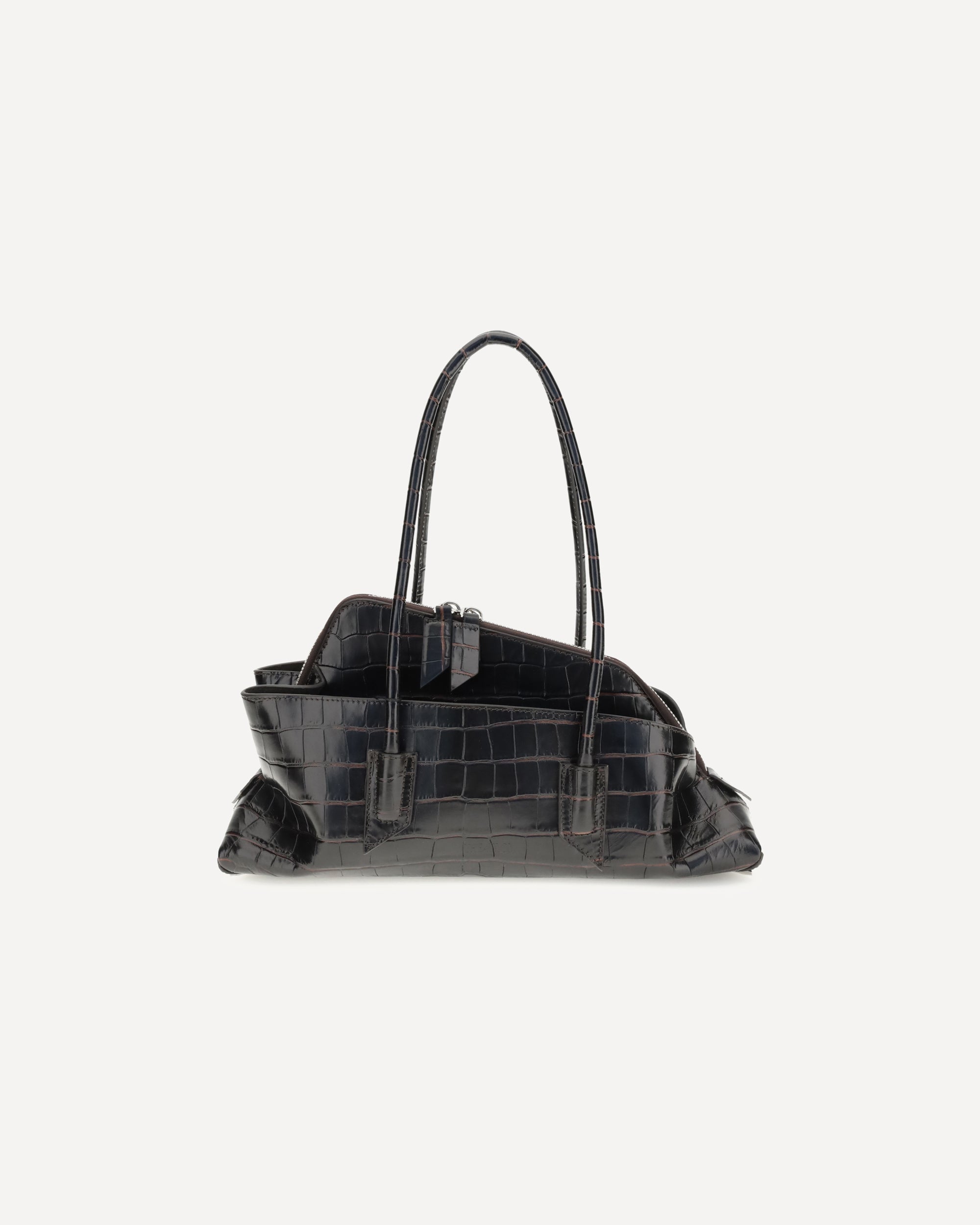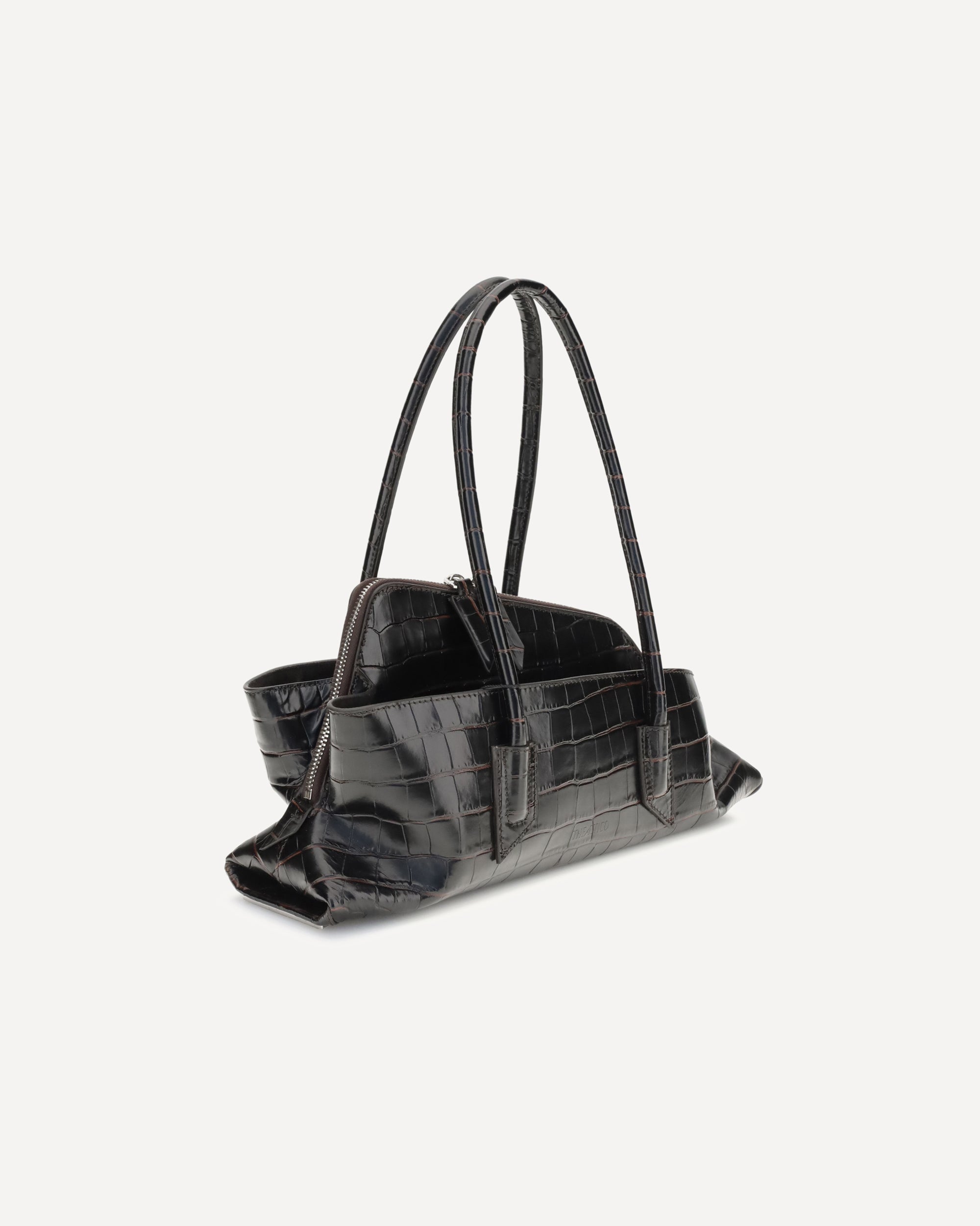 La Borsa a Spalla La Passeggiata piccola di The Attico è un accessorio elegante e distintivo, realizzato in pelle con stampa cocco. Dotata di manici tubolari e di una pratica tasca interna con zip, rappresenta un pezzo iconico e imprescindibile per chi desidera uno stile sempre alla moda e raffinato.