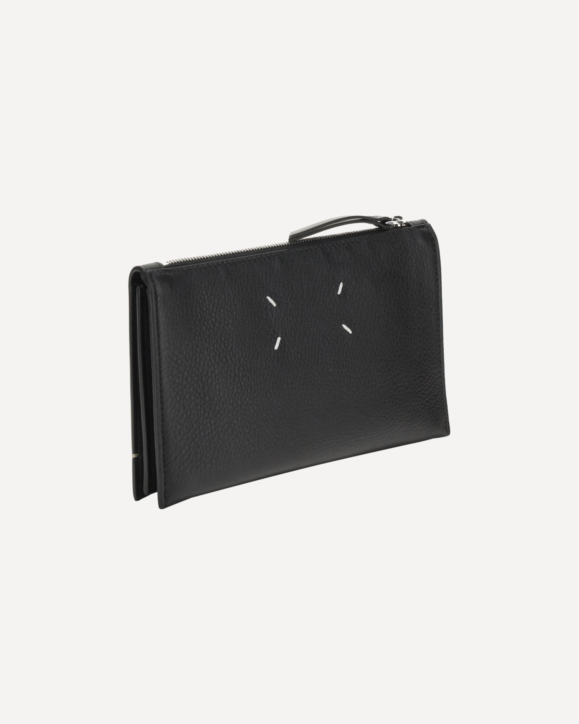 Realizzata in pregiata pelle martellata, la Pochette media in pelle di Maison Margiela unisce funzionalità e stile in un design essenziale ma distintivo. Caratterizzata da una chiusura superiore con zip, garantisce praticità e sicurezza per custodire gli oggetti personali con eleganza. L’iconico monogramma a pressione a contrasto, posizionato sul fronte, firma il modello con l’inconfondibile tocco della Maison. Un accessorio versatile e sofisticato, perfetto sia da portare a mano che da inserire in una borsa più capiente, per un’eleganza contemporanea e minimale.