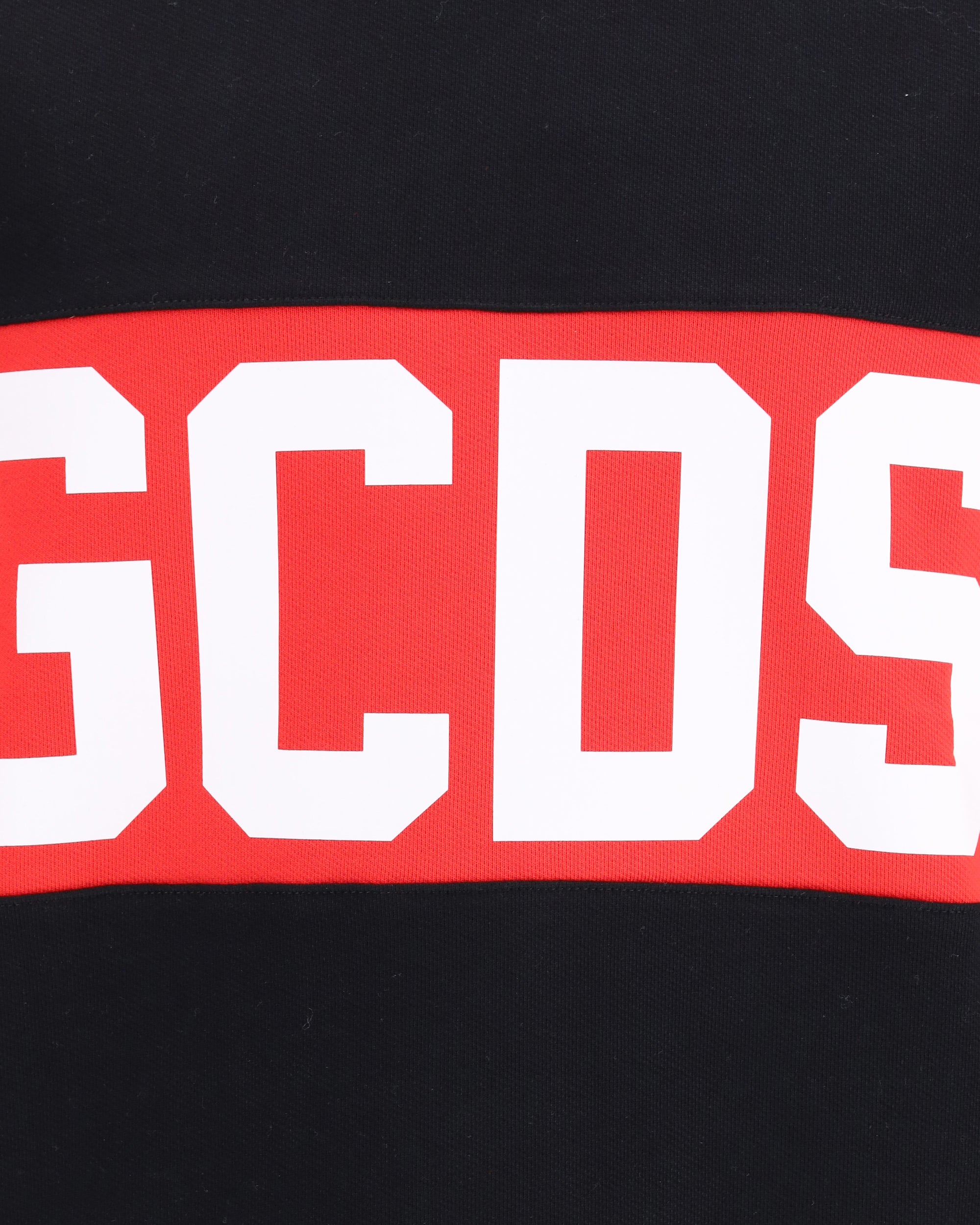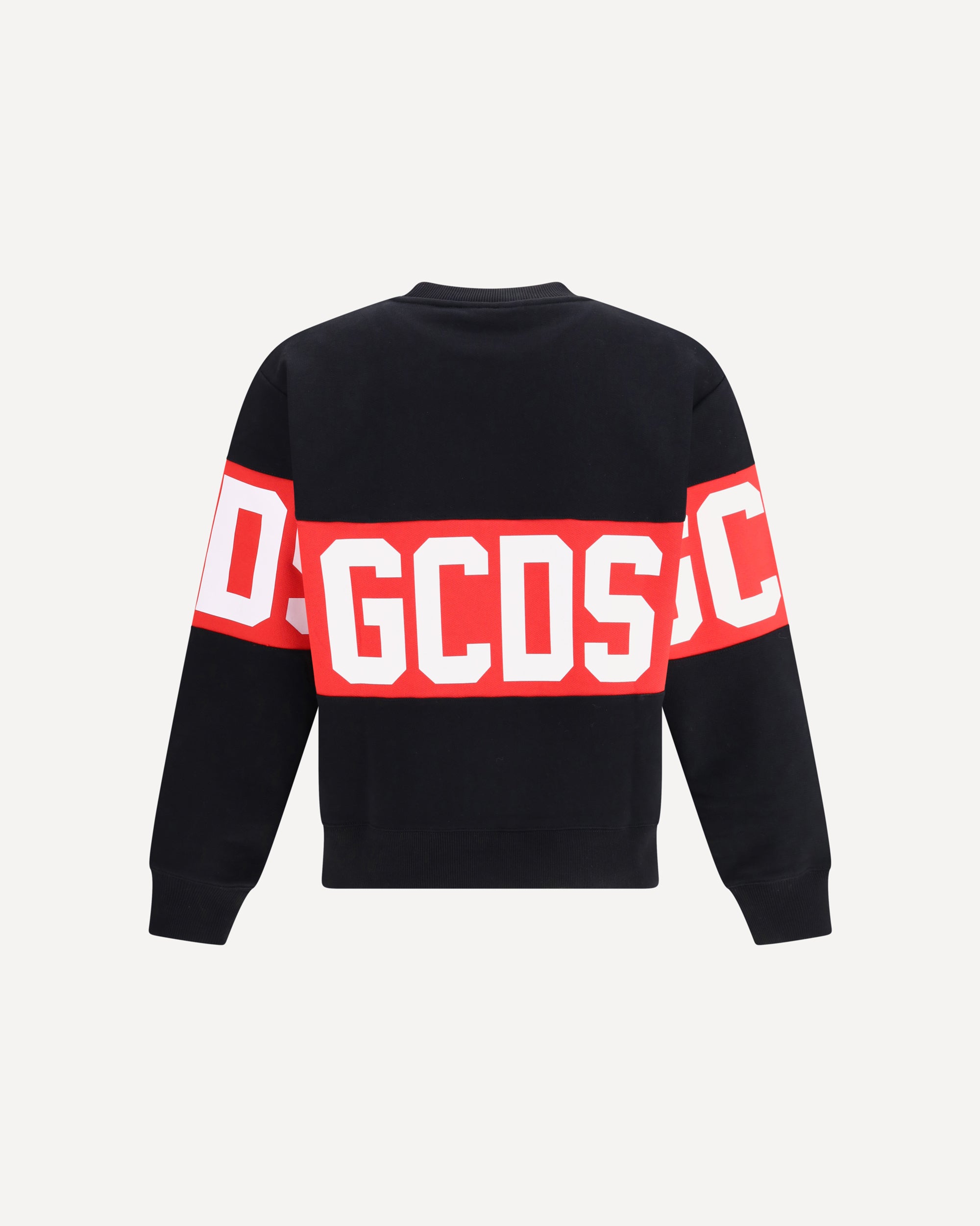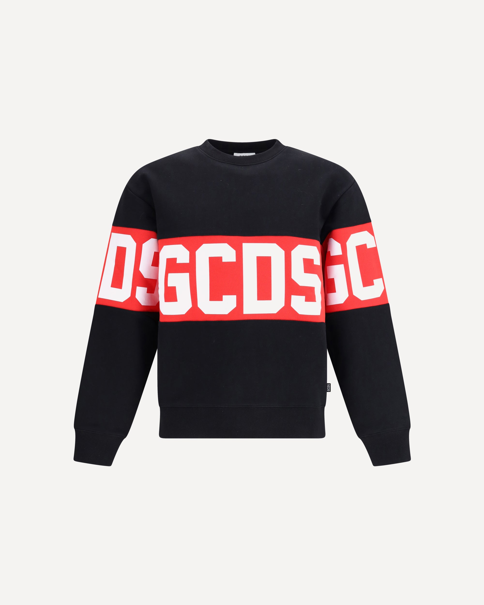 La Felpa in cotone di GCDS è un capo dallo stile urbano e contemporaneo. Presenta una banda a contrasto con l'iconico monogramma sia sul pannello frontale che sul retro, creando un effetto visivo distintivo. Il girocollo a costine, i polsini a costine e l'orlo a costine assicurano una vestibilità confortevole e aderente.