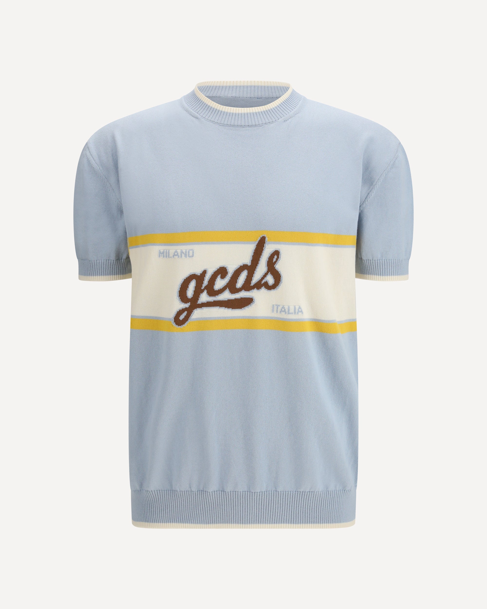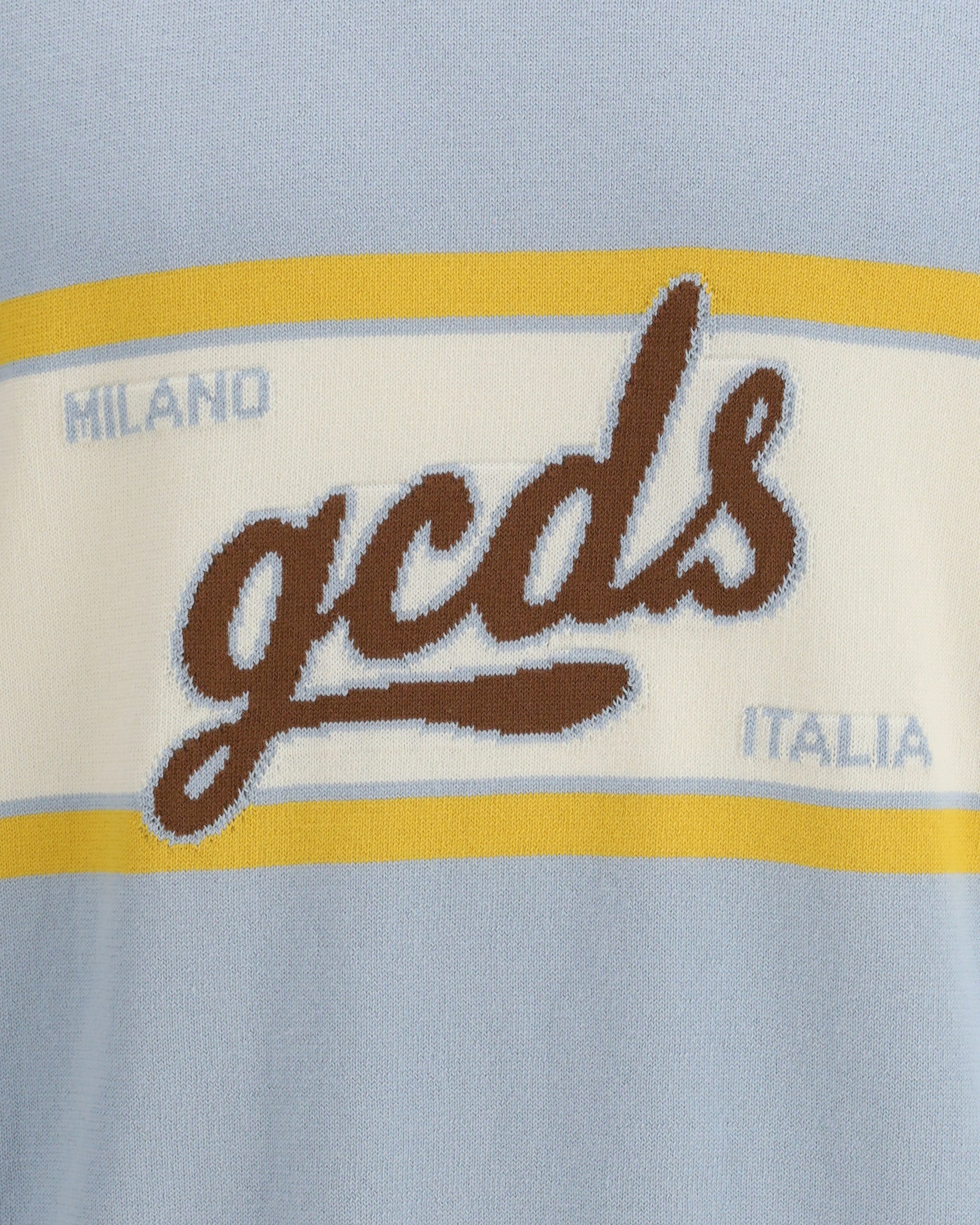 La Maglia girocollo con Logo Script a maniche corte in cotone con colletto e fondo maniche a coste di GCDS si distingue per il logo centrale ricamato su banda a colori a contrasto. La costruzione essenziale valorizza la silhouette con equilibrio, mentre il dettaglio grafico definisce il design con un segno distintivo e contemporaneo. Le finiture a coste strutturano il profilo con precisione, rendendo questa Crewneck di GCDS un capo dal carattere urbano e riconoscibile.