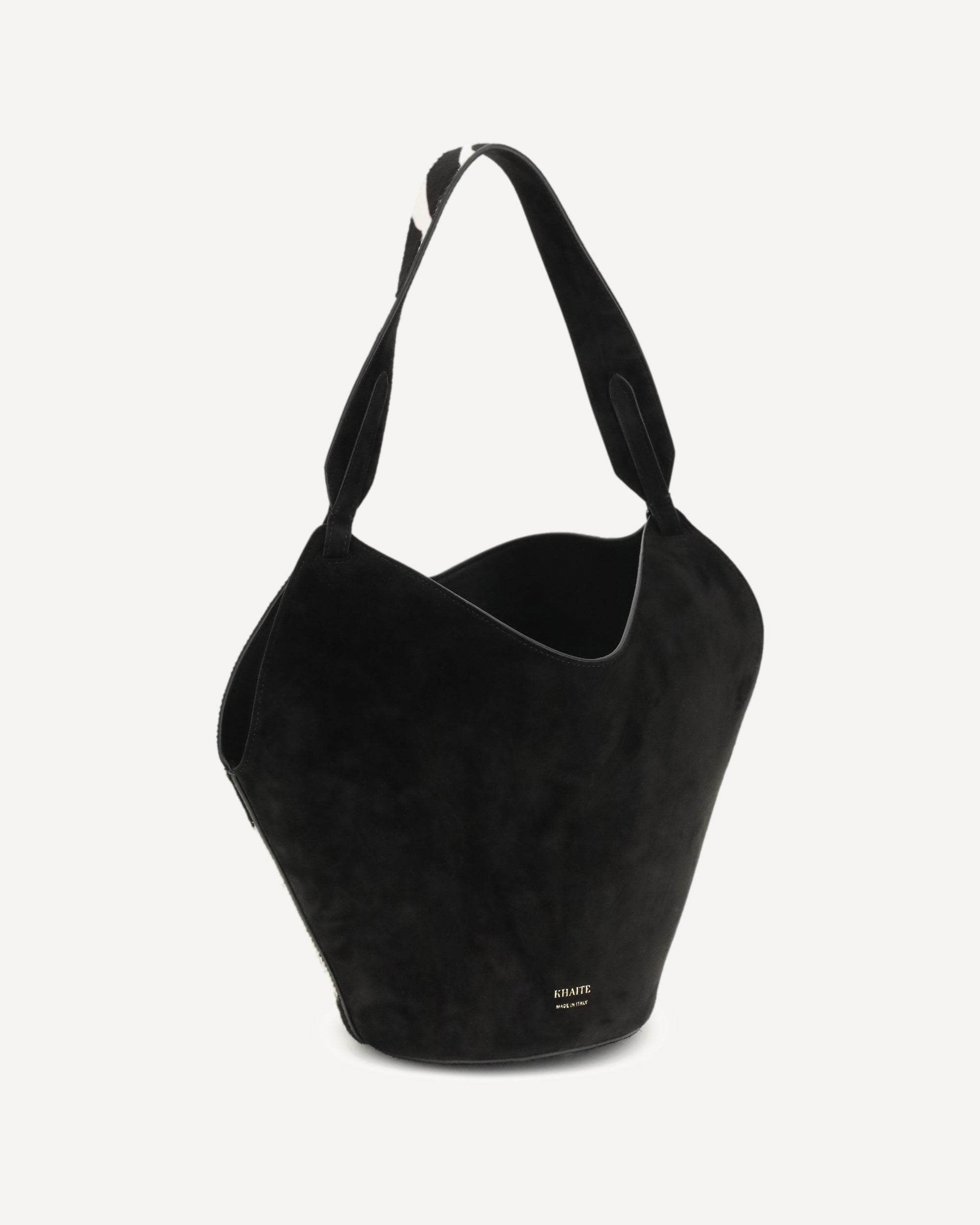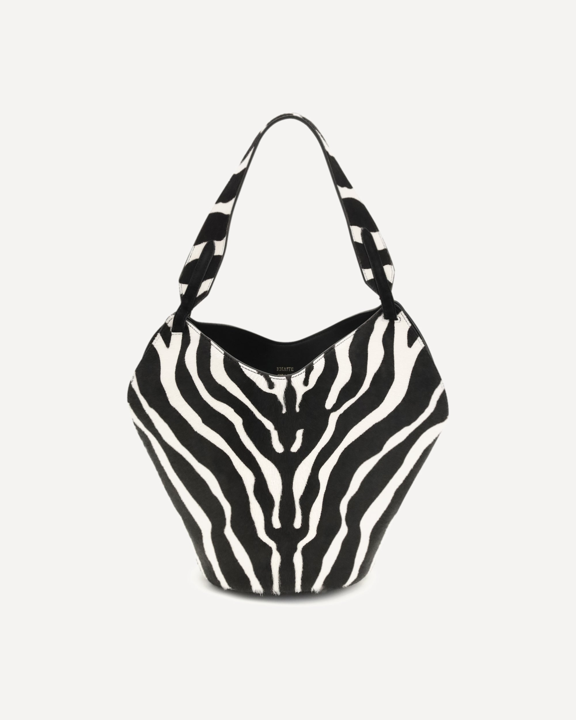 La borsa Lotus Mini di Khaite unisce essenzialità e ricercatezza in una composizione compatta e armoniosa. Il cavallino e il suede con stampa animalier esaltano la matericità del modello, mentre la chiusura in metallo introduce un dettaglio brillante che completa l’insieme con eleganza misurata.