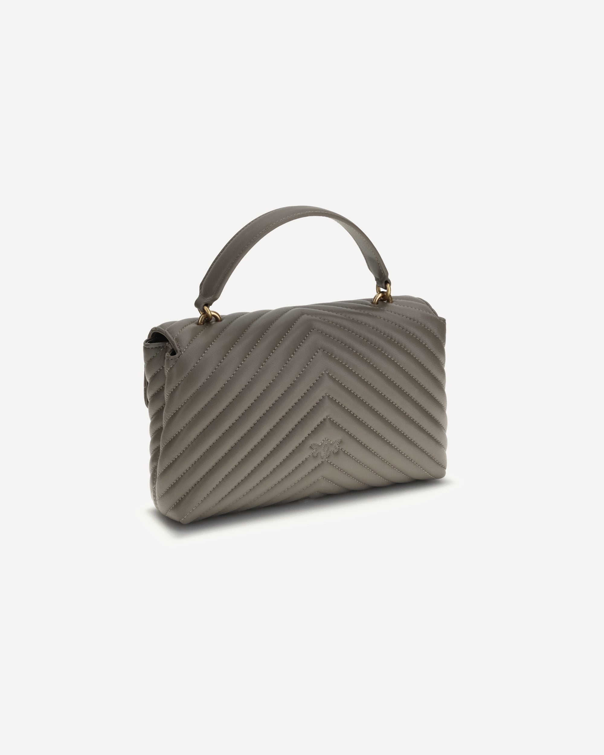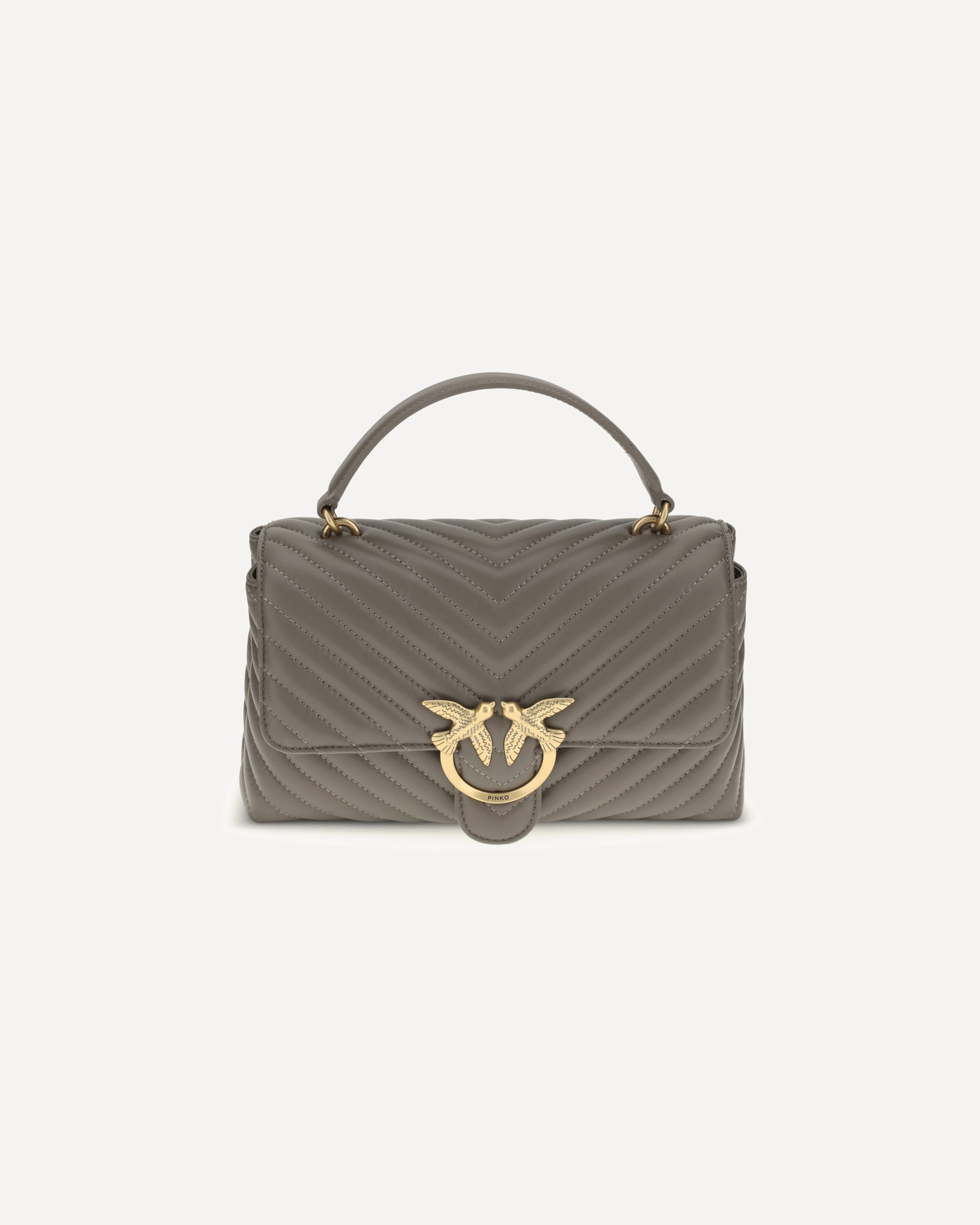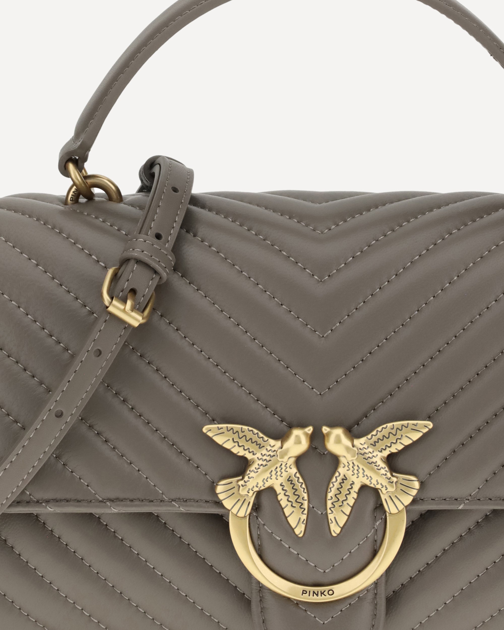 Borsa a Mano Love Lady in Pelle di Pinko, chiusura frontale con bottone magnetico, iconico logo Love Birds placcato oro e applicato in rilievo sul fronte, design trapuntato e imbottito, doppio scomparto interno, tracolla a catena scorrevole, manico rigido piatto nella parte superiore, tasca interna piatta con cerniera, iconico monogramma brand ricamato tono su tono sul retro.
