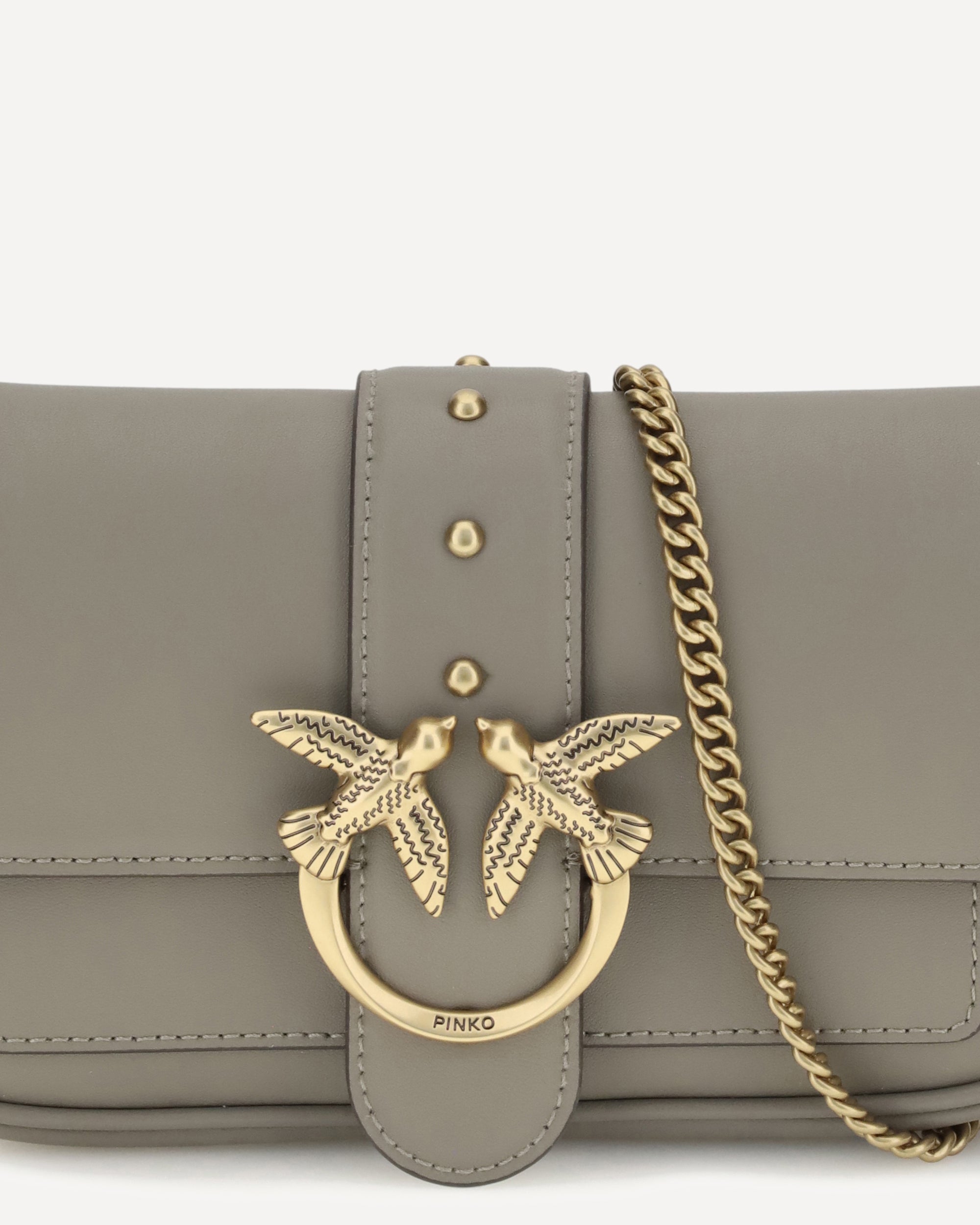 Borsa a Tracolla Love One in Pelle di Pinko, chiusura frontale a incastro, tracolla regolabile e scorrevole a catena, iconica fibbia Love Birds applicata in rilievo sul fronte, doppio scomparto interno, tasca interna con cerniera, tasca piatta portacarte, iconico monogramma brand ricamato tono su tono sul retro.