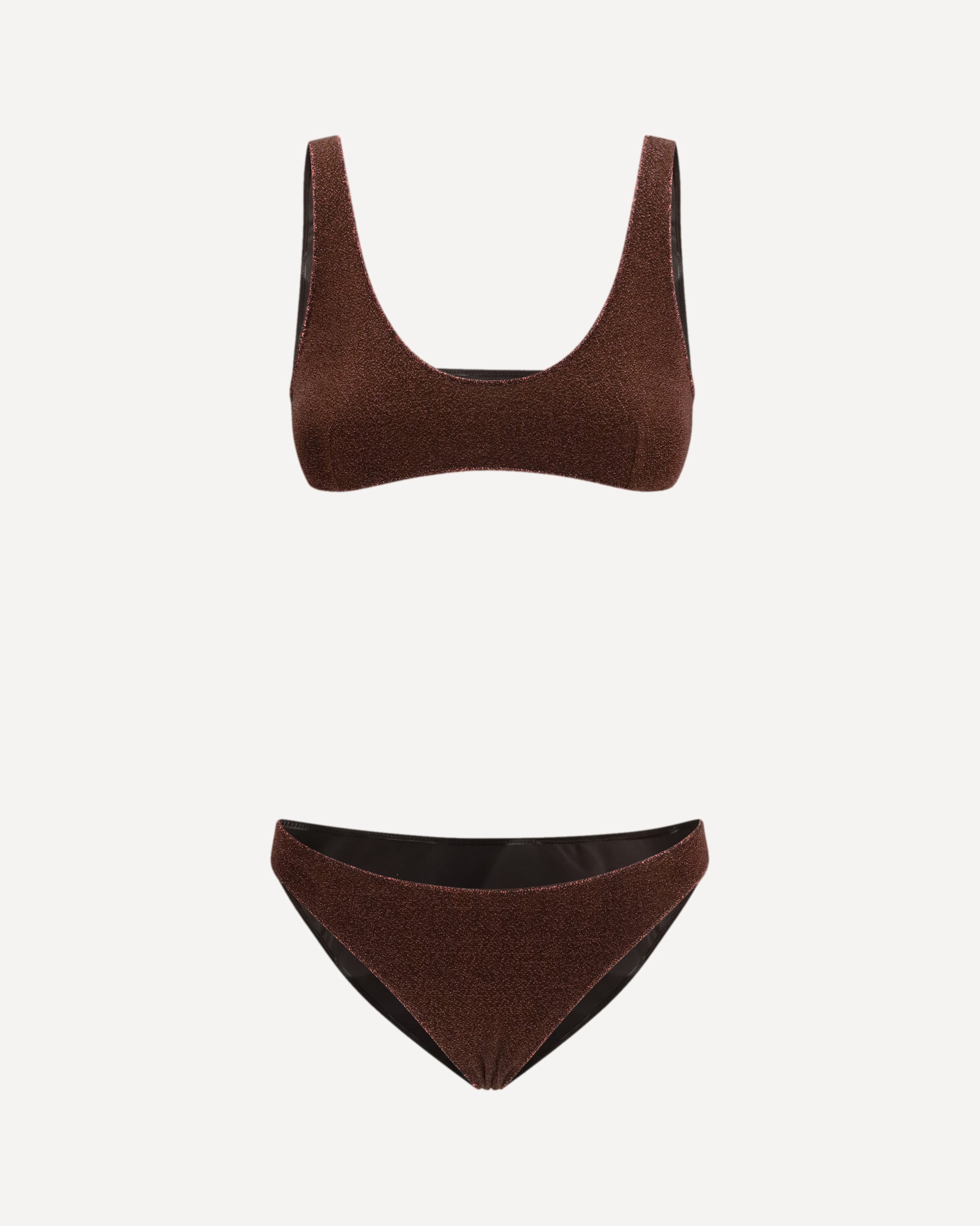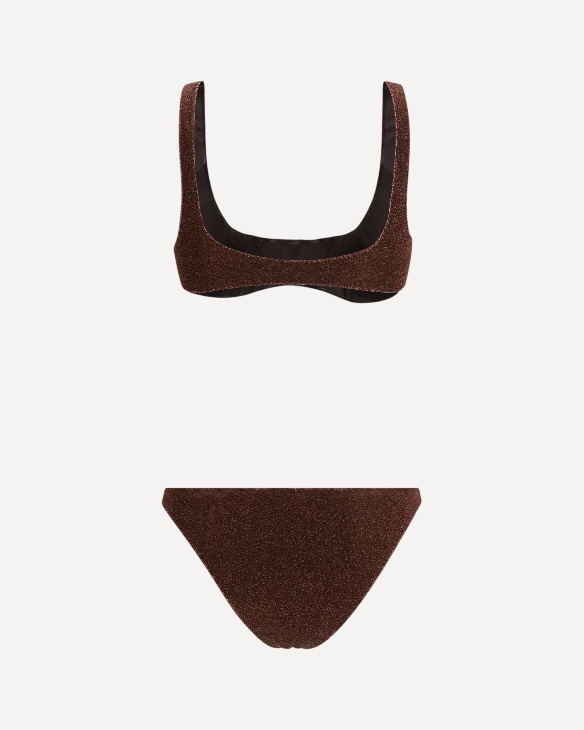 Il Costume da Bagno Lumiere Sporty di Oséree è una scelta perfetta per chi cerca un equilibrio tra stile sportivo e un tocco di glamour. Il pezzo superiore bandeau offre un supporto sicuro grazie alle spalline removibili, combinando funzionalità e comfort. Il design sportivo è enfatizzato dalla struttura semplice e chic, mentre la fantasia glitterata all-over aggiunge una brillantezza discreta e sofisticata, catturando la luce in modo elegante. Questo costume è ideale per chi desidera un look dinamico e moderno, senza rinunciare a un tocco di lusso, perfetto per la piscina o la spiaggia, ma anche per chi cerca un outfit da vacanza che non passi inosservato.