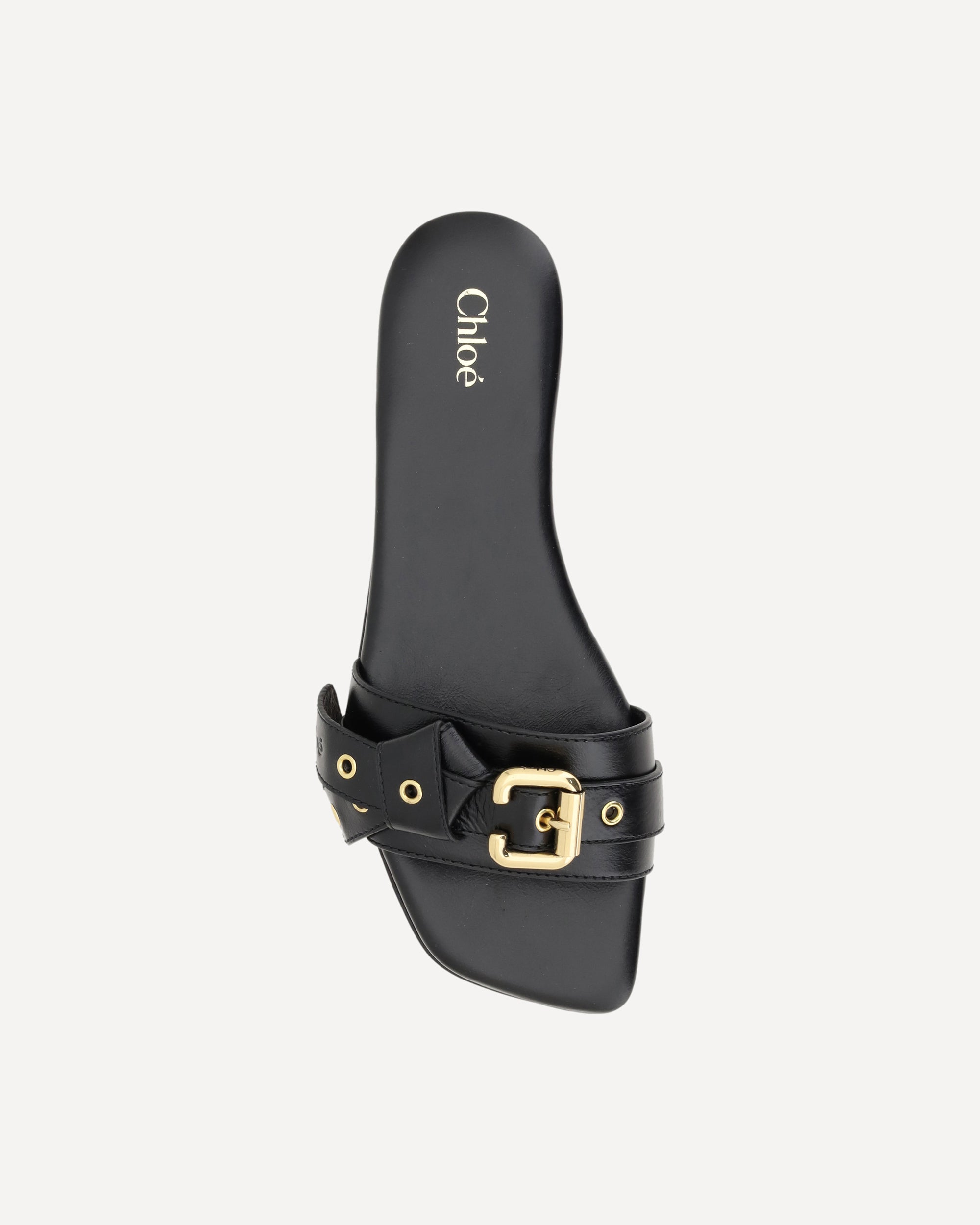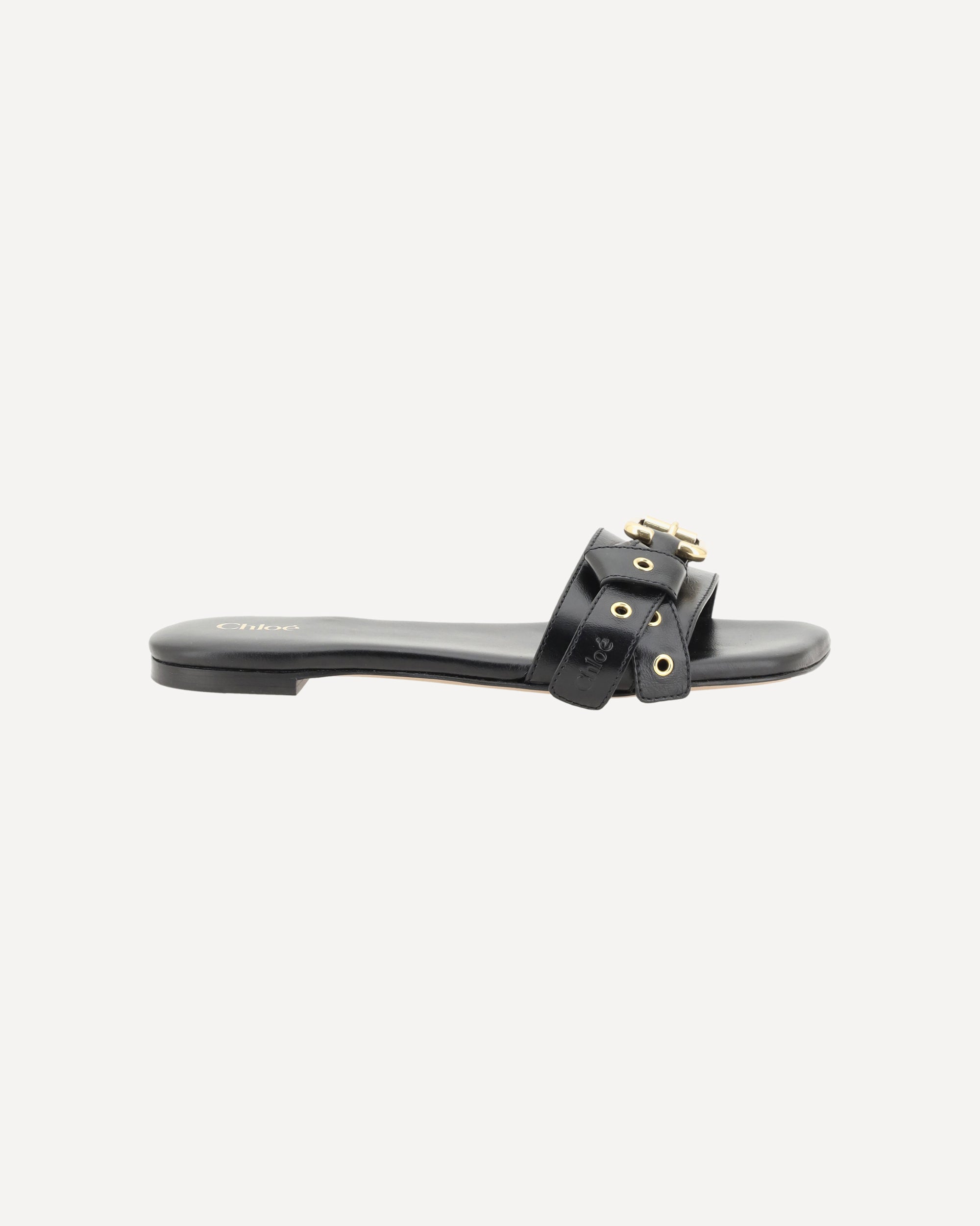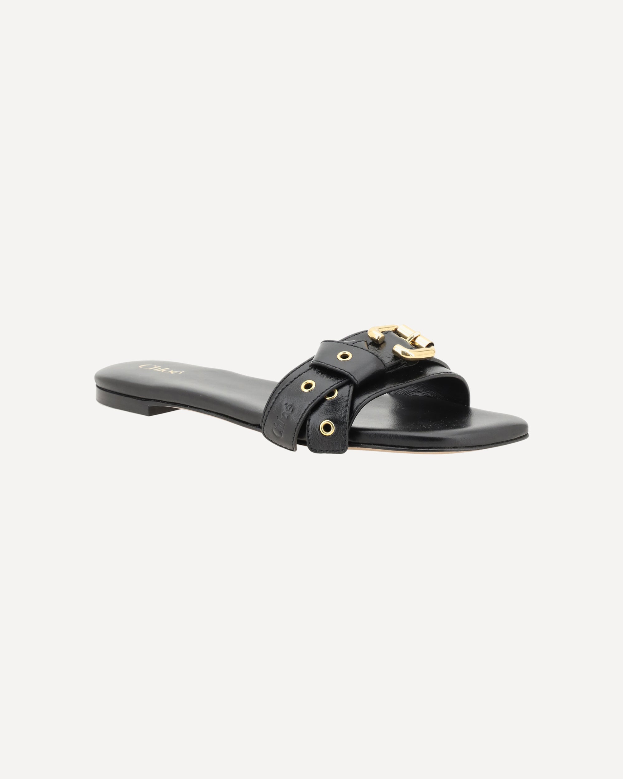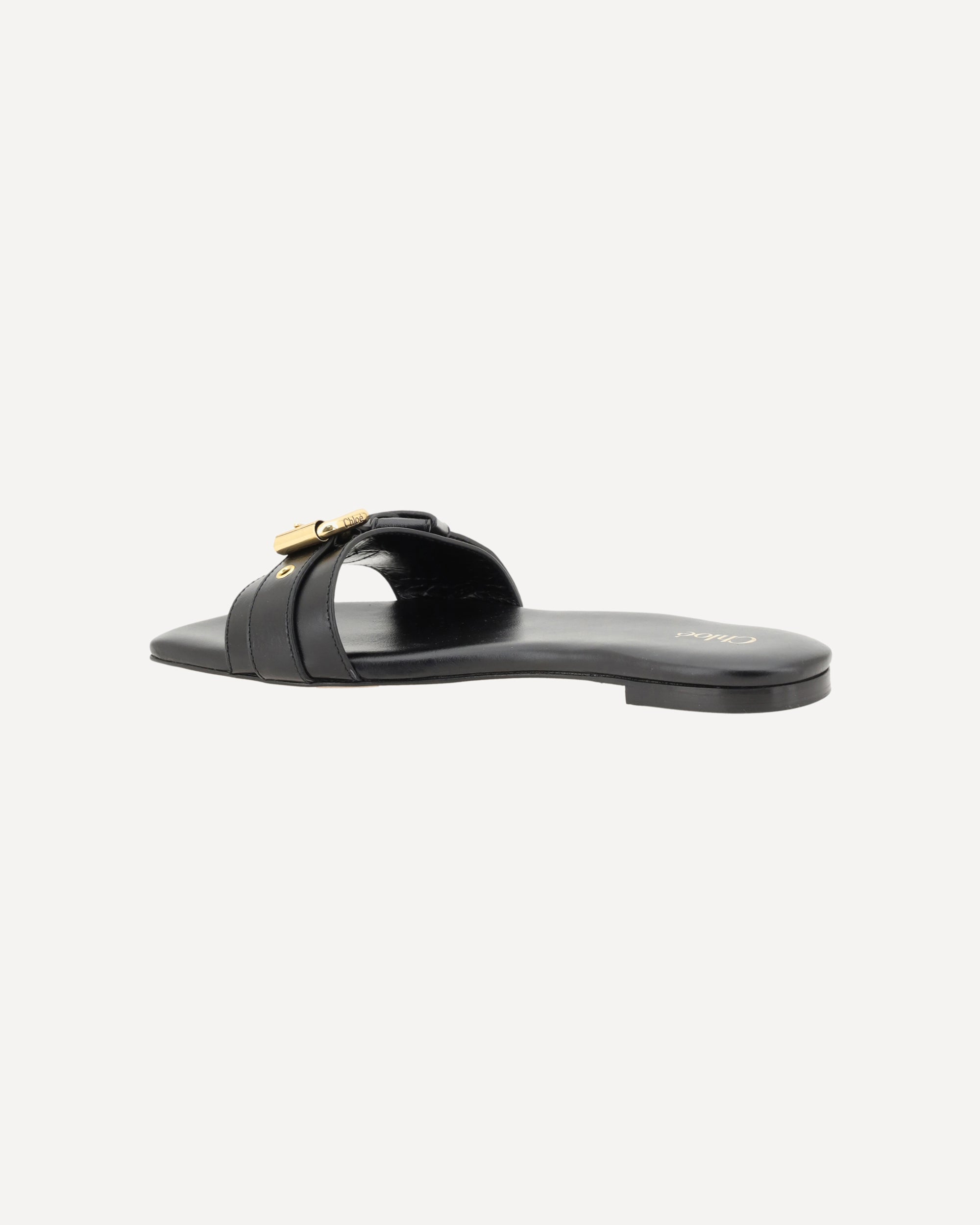 I Sandali Mae in pelle di Chloé sono un mix perfetto di eleganza e dettaglio artigianale. La tomaia è impreziosita da cinturini annodati con il logo Chloé in rilievo e occhielli Gold, mentre la fibbia Paddington, simbolo distintivo della Maison, aggiunge un tocco di lusso e raffinatezza. Il modello da infilare garantisce praticità e comfort, con una suola piatta che offre stabilità durante la camminata. Infine, l'iconico monogramma del brand, stampato a pressione sulla soletta, completa il design con un dettaglio distintivo e riconoscibile.