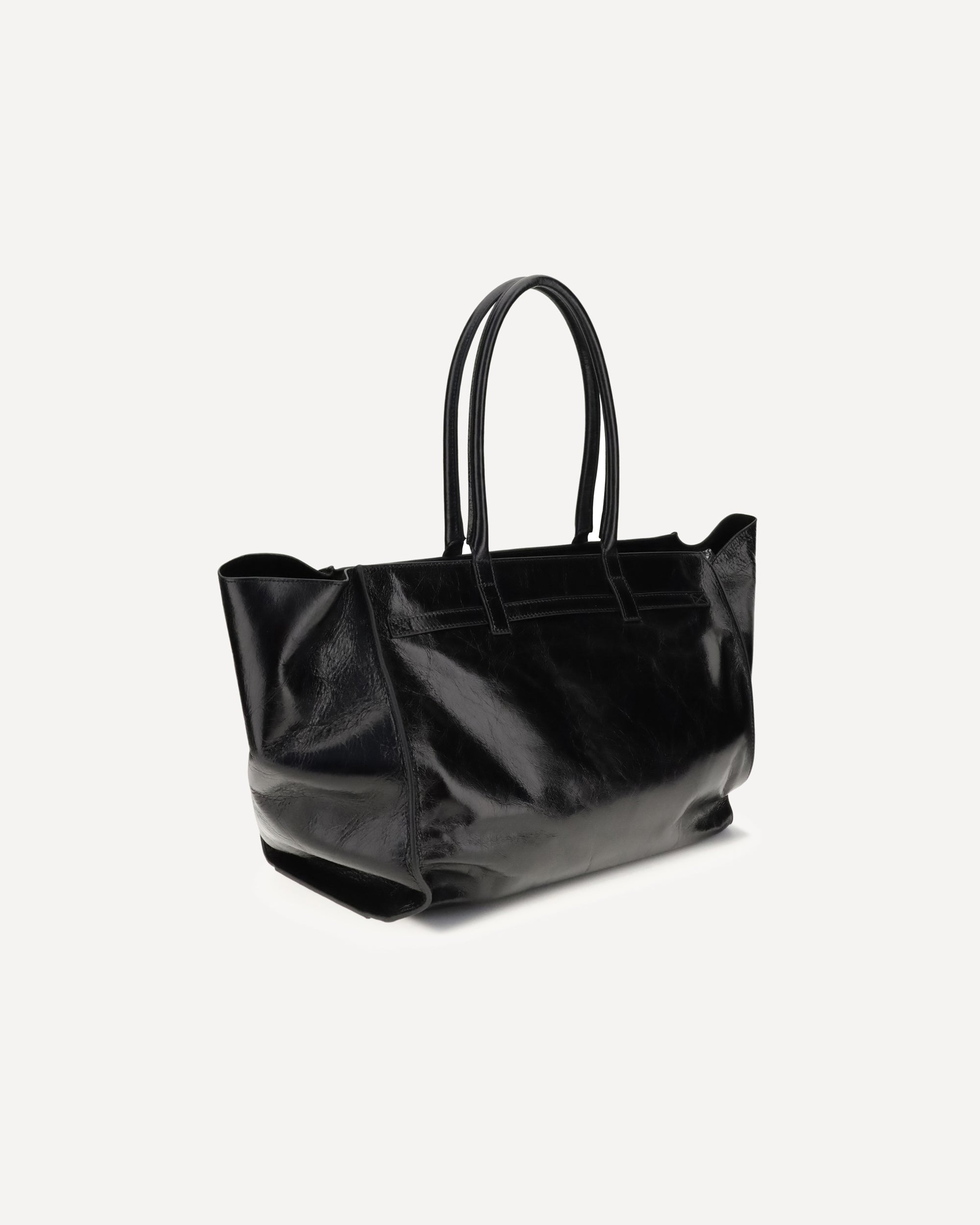 La Borsa a Spalla Mame Weekend di Benedetta Bruzziches è un omaggio all’indimenticabile Zia Mame, protagonista del romanzo di Patrick Dennis e simbolo di libertà, teatralità e anticonformismo. Realizzata in pelle di vitello, con accessori in metallo e doppio manico tubolare, incarna un’eleganza audace e senza compromessi. La chiusura con zip completa il design di una borsa pensata per chi sa che la bellezza, quella vera, non passa mai inosservata.