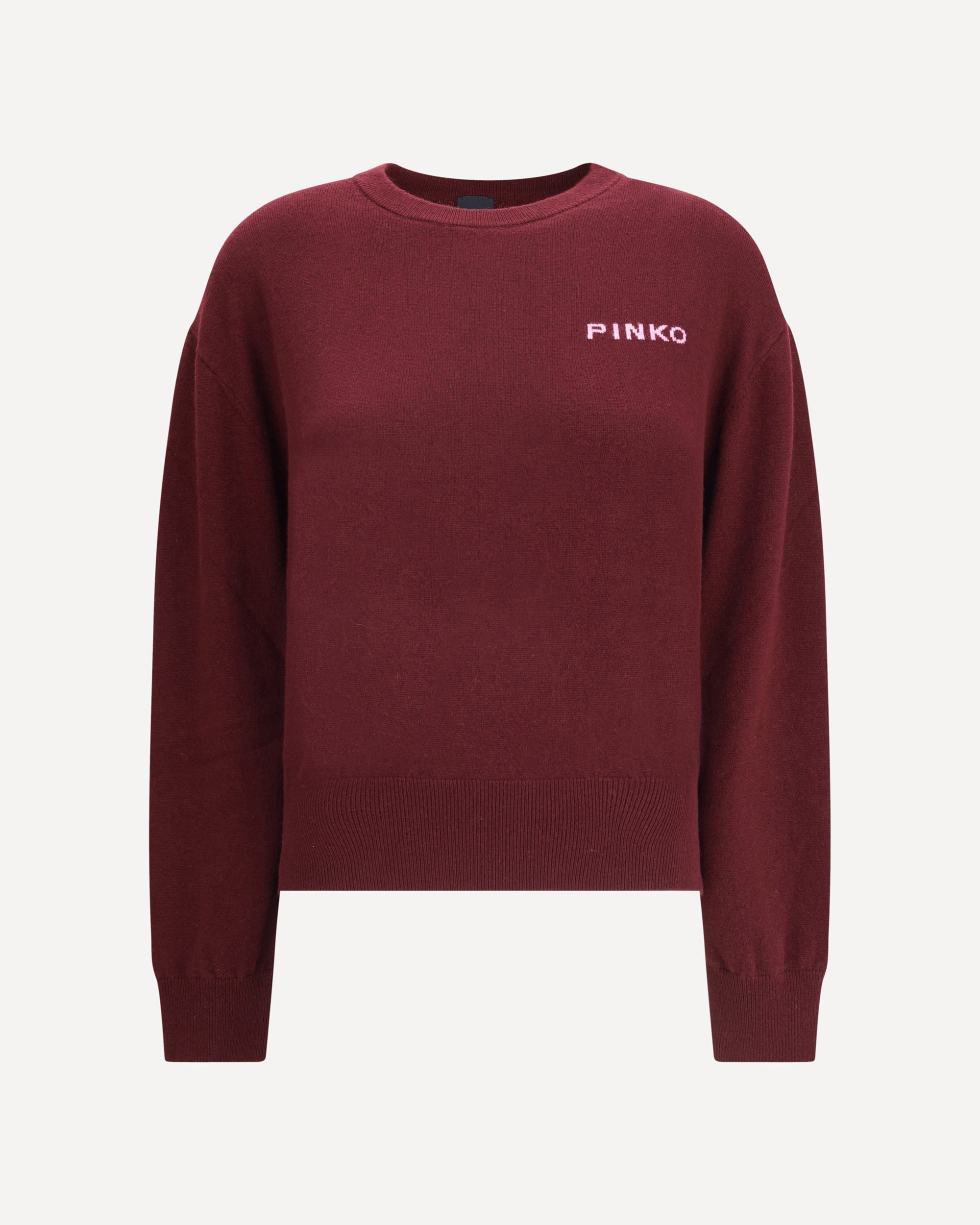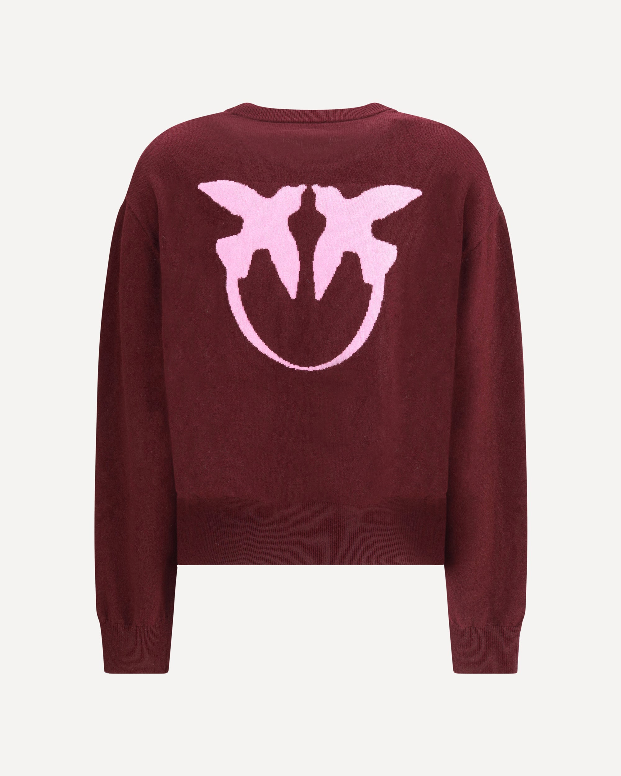Il Maglione con logo di Pinko è un capo casual dal carattere deciso. Realizzato con girocollo, orlo e polsini a costine, è arricchito dall’iconica firma jacquard sul fronte e da un logo discreto sul retro, per un look riconoscibile e contemporaneo.