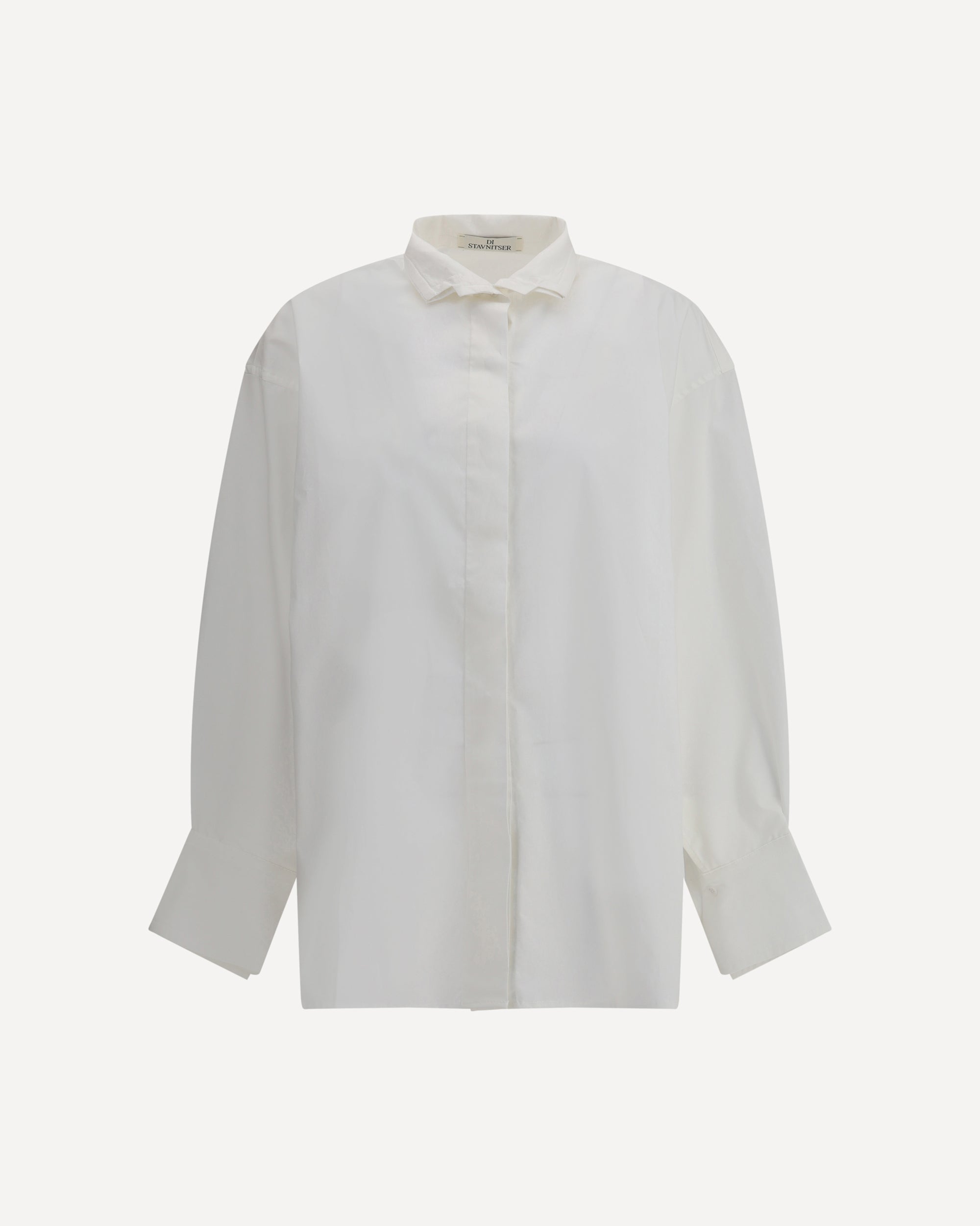 La Camicia Milena di Di Stavnitser unisce eleganza e modernità in un design curato nei dettagli. Dotata di un colletto classico e chiusura con bottoni nascosti, si distingue per le ampie maniche arricchite da un raffinato dettaglio cut-out, ripreso anche sul retro. Un capo sofisticato, perfetto per aggiungere un tocco contemporaneo a ogni look.