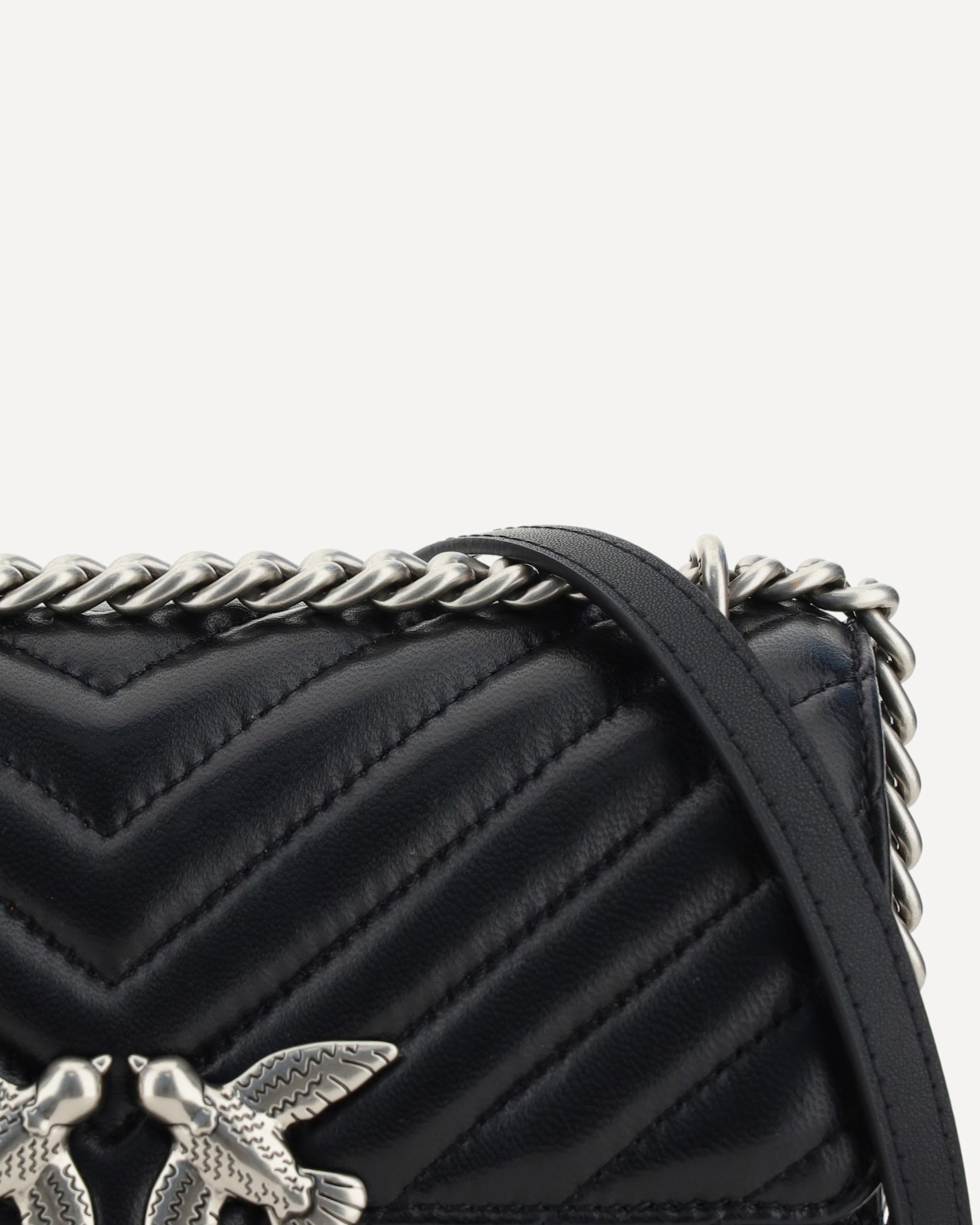 La Borsa a Tracolla Mini Love in Pelle di Pinko è un mix perfetto di eleganza e funzionalità. La chiusura frontale con patta magnetica assicura sicurezza e praticità, mentre l'iconico logo Love Birds placcato oro e applicato in rilievo sul fronte aggiunge un tocco di lusso distintivo. Il design trapuntato e imbottito non solo è raffinato, ma dona anche una sensazione di morbidezza e comfort. Il doppio scomparto interno offre spazio sufficiente per tenere tutto in ordine, mentre la tracolla a catena scorrevole permette di adattarla alla tua altezza preferita, rendendola perfetta per ogni occasione. La tasca interna a filetto e il monogramma del brand ricamato tono su tono sul retro aggiungono dettagli esclusivi che rendono questa borsa un must-have.