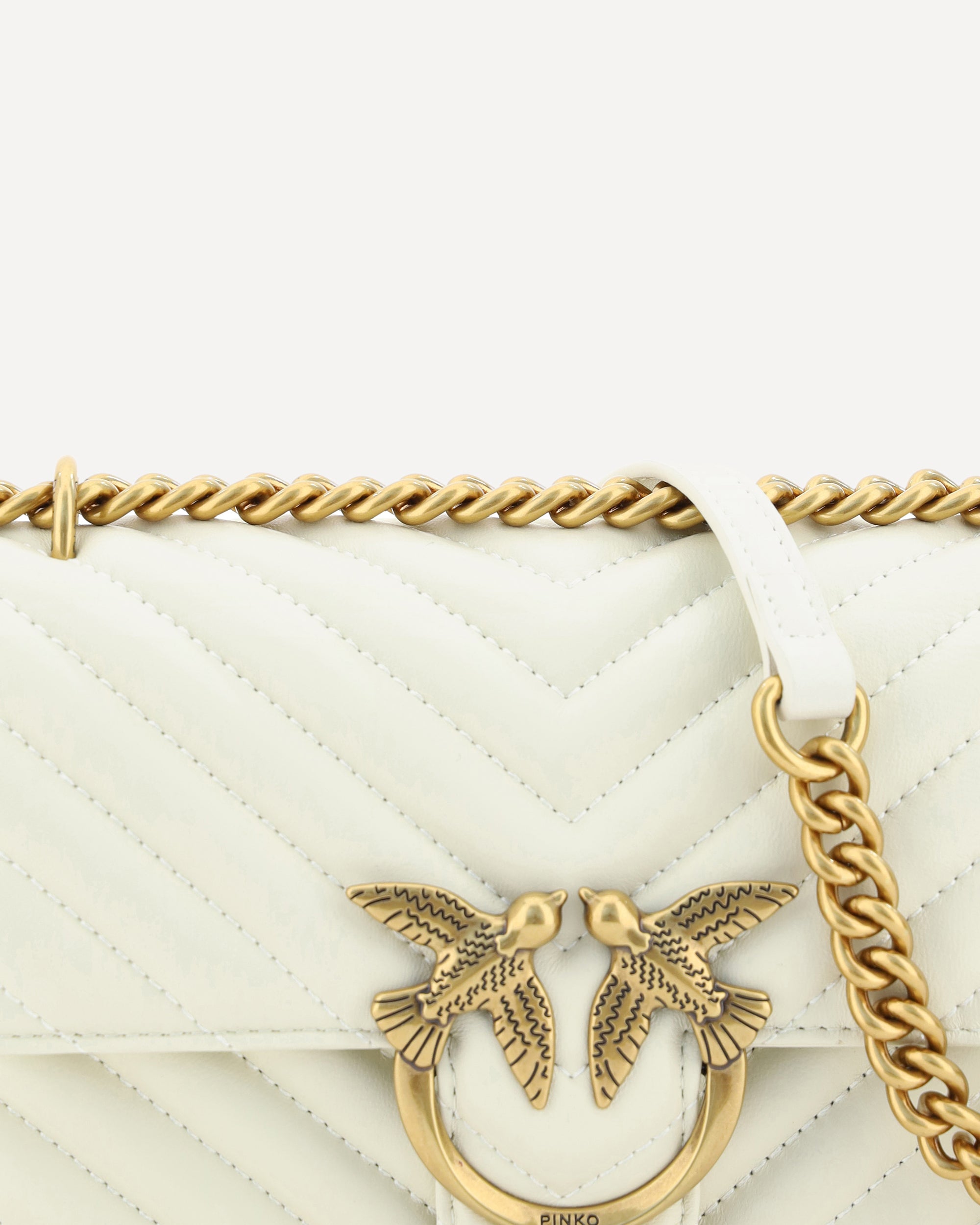 La Borsa a Tracolla Mini Love in Pelle di Pinko è un mix perfetto di eleganza e funzionalità. La chiusura frontale con patta magnetica assicura sicurezza e praticità, mentre l'iconico logo Love Birds placcato oro e applicato in rilievo sul fronte aggiunge un tocco di lusso distintivo. Il design trapuntato e imbottito non solo è raffinato, ma dona anche una sensazione di morbidezza e comfort. Il doppio scomparto interno offre spazio sufficiente per tenere tutto in ordine, mentre la tracolla a catena scorrevole permette di adattarla alla tua altezza preferita, rendendola perfetta per ogni occasione. La tasca interna a filetto e il monogramma del brand ricamato tono su tono sul retro aggiungono dettagli esclusivi che rendono questa borsa un must-have.