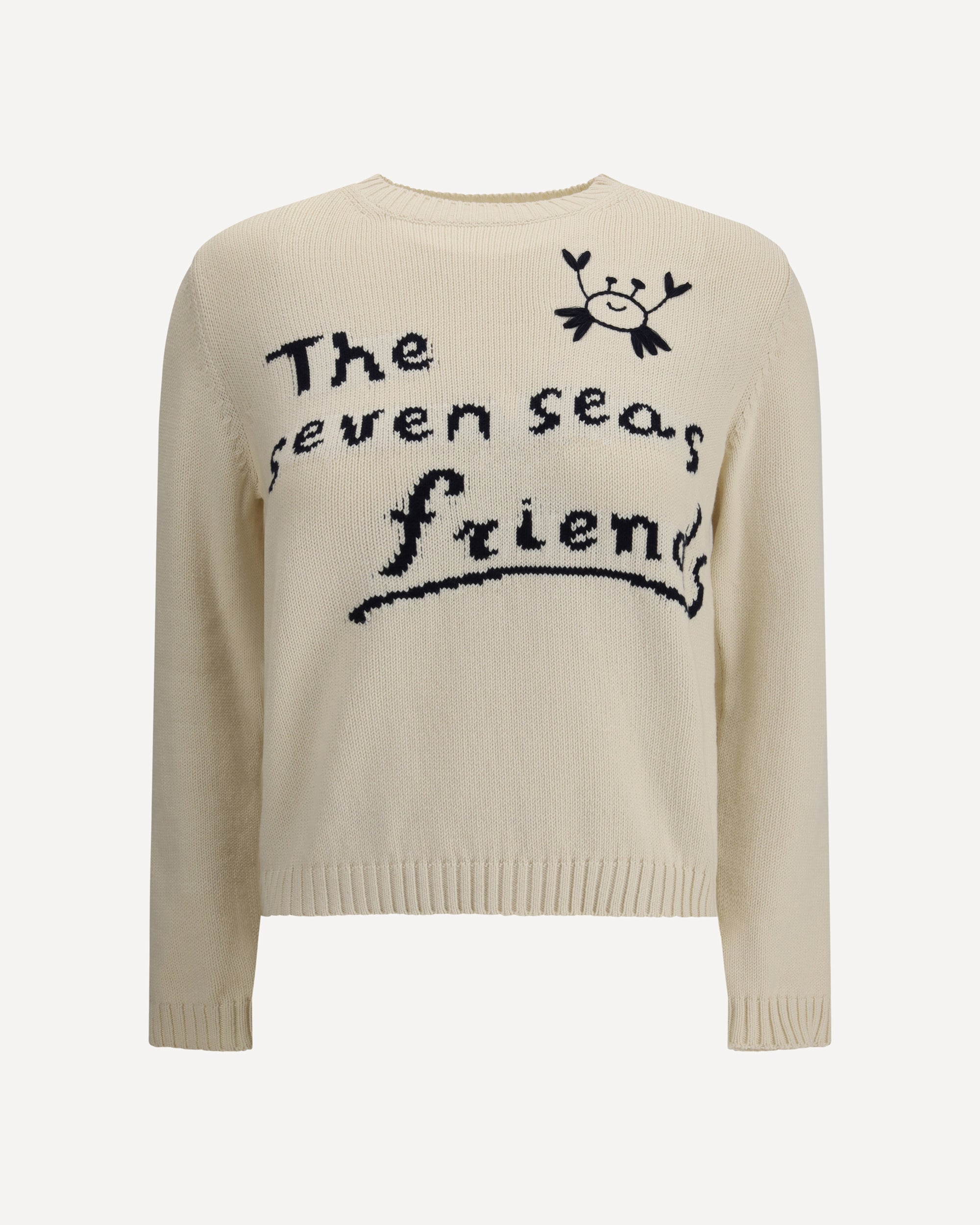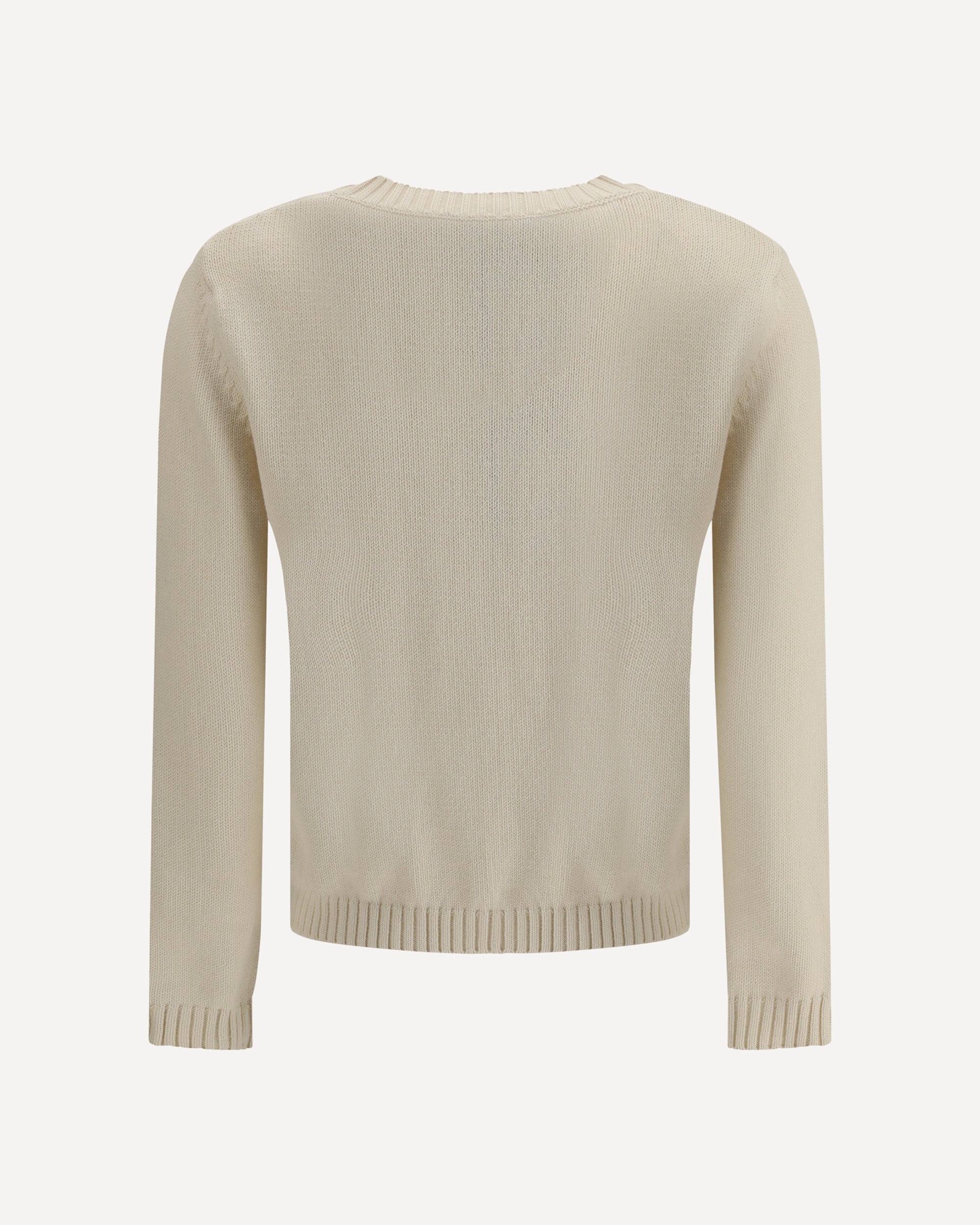 Il Maglione Nespola di Max Mara Weekend è realizzato con finiture a coste su girocollo, polsini e orlo, per una vestibilità definita e confortevole. Sul fronte, una scritta jacquard a contrasto aggiunge un tocco grafico e moderno al design essenziale del capo.