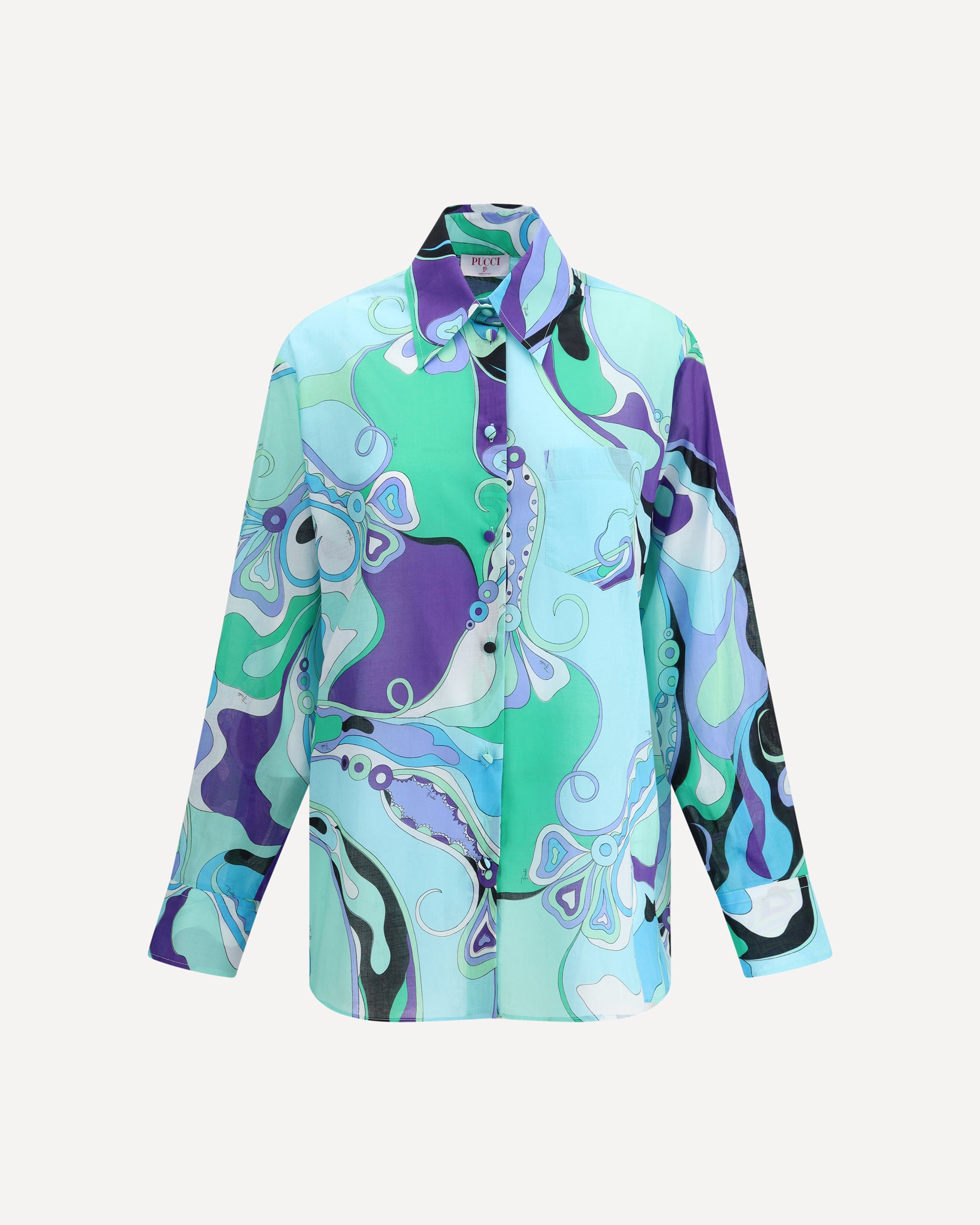 La Camicia con stampa Orchidee di Pucci unisce eleganza e vivacità grazie all’iconica fantasia all-over. Con colletto classico, chiusura frontale con bottoni e una tasca applicata sul petto, è un capo dal carattere deciso, perfetto per aggiungere un tocco grafico e distintivo al look.Per offrirti un capo unico, Pucci utilizza una stampa all-over che rende l'articolo irripetibile. Per questo, il piazzamento della stampa potrebbe variare rispetto a quello in foto.