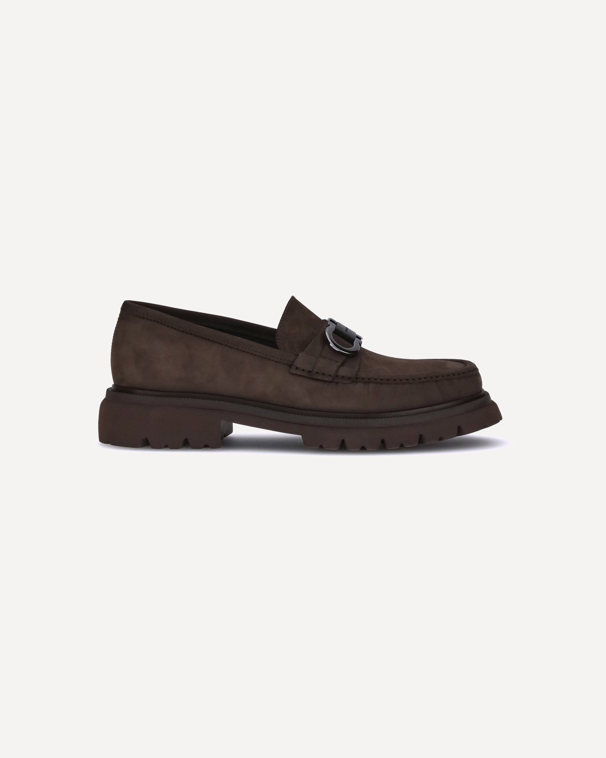 I Mocassini Gancini di Ferragamo uniscono tradizione artigianale e spirito contemporaneo in un design sofisticato e deciso. Realizzati in morbida pelle scamosciata, si distinguono per il raffinato dettaglio Gancini sul fronte, emblema della maison e simbolo di eleganza discreta. La suola carro armato conferisce un tocco grintoso al modello, garantendo al contempo comfort e stabilità. Perfetti per chi cerca una calzatura versatile, capace di coniugare stile classico e accenti moderni.