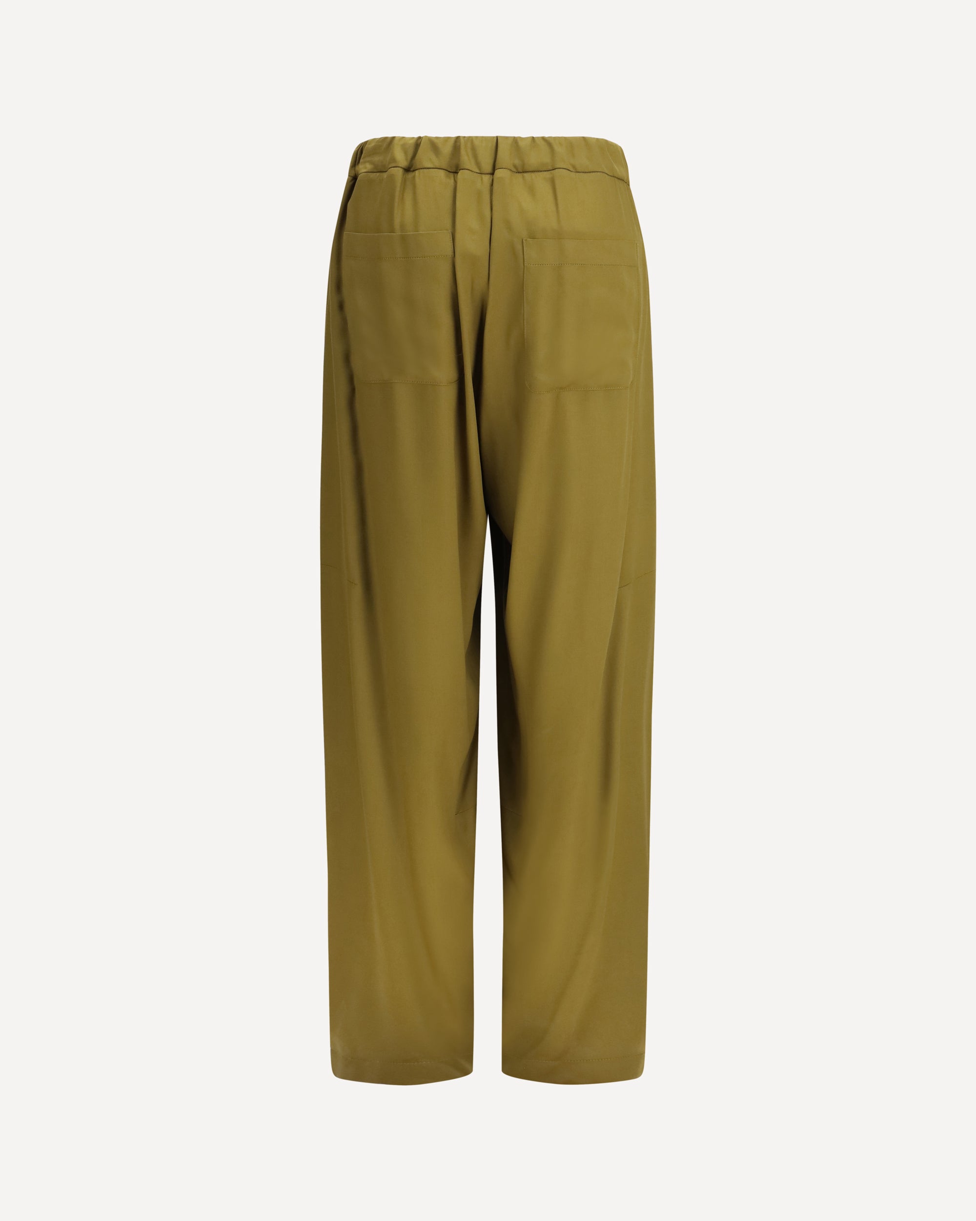 Il Pantalone botte con coulisse in viscosa di Ella è caratterizzato da vestibilità regular e linea arrotondata che definisce la silhouette con equilibrio contemporaneo. La chiusura con coulisse, bottone singolo e zip struttura il punto vita con funzionalità discreta, mentre le quattro tasche completano il design con praticità essenziale. Un modello pensato per un’eleganza rilassata e versatile, espressione dell’identità del brand.