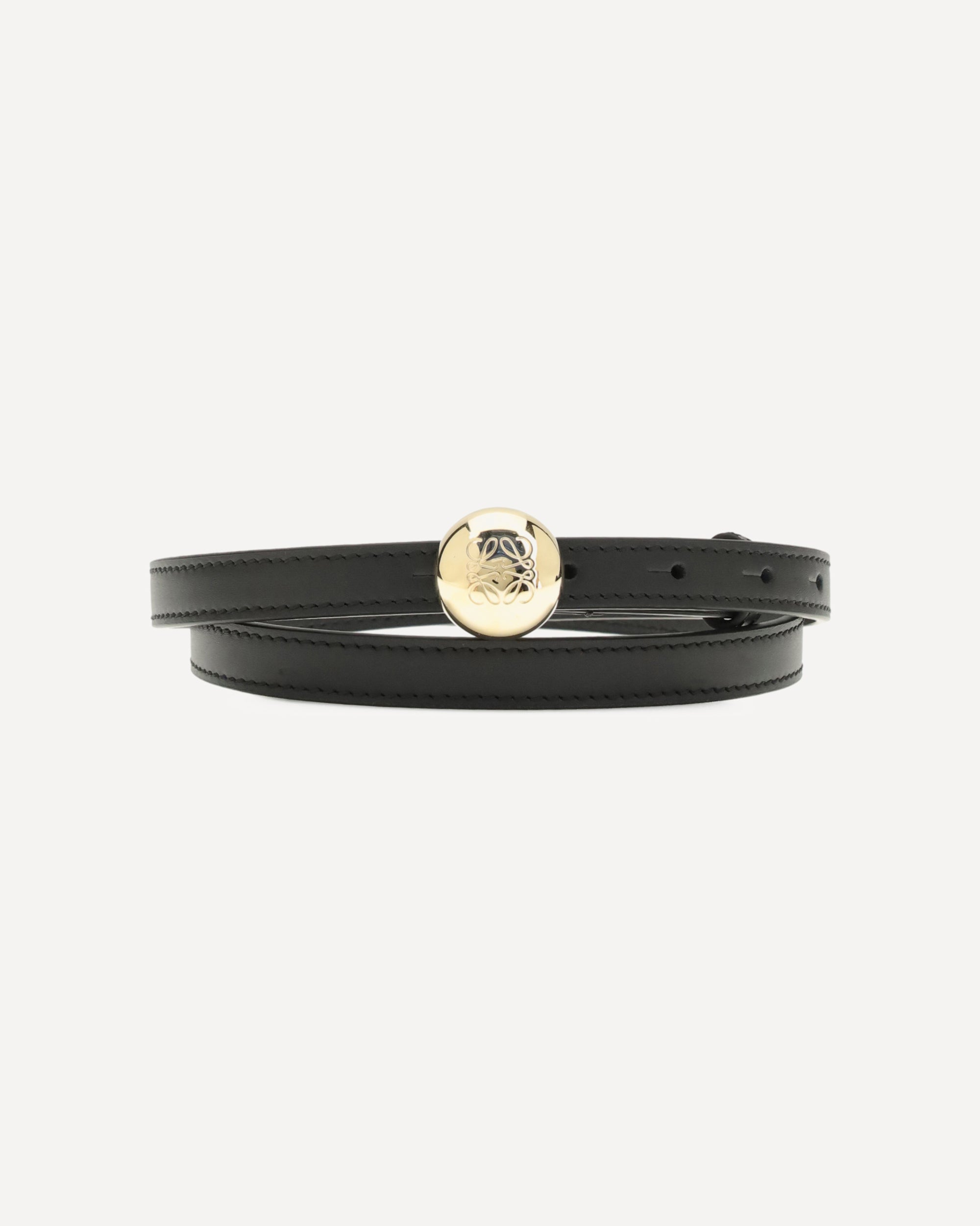 La Cintura Pebble in pelle di Loewe è un accessorio elegante e minimale, impreziosito dalla fibbia Anagram Pebble, simbolo iconico della maison. Realizzata in pelle liscia, presenta una larghezza sottile di 1,5 cm e cinque fori per una regolazione precisa e confortevole.