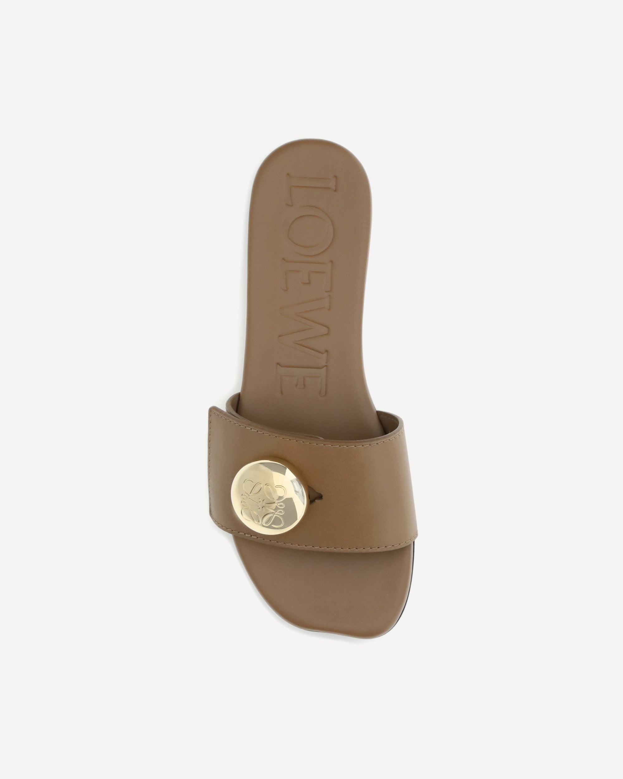 I Sandali Pebble di Loewe, realizzati in pelle di vitello liscia, si distinguono per il dettaglio Anagram Pebble in metallo sulla parte frontale. Caratterizzati da una punta sagomata e dal logo impresso all’interno, uniscono eleganza e raffinatezza in un modello contemporaneo e distintivo.
