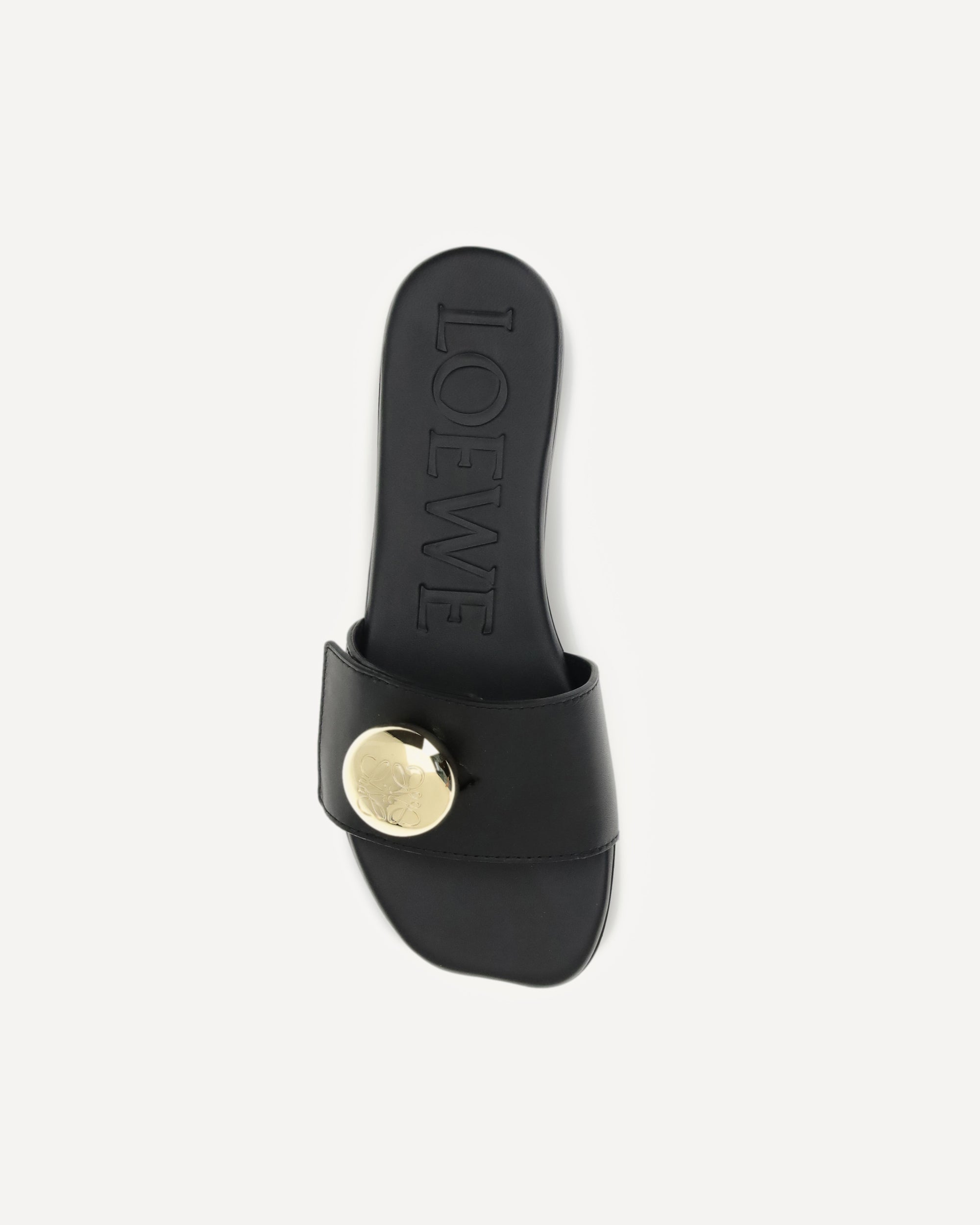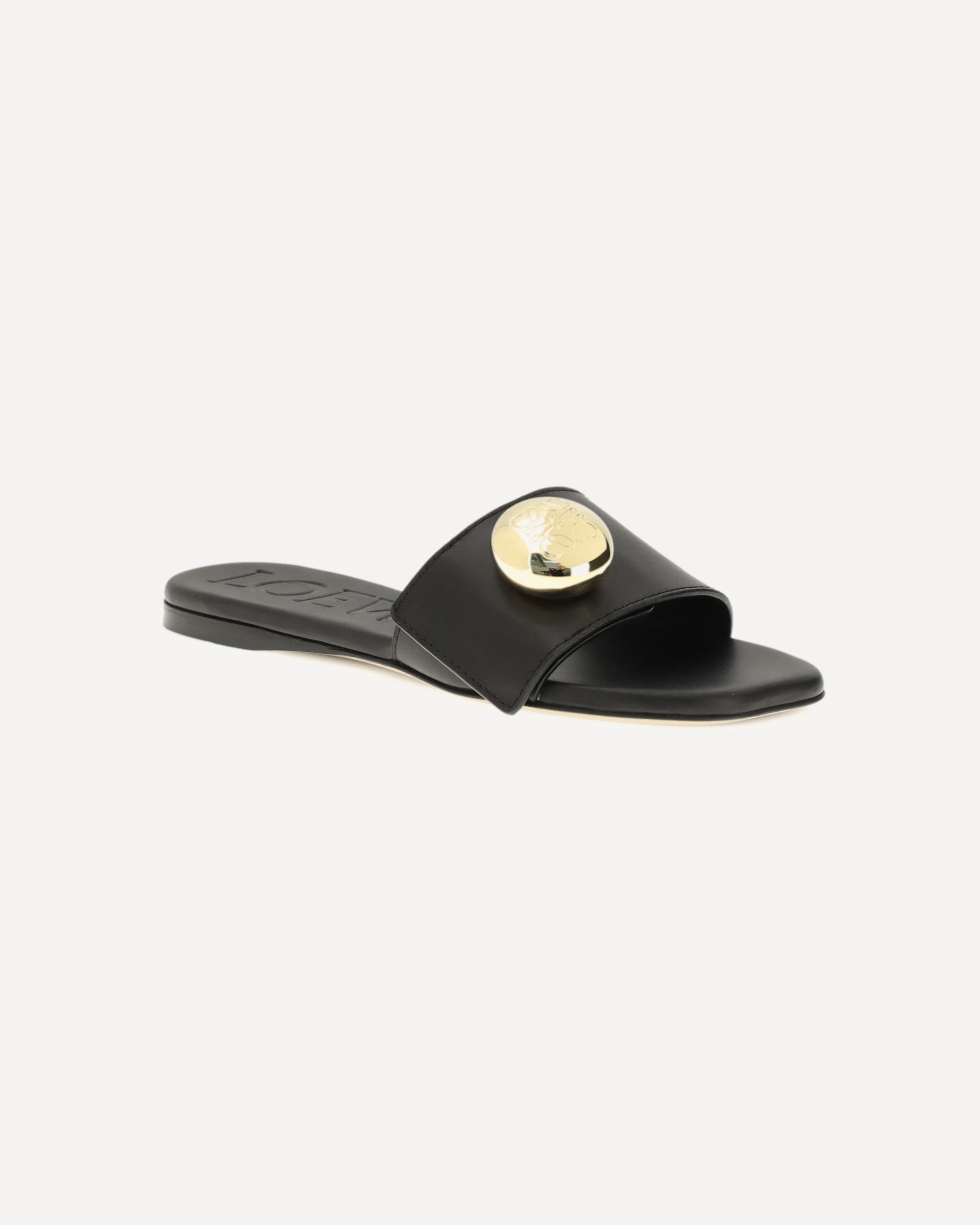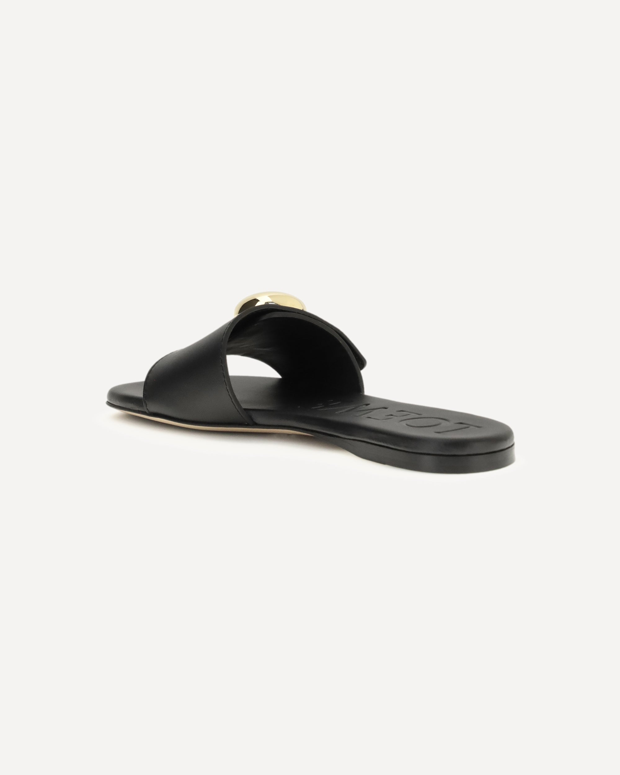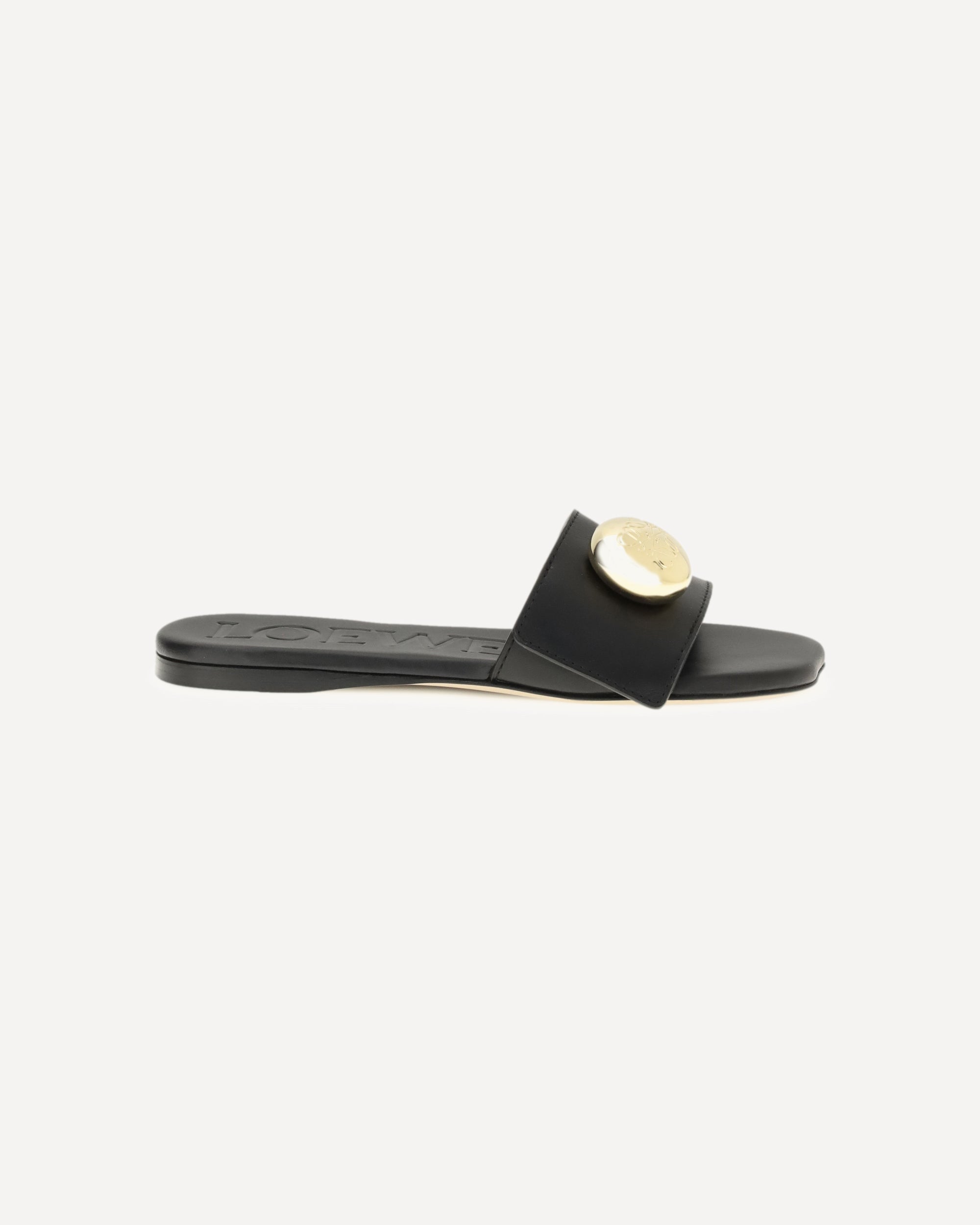 I Sandali Pebble di Loewe, realizzati in pelle di vitello liscia, si distinguono per il dettaglio Anagram Pebble in metallo sulla parte frontale. Caratterizzati da una punta sagomata e dal logo impresso all’interno, uniscono eleganza e raffinatezza in un modello contemporaneo e distintivo.