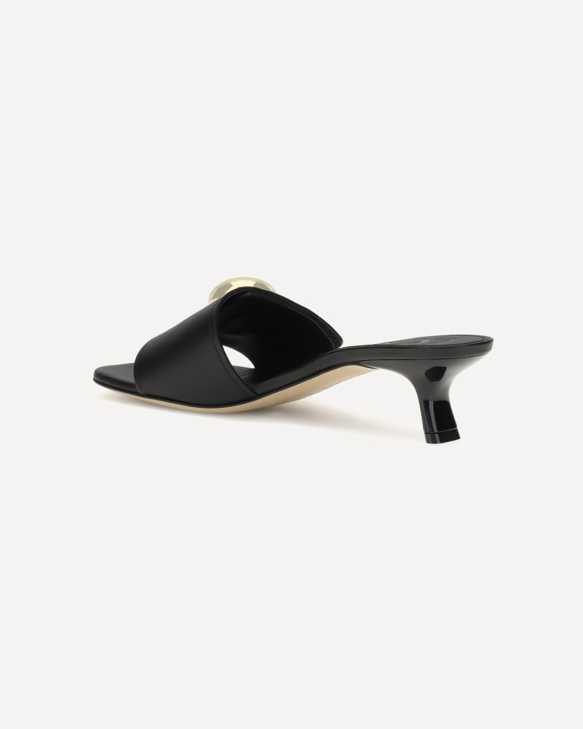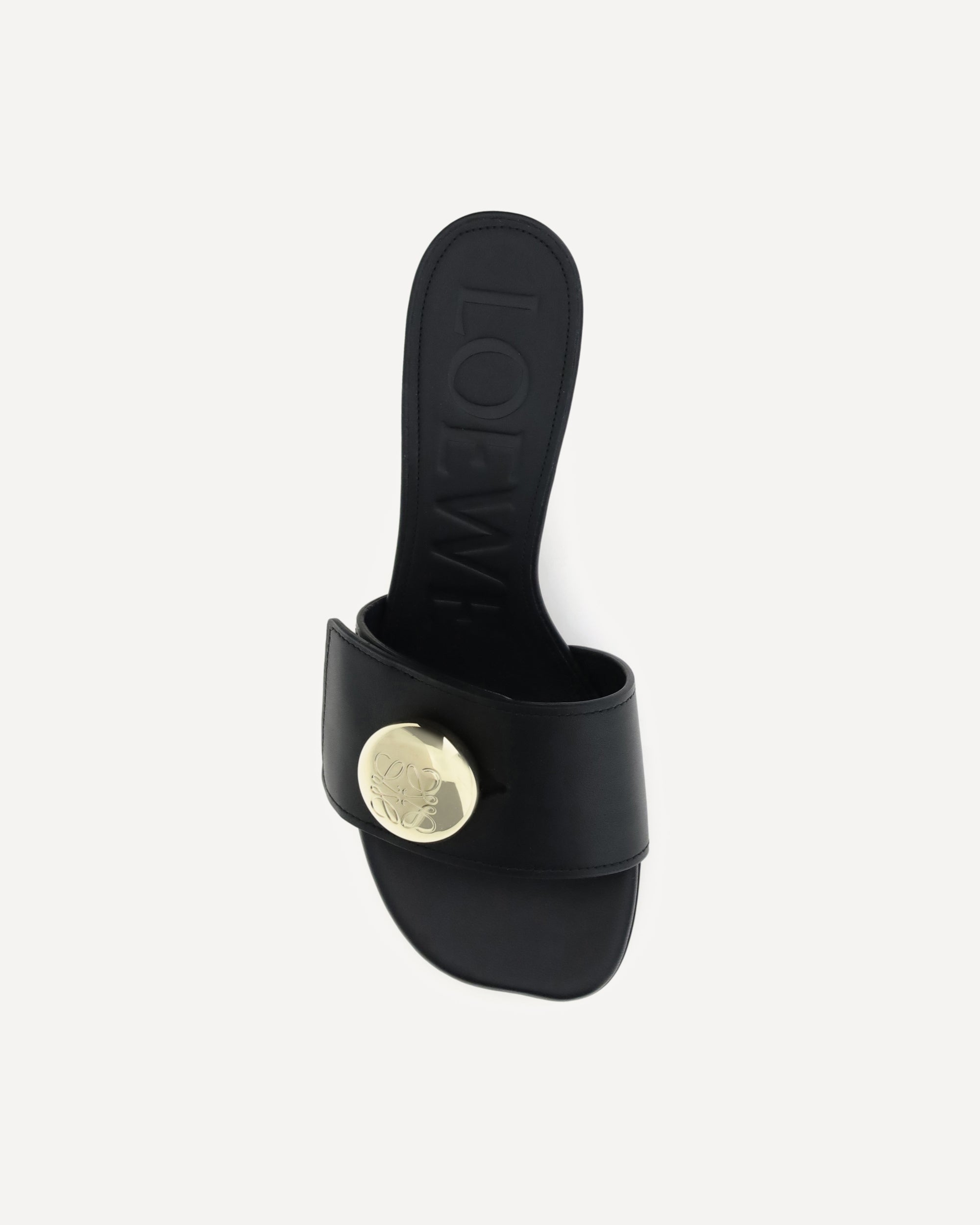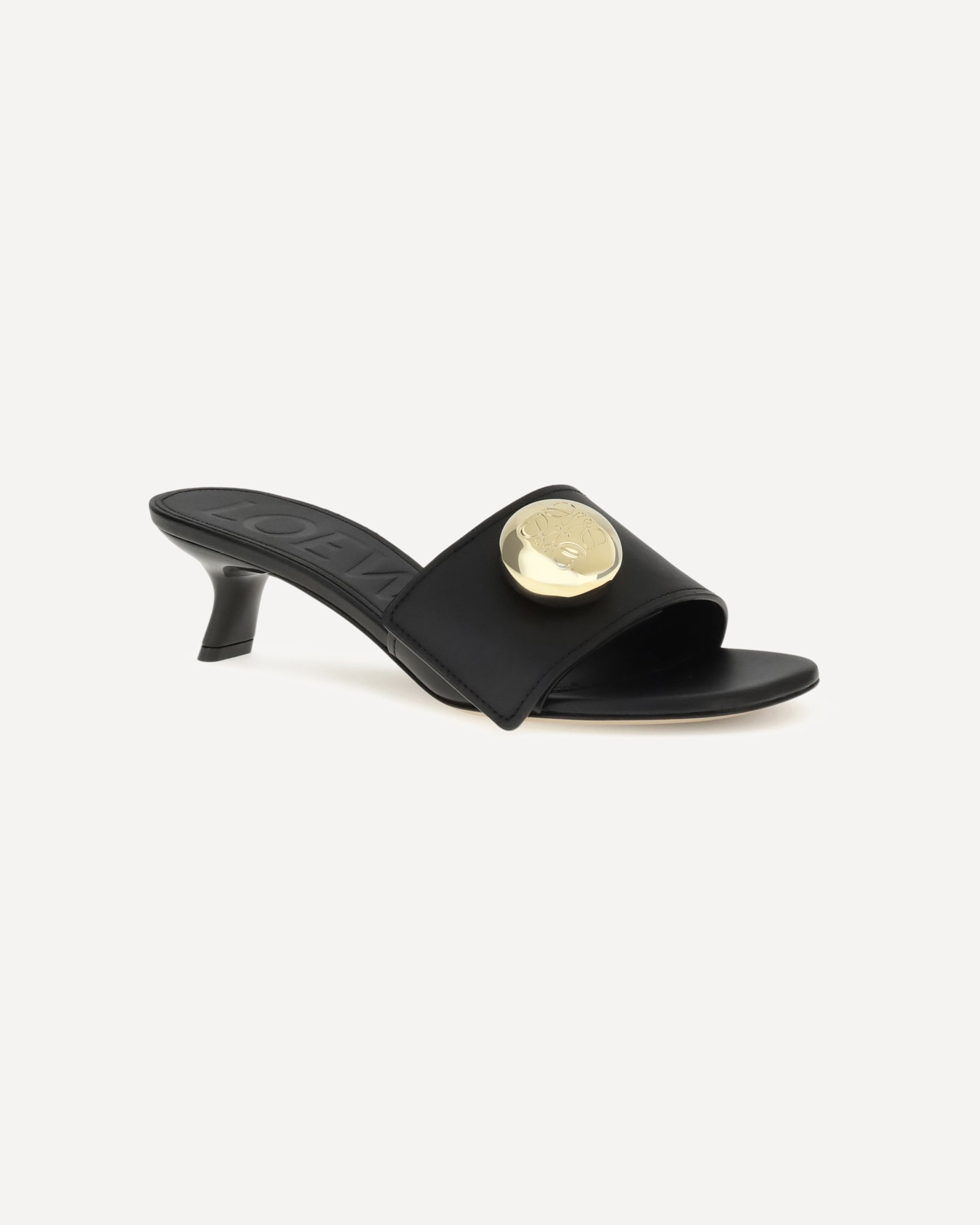 I Sandali Pebble di Loewe con tacco sono realizzati in morbida pelle di vitello e si distinguono per la punta a forma di petalo, emblema di eleganza e originalità. La tomaia è impreziosita dal dettaglio Anagram Pebble con finitura oro, mentre il tacco angolato laccato lucido aggiunge un tocco scultoreo e sofisticato a questo modello dal design iconico.