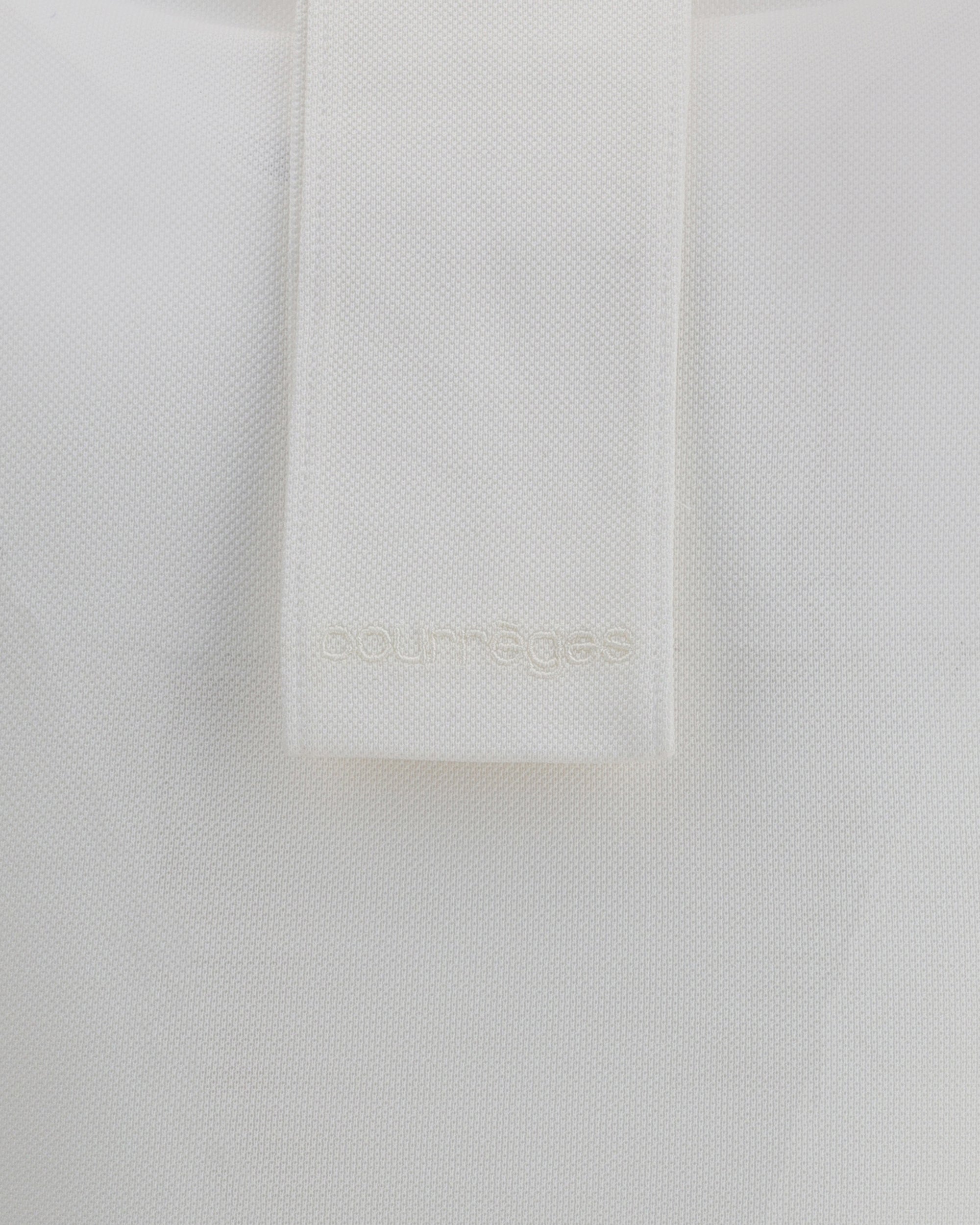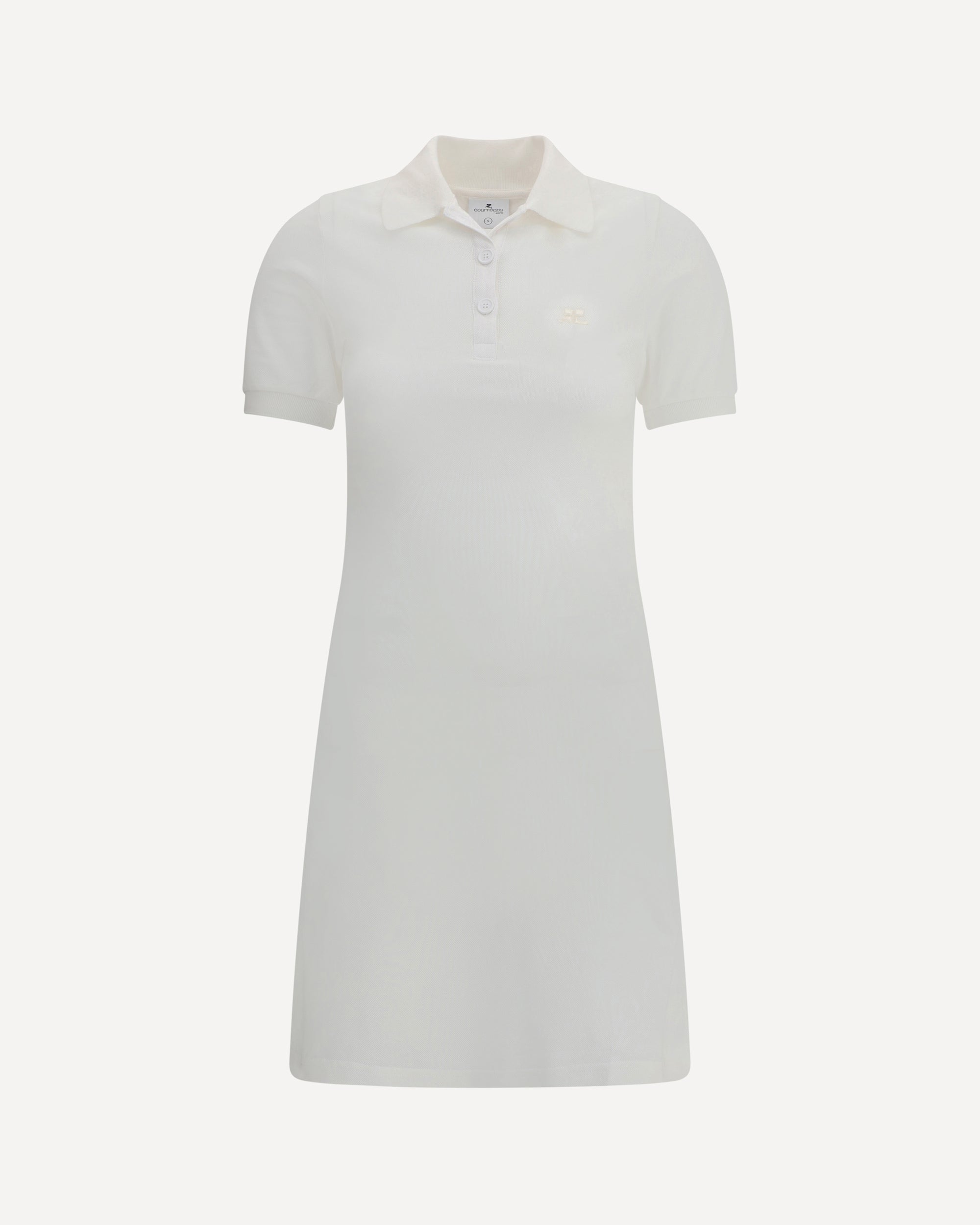 L'Abito in cotone di Courrèges è un capo elegante e sofisticato che richiama lo stile di una maglia polo. Il modello a maniche corte e il colletto classico ne esaltano il design minimalista, mentre i bottoncini sul fronte aggiungono un tocco raffinato. L'iconico logo ricamato tono su tono sul fronte conferisce un dettaglio discreto ma distintivo. Con una vestibilità slim, questo abito valorizza la figura, offrendo un look moderno e chic, perfetto per diverse occasioni, dal giorno alla sera.