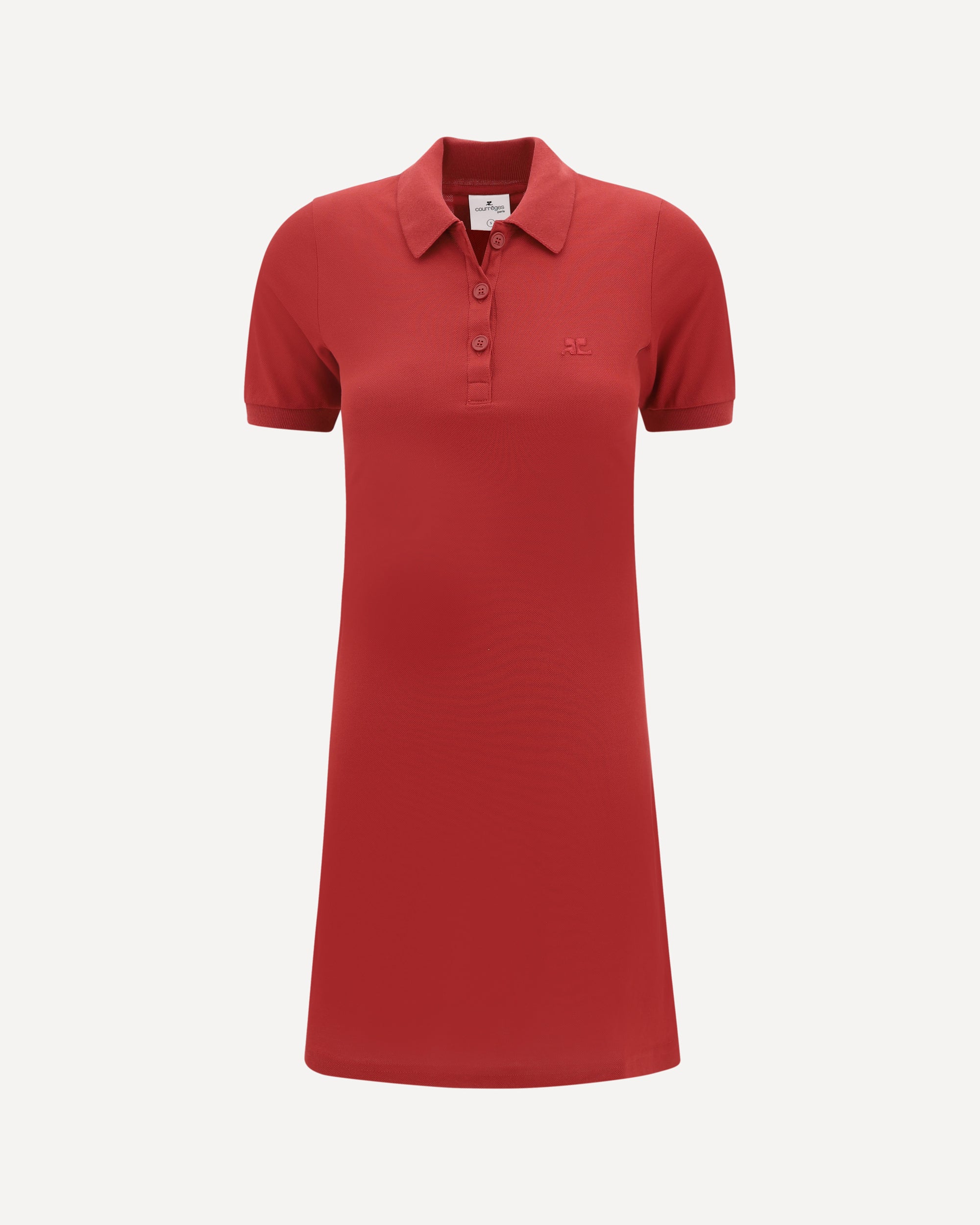 L'Abito in cotone di Courrèges è un capo elegante e sofisticato che richiama lo stile di una maglia polo. Il modello a maniche corte e il colletto classico ne esaltano il design minimalista, mentre i bottoncini sul fronte aggiungono un tocco raffinato. L'iconico logo ricamato tono su tono sul fronte conferisce un dettaglio discreto ma distintivo. Con una vestibilità slim, questo abito valorizza la figura, offrendo un look moderno e chic, perfetto per diverse occasioni, dal giorno alla sera.