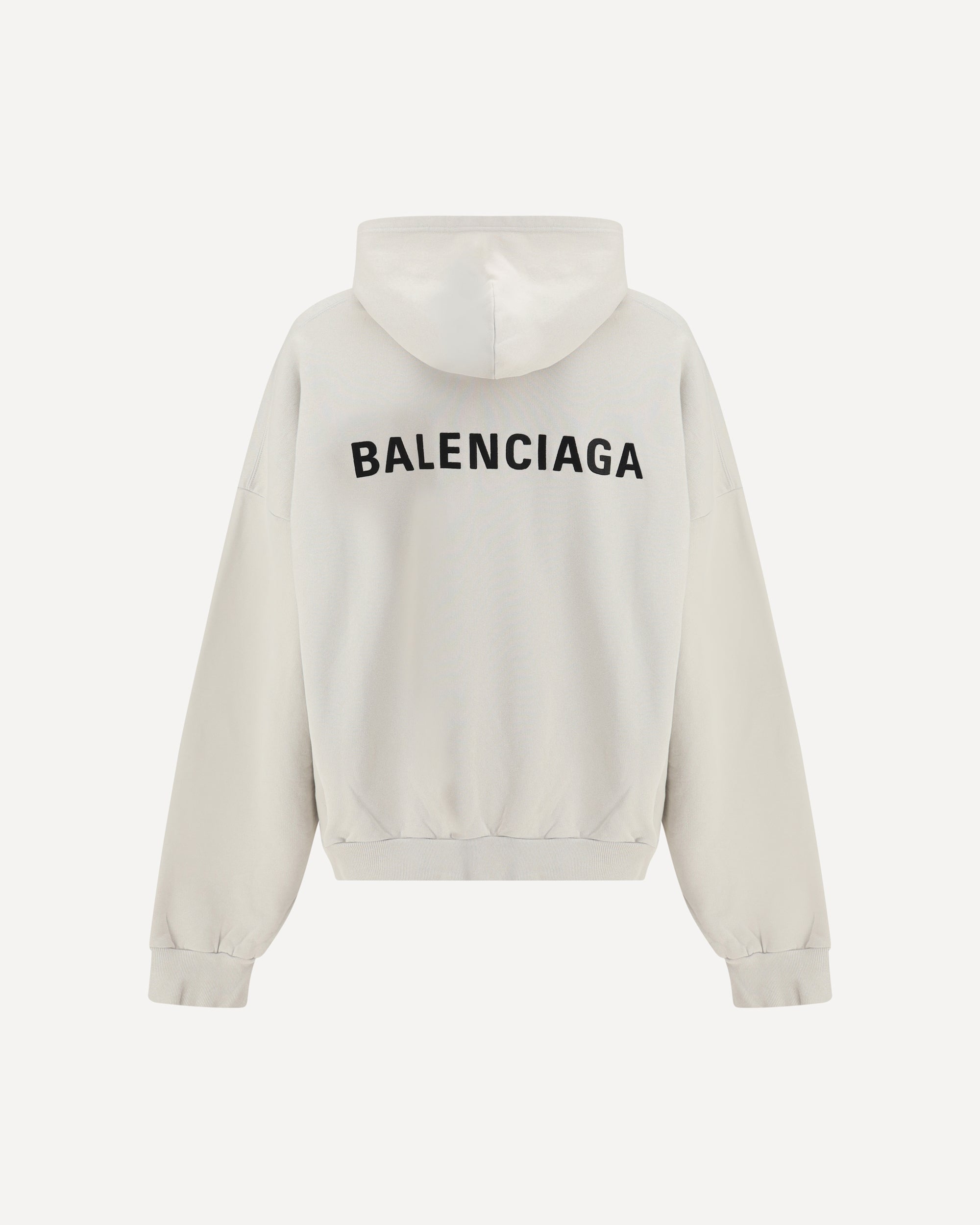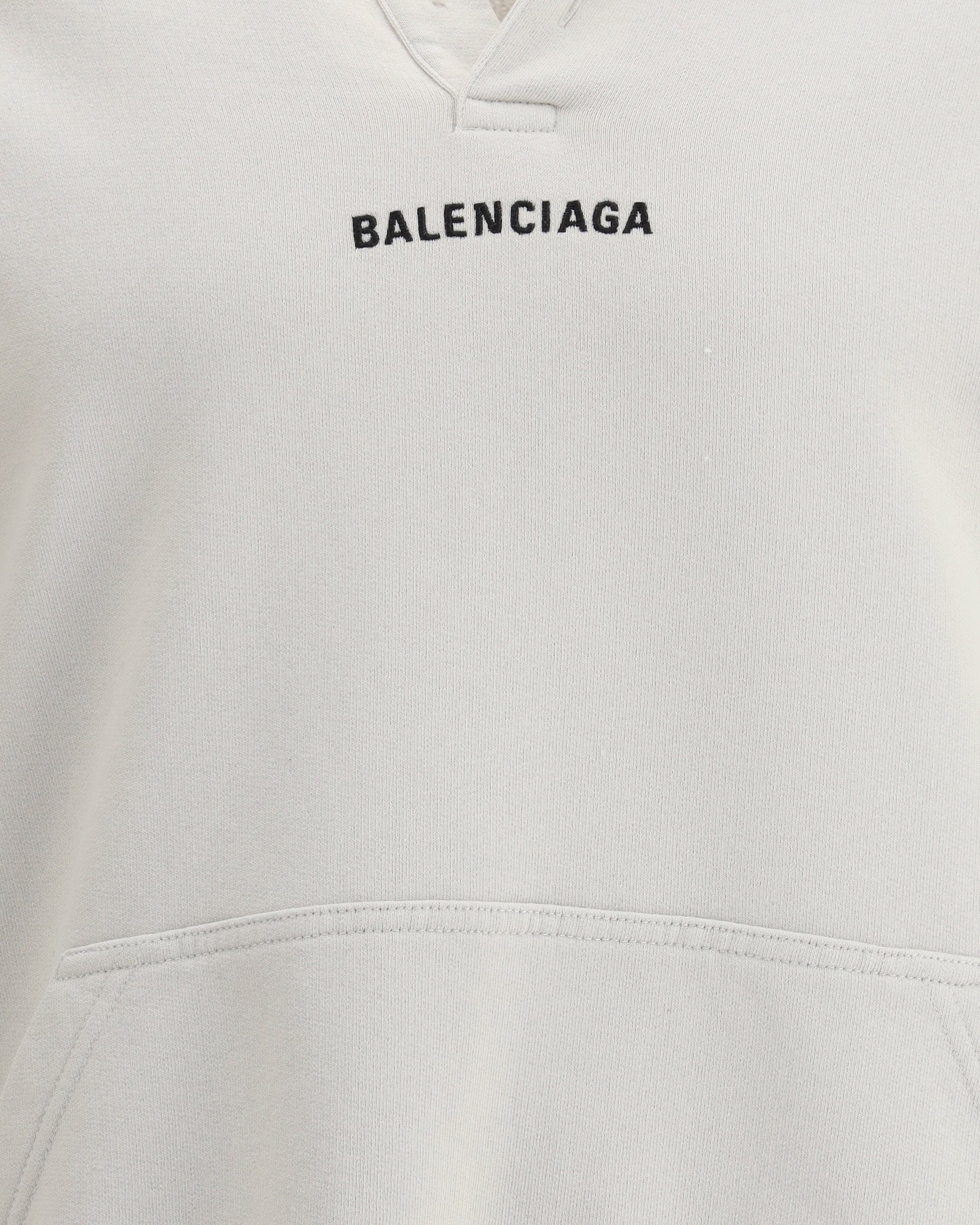 La Felpa con cappuccio di Balenciaga unisce comfort e design iconico. Realizzata in pile medio, presenta una vestibilità morbida con spalle scivolate e una pratica tasca a marsupio sul davanti. I dettagli arricciati su polsini e vita definiscono il fit, mentre il logo Balenciaga ricamato sul fronte e sul retro con finitura effetto riflettente aggiunge un carattere contemporaneo e distintivo.