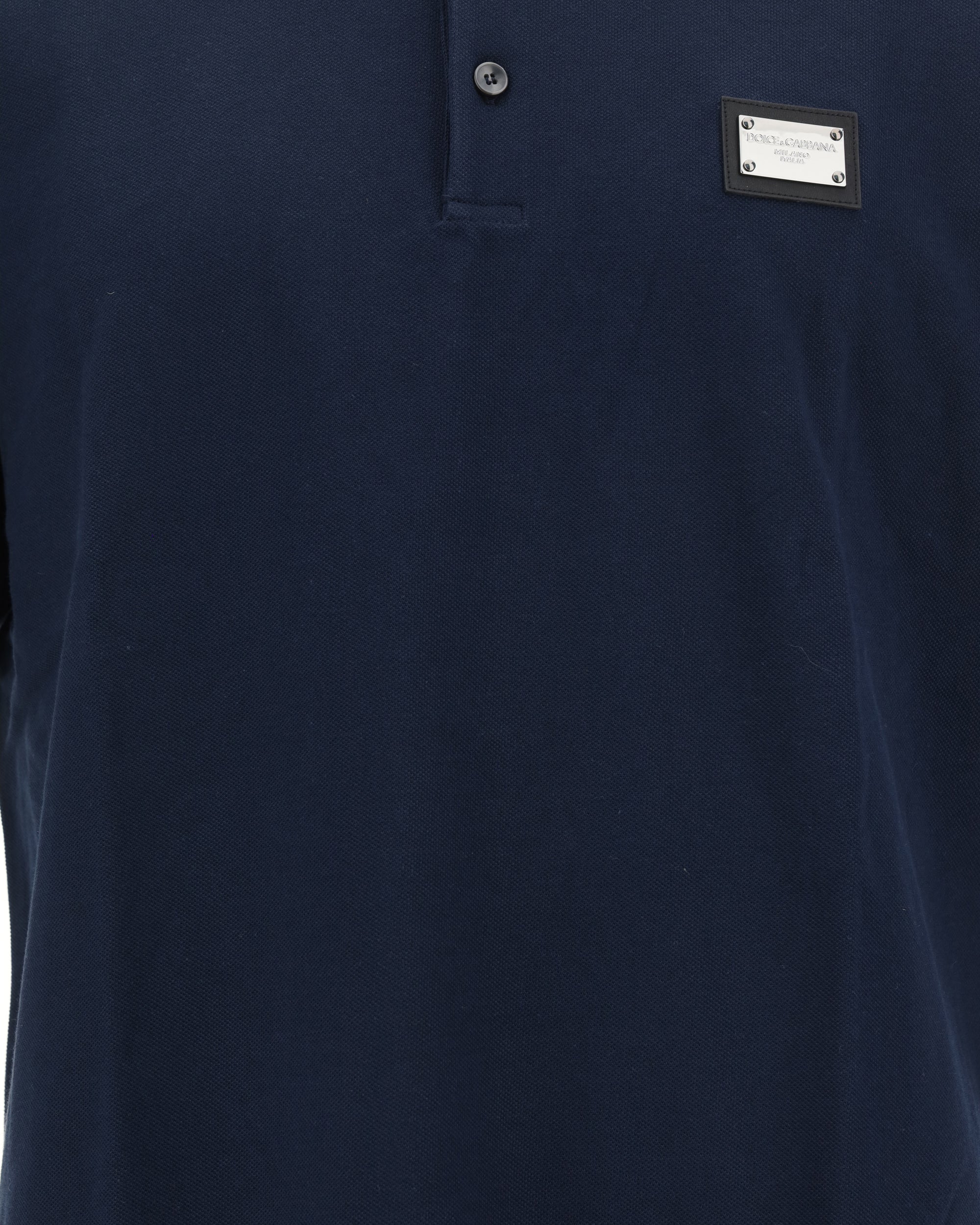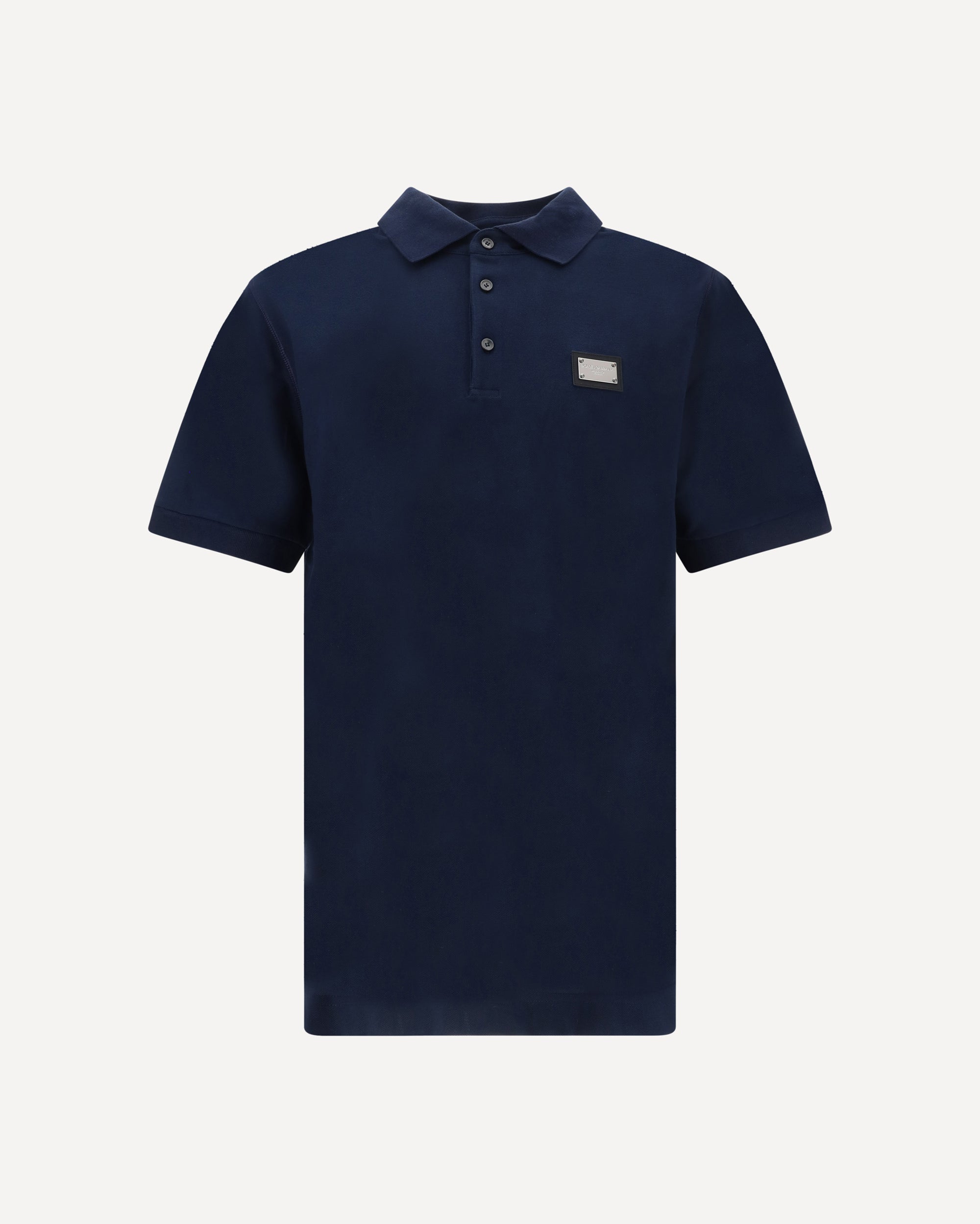 Maglia Polo in Cotone di Dolce&Gabbana, colletto classico a costine, bottoncini sul fronte tono su tono, placca metallica con iconico monogramma D&G del brand incisa e applicata sul fronte, vestibilità regular.