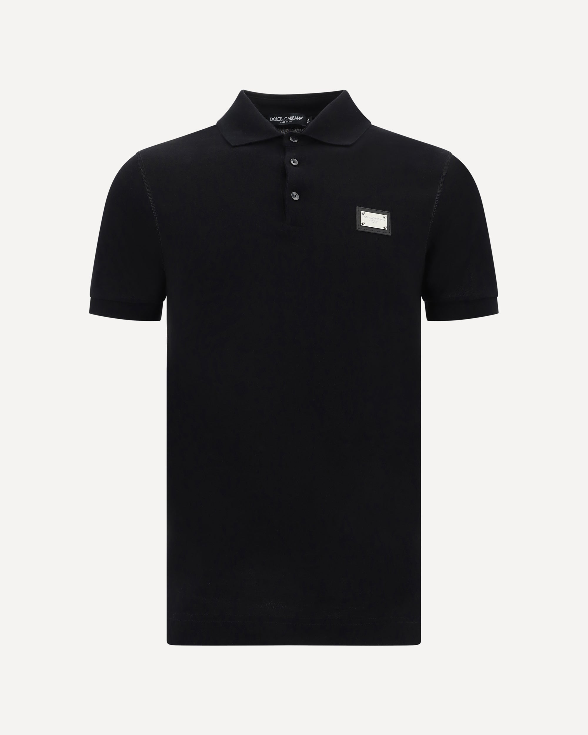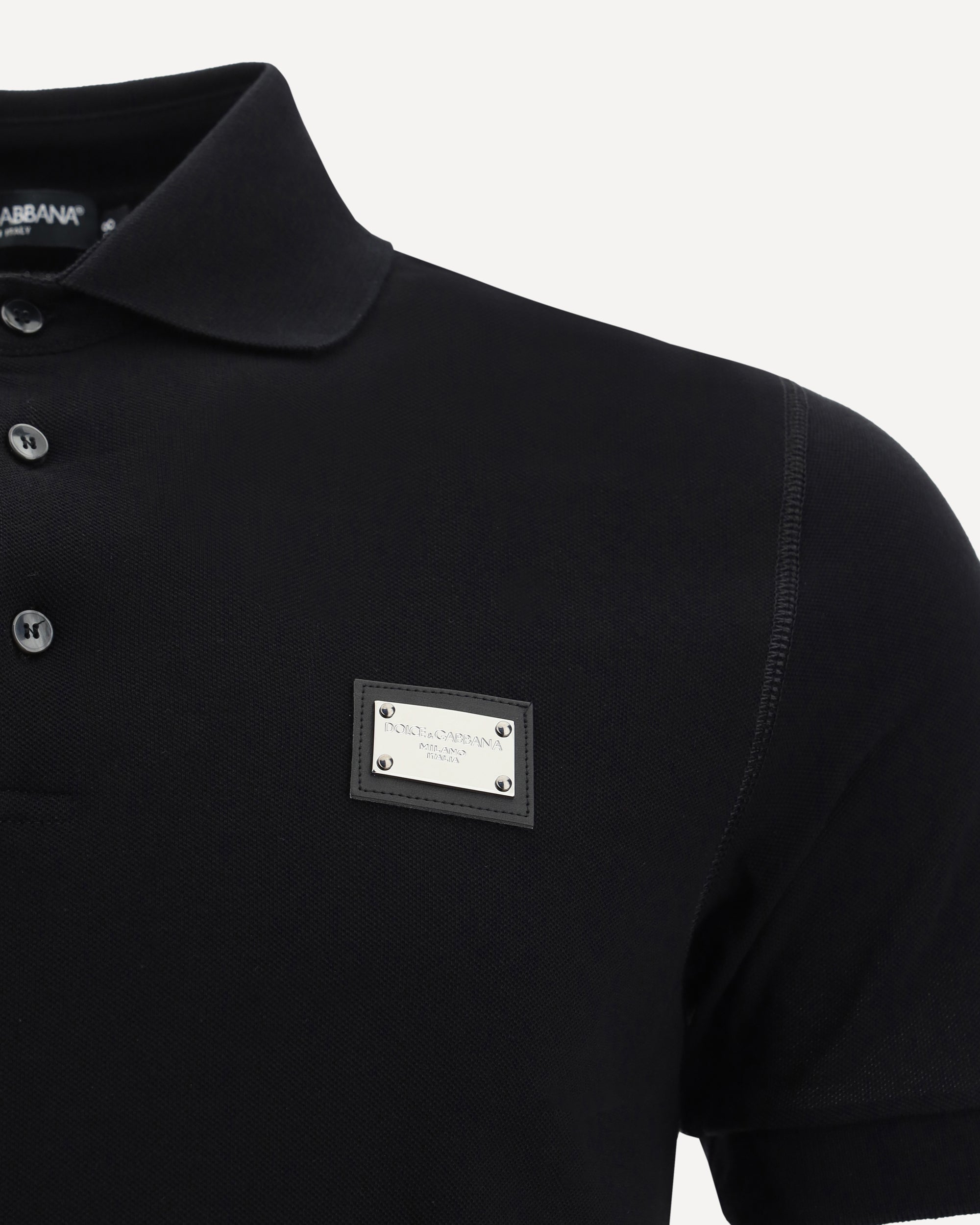 Maglia Polo in Cotone di Dolce&Gabbana, colletto classico a costine, bottoncini sul fronte tono su tono, placca metallica con iconico monogramma D&G del brand incisa e applicata sul fronte, vestibilità regular.