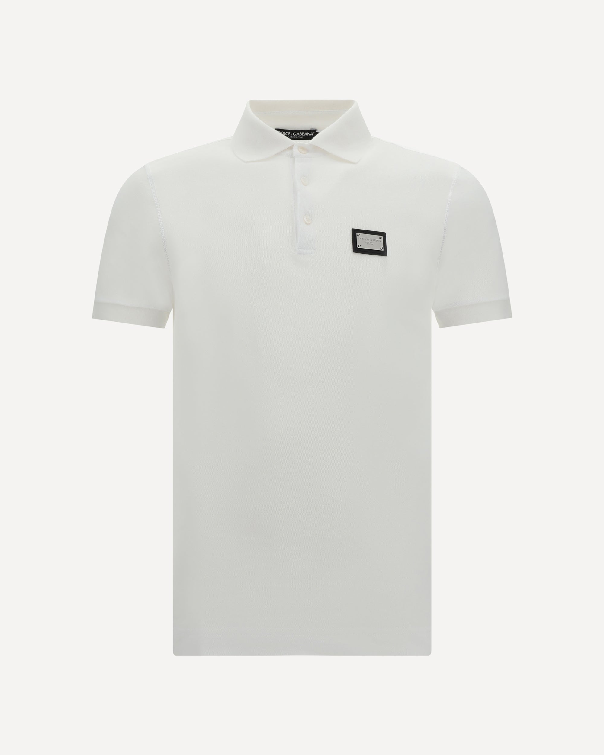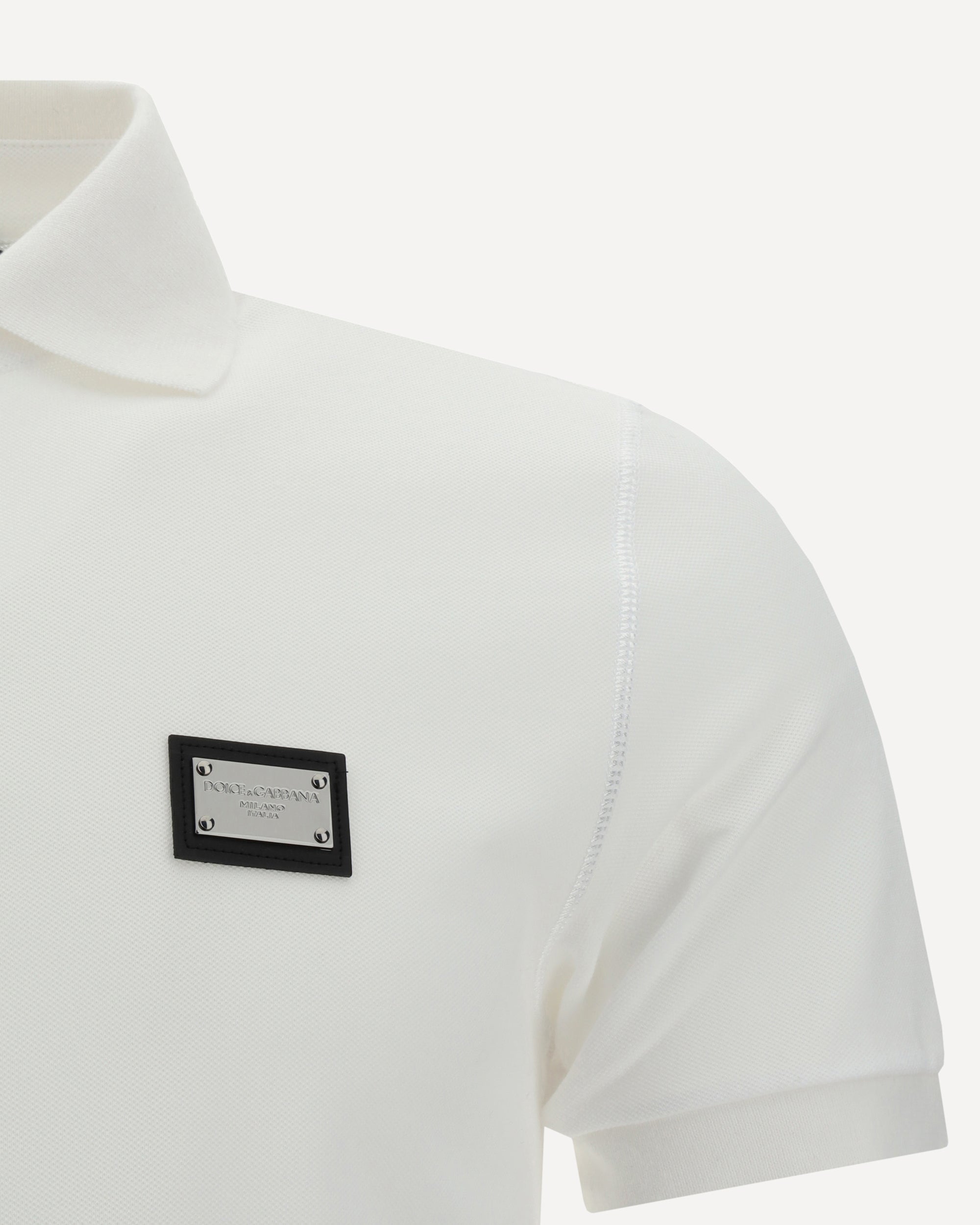 Maglia Polo in Cotone di Dolce&Gabbana, colletto classico a costine, bottoncini sul fronte tono su tono, placca metallica con iconico monogramma D&G del brand incisa e applicata sul fronte, vestibilità regular.