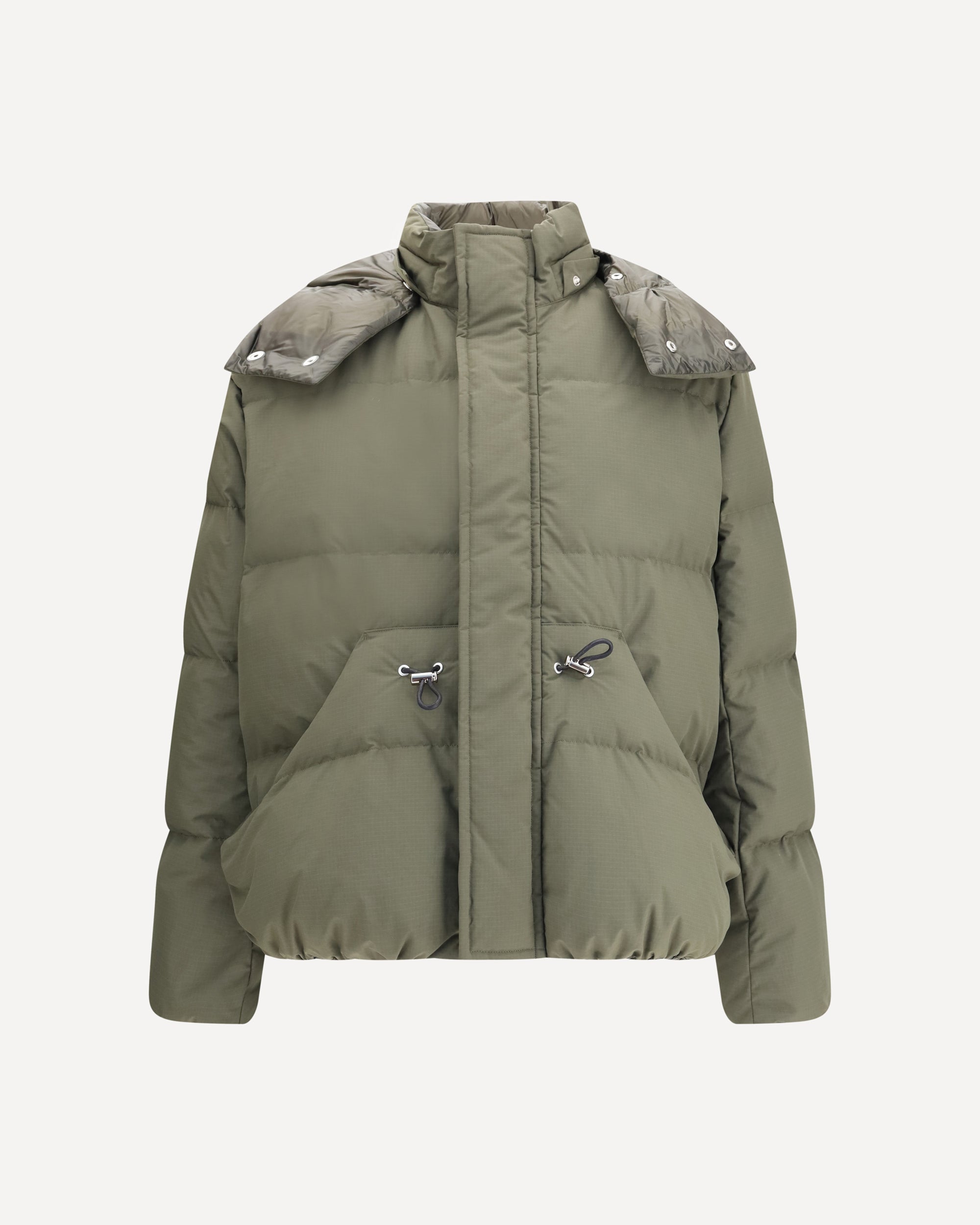 Il Piumino di Sacai unisce funzionalità e design contemporaneo. Realizzato con imbottitura leggera, il modello presenta un cappuccio rimovibile dotato di coulisse regolabili, mentre due ulteriori coulisse sulla parte frontale consentono di modellare la vestibilità vicino alle tasche. Una scelta versatile e raffinata per affrontare la stagione fredda con stile.