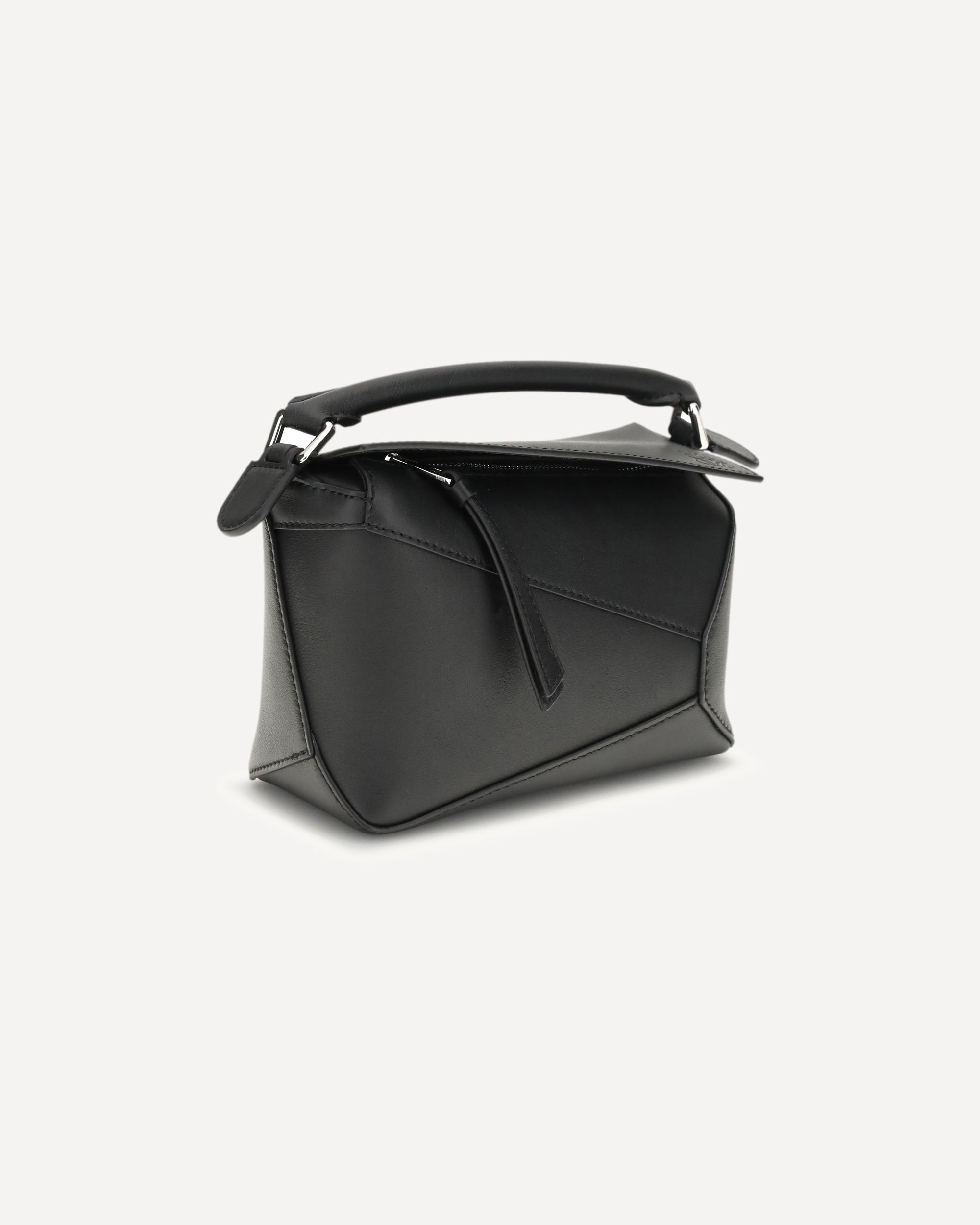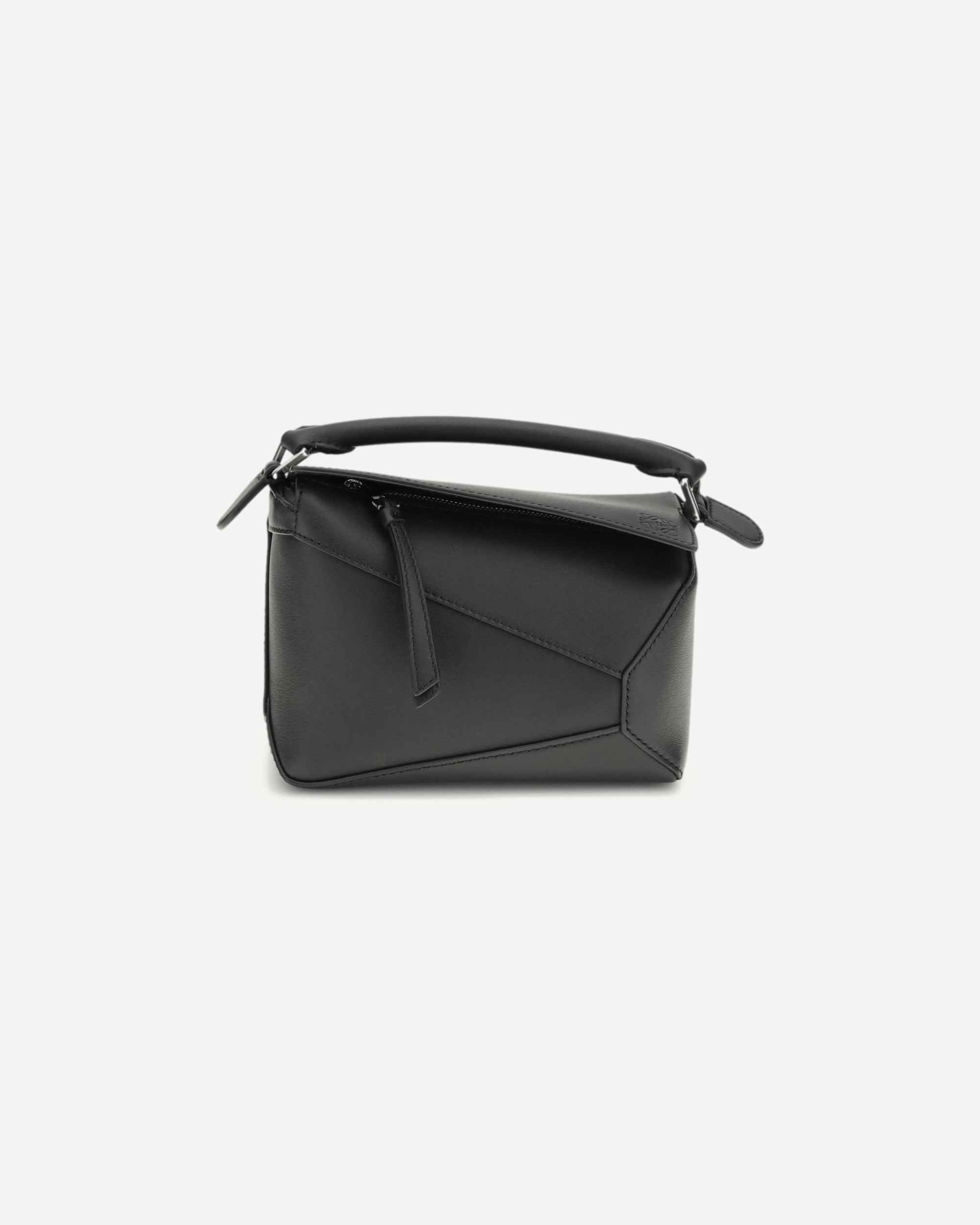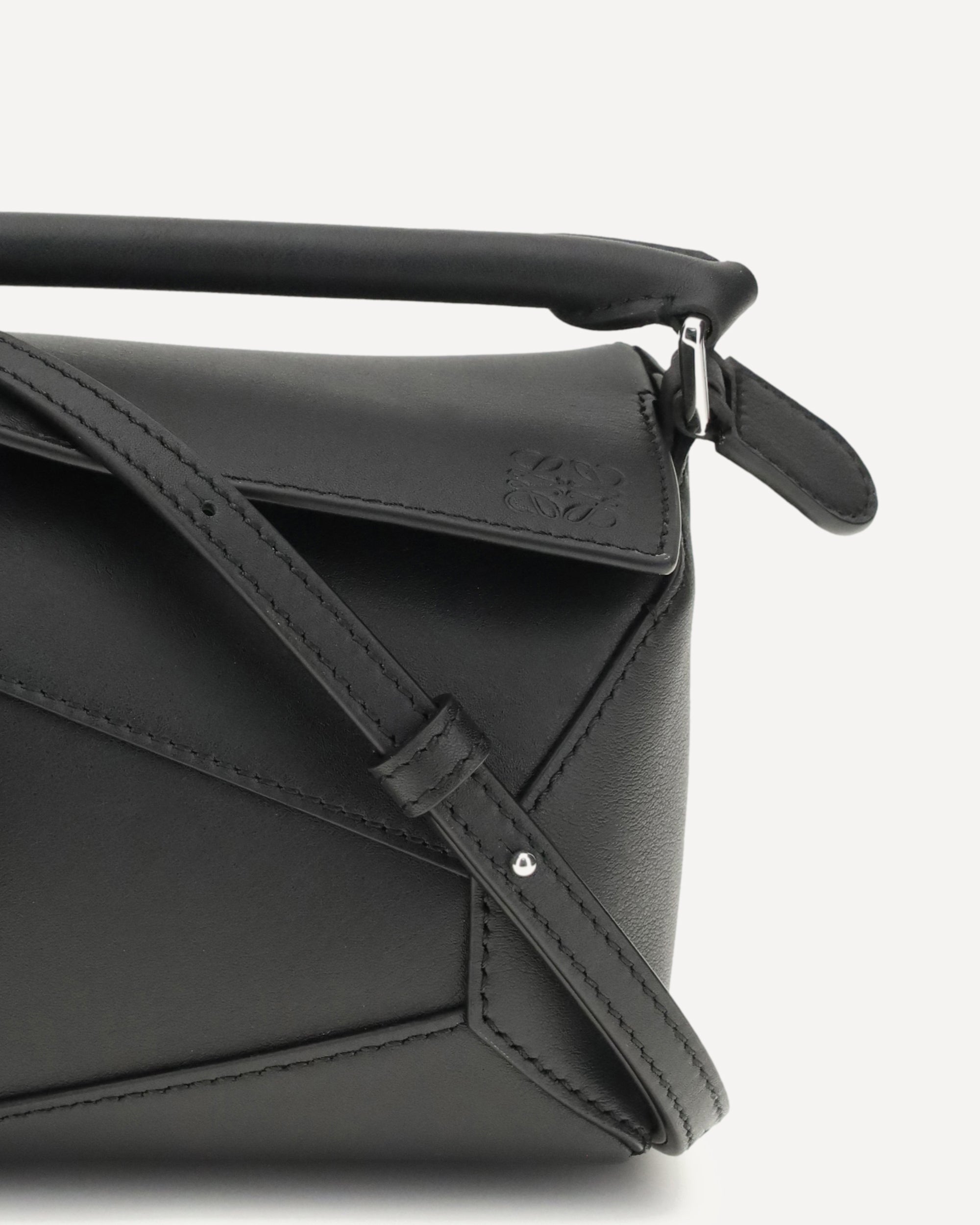 La Borsa a Mano Puzzle Edge mini di Loewe è un elegante accessorio in pelle dal design distintivo. Presenta un manico superiore rigido per una presa comoda e una tracolla regolabile e removibile, che permette di portarla anche a spalla. La chiusura superiore con cerniera è nascosta da una pattina, mantenendo un aspetto pulito e sofisticato. L'iconico logo del brand è stampato a pressione sul fronte, aggiungendo un tocco di riconoscibilità discreta. Il design a pannelli geometrici conferisce un aspetto moderno e strutturato, facendo di questa borsa un pezzo unico e versatile.