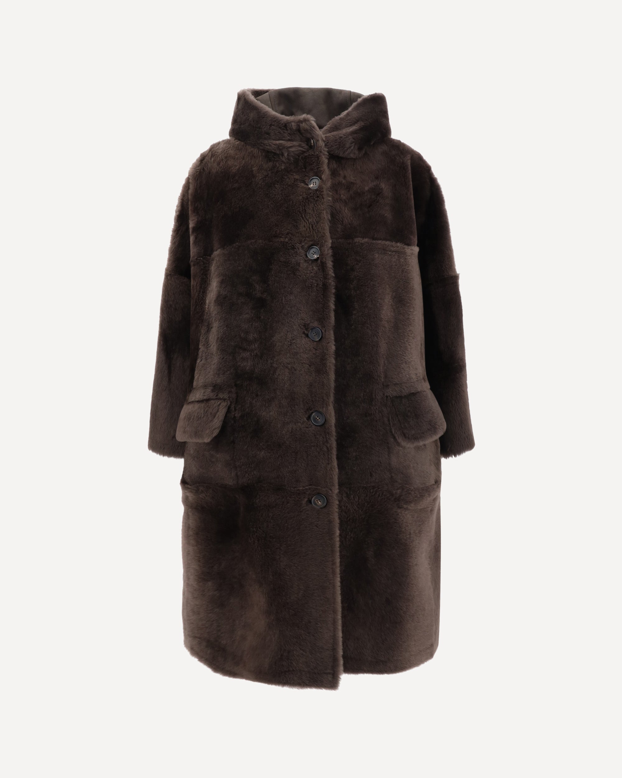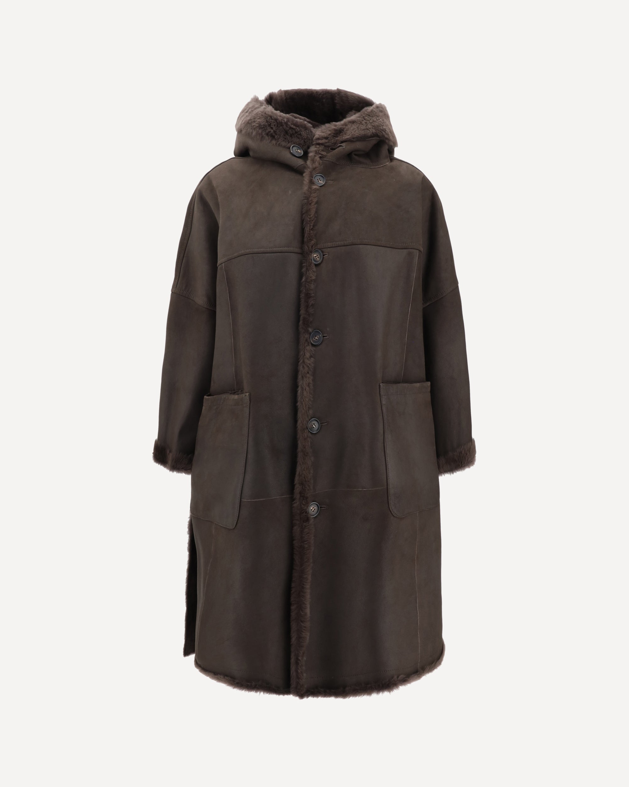 La Pelliccia reversibile di Brunello Cucinelli è un capo di lusso e versatilità, con un modello lungo e un cappuccio che garantisce comfort e protezione. La chiusura frontale con bottoni aggiunge un tocco elegante, mentre le due tasche a filetto con pattina offrono funzionalità. Il lato opposto, realizzato in pelle, presenta tasche applicate che arricchiscono il design, creando un contrasto sofisticato tra i materiali. Un capo ideale per chi cerca uno stile raffinato e pratico, senza rinunciare alla qualità.