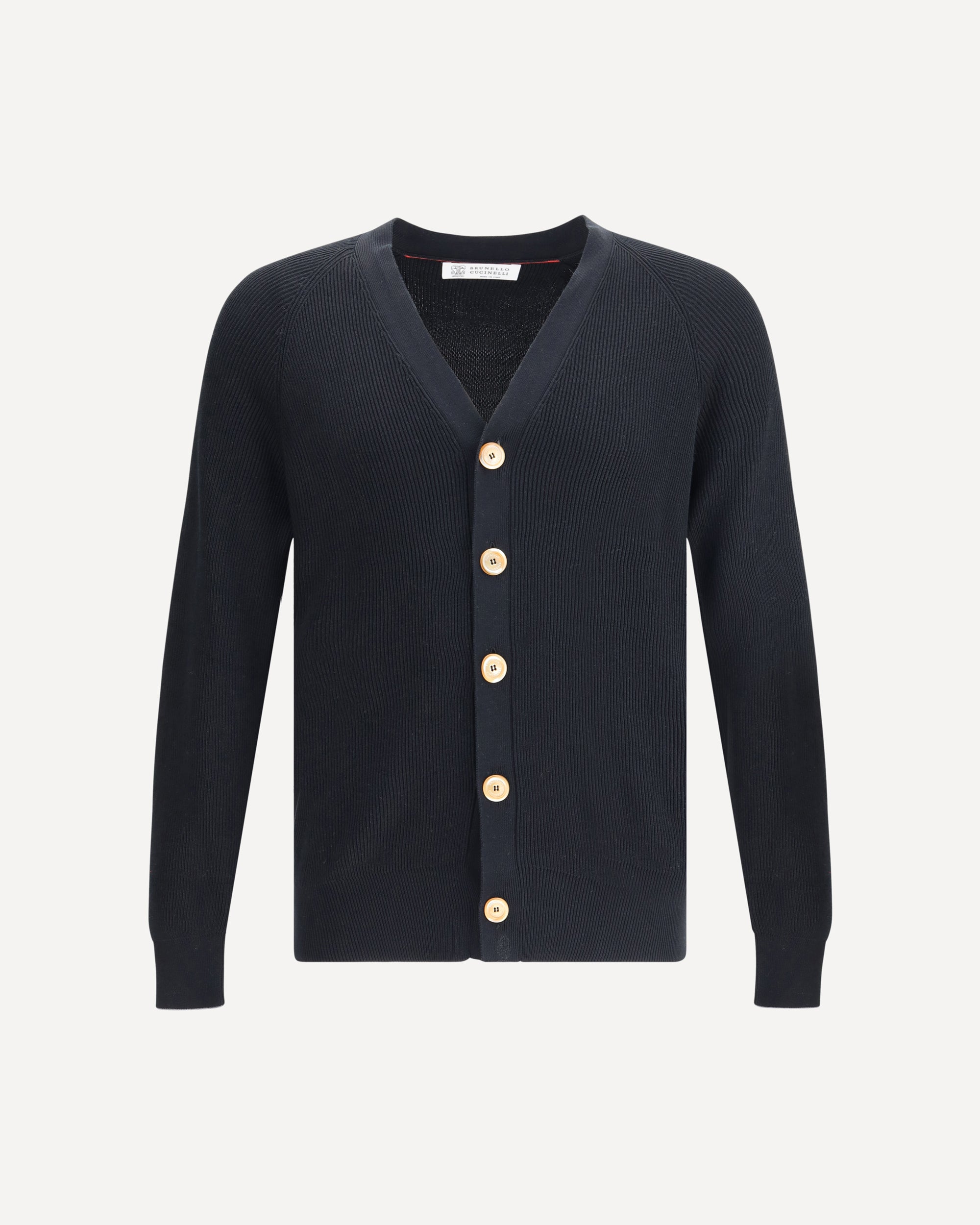 Il Cardigan in cotone firmato Brunello Cucinelli unisce la qualità dei materiali a un design sofisticato e versatile. Caratterizzato da uno scollo a V sul fronte e una chiusura frontale con bottoni a contrasto, il cardigan presenta polsini a costine e un orlo a costine che assicurano una vestibilità confortevole e ben strutturata. Il design a coste aggiunge una texture ricercata, rendendo questo capo un elemento essenziale per il guardaroba elegante e casual.