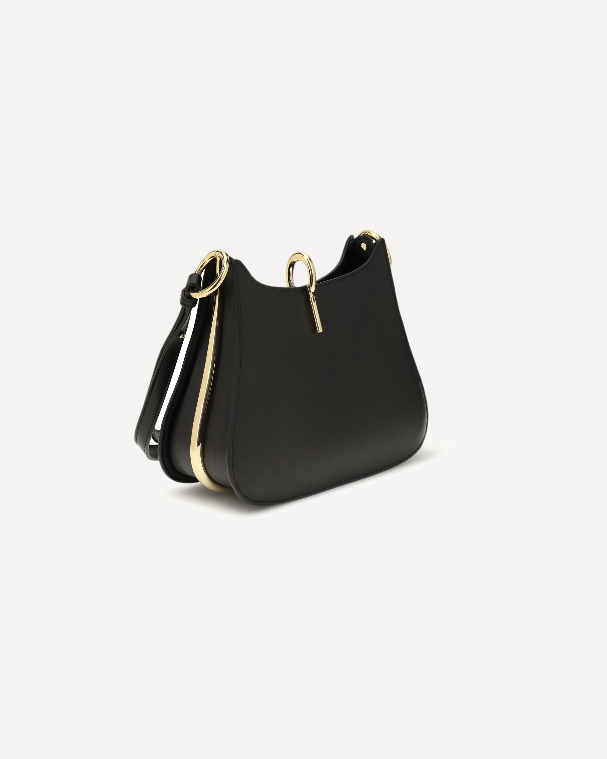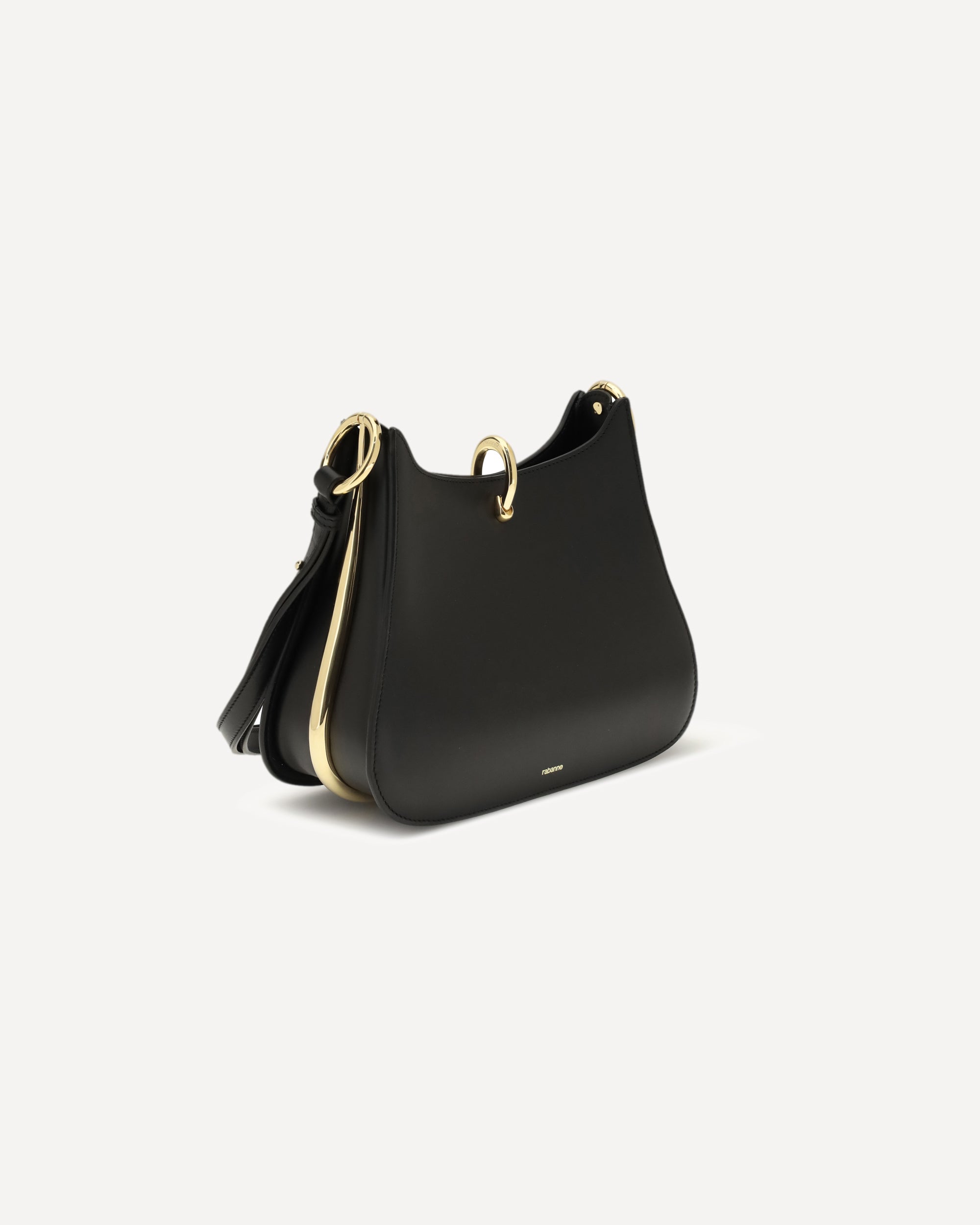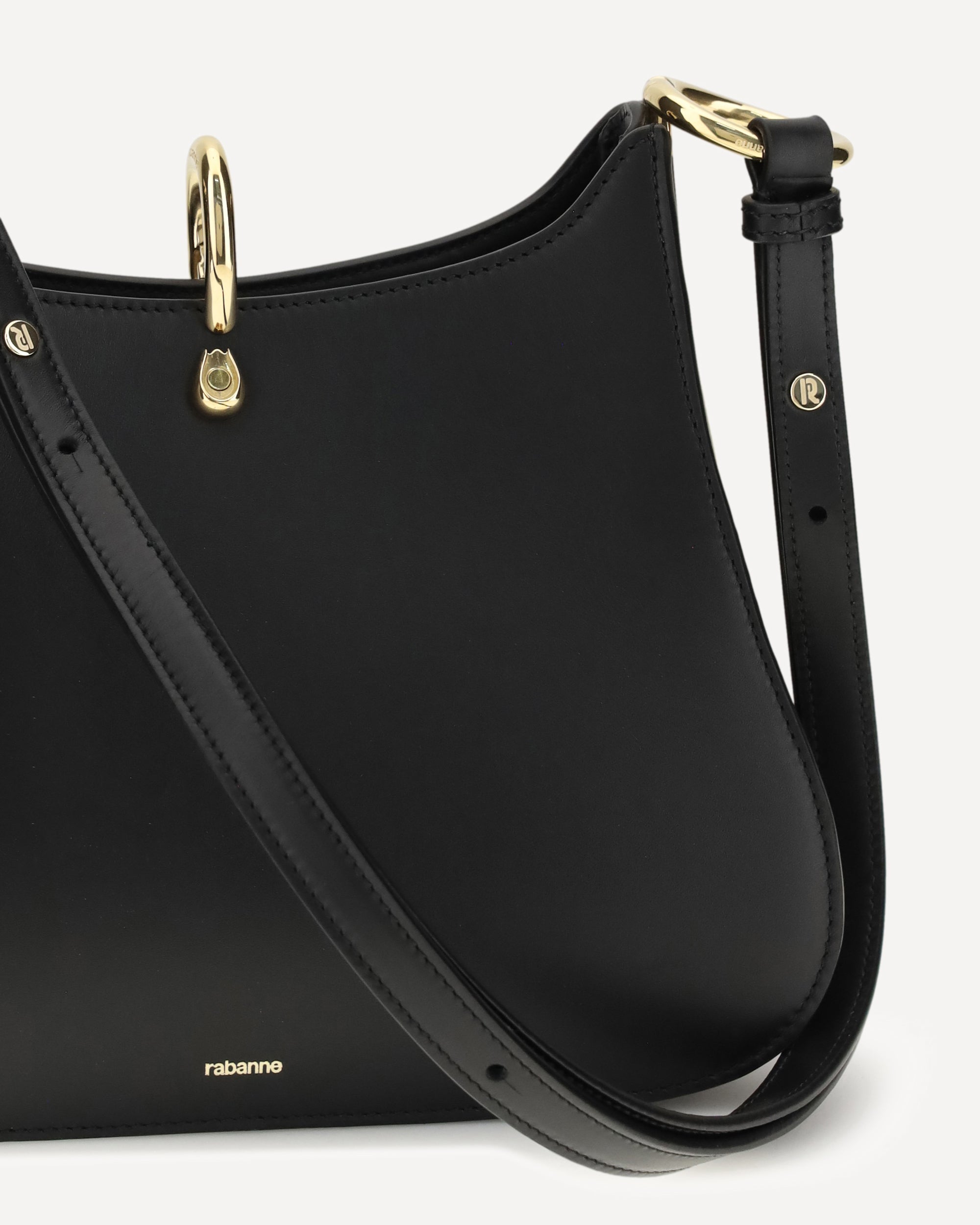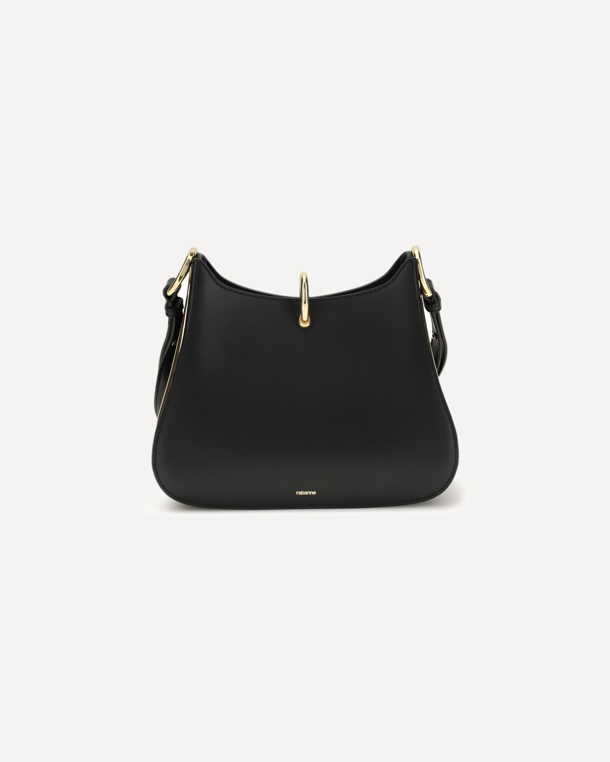 La Borsa a Spalla Ring di Rabanne è un vero e proprio gioiello di design. Adornata da una struttura metallica dorata e dettagli con anelli in oro, questa borsa cattura subito l'attenzione. Il manico in pelle regolabile offre diverse opzioni di portabilità, permettendo di indossarla sia a spalla che crossbody. Il sistema di chiusura a anello metallico scorrevole, ispirato agli iconici anelli di Rabanne, aggiunge un tocco distintivo e innovativo, facendo di questa borsa un accessorio elegante e funzionale, perfetto per ogni occasione.