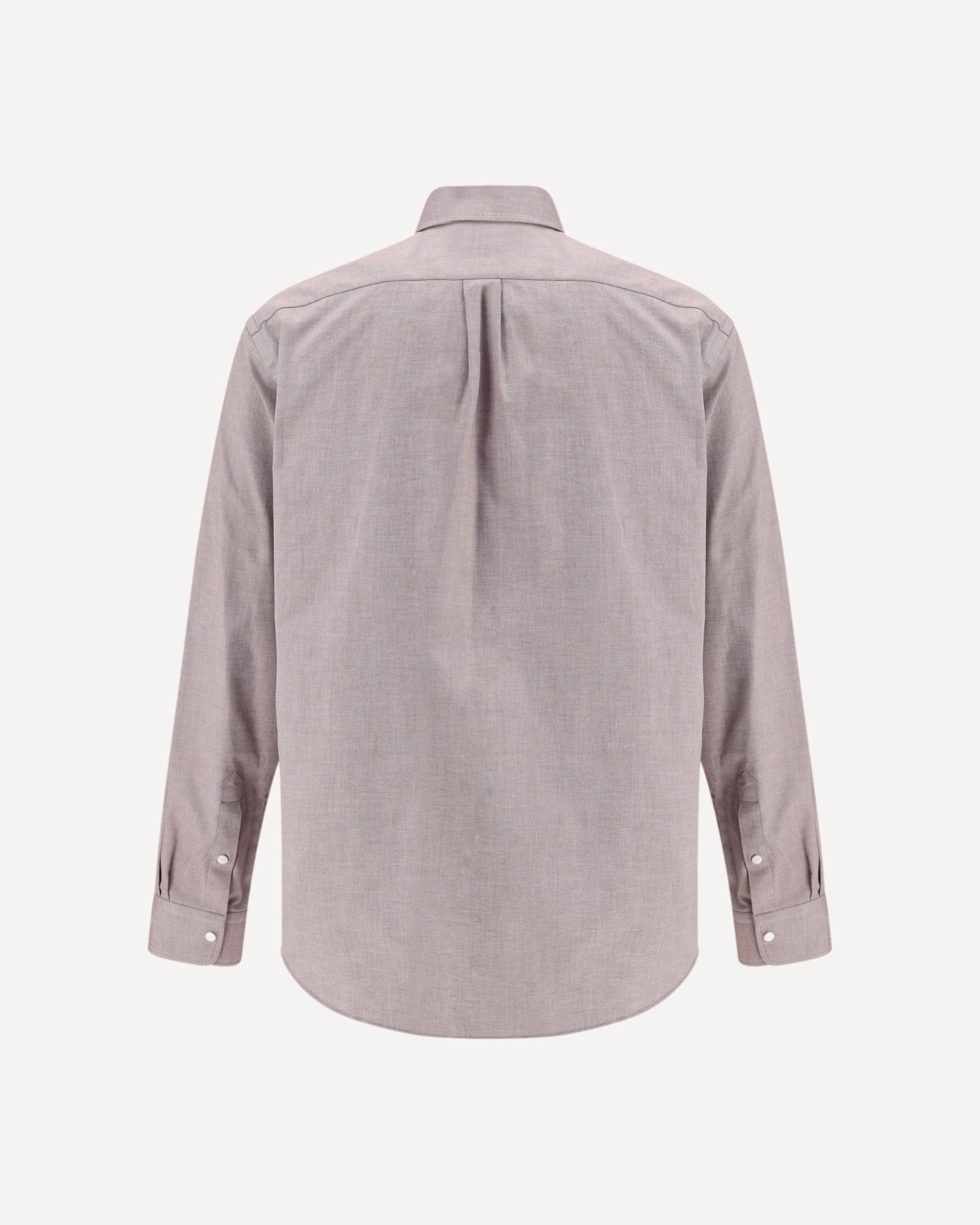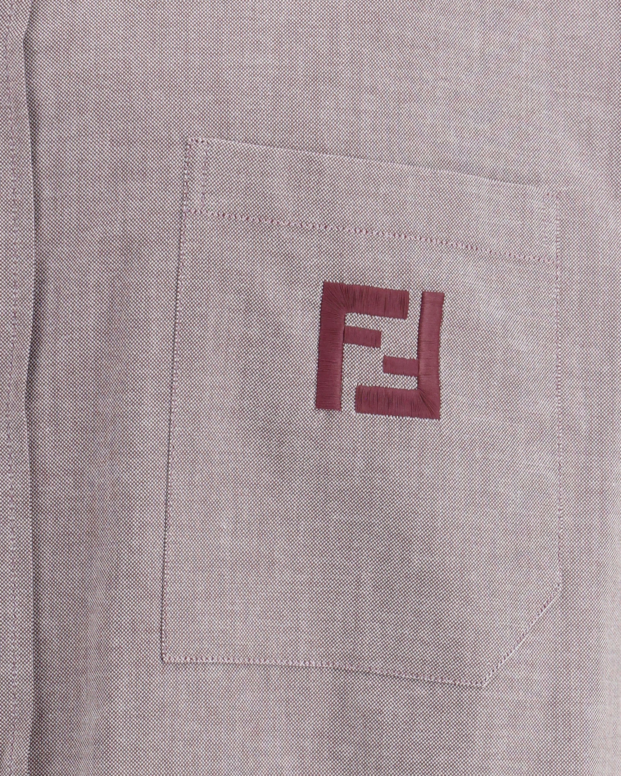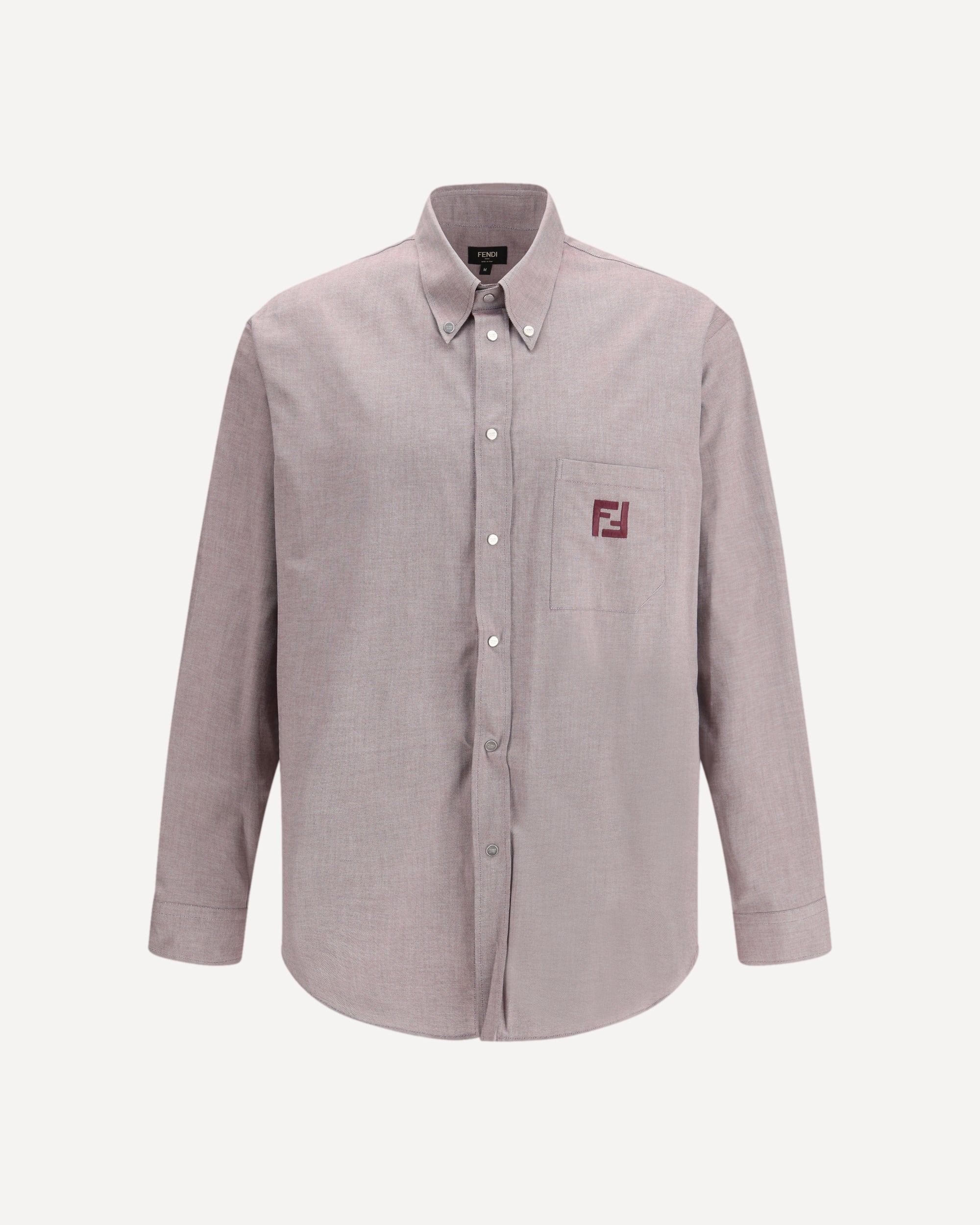La Camicia in cotone Oxford di Fendi è un modello comfort fit a maniche lunghe, rifinito con colletto botton-down e taschino applicato sul petto. La chiusura presenta bottoni a vista, mentre il tessuto in Oxford di cotone cangiante nei toni del bordeaux conferisce un effetto luminoso e ricercato. Il capo è completato dal dettaglio FF ricamato a contrasto sulla tasca frontale, per un tocco iconico e distintivo.