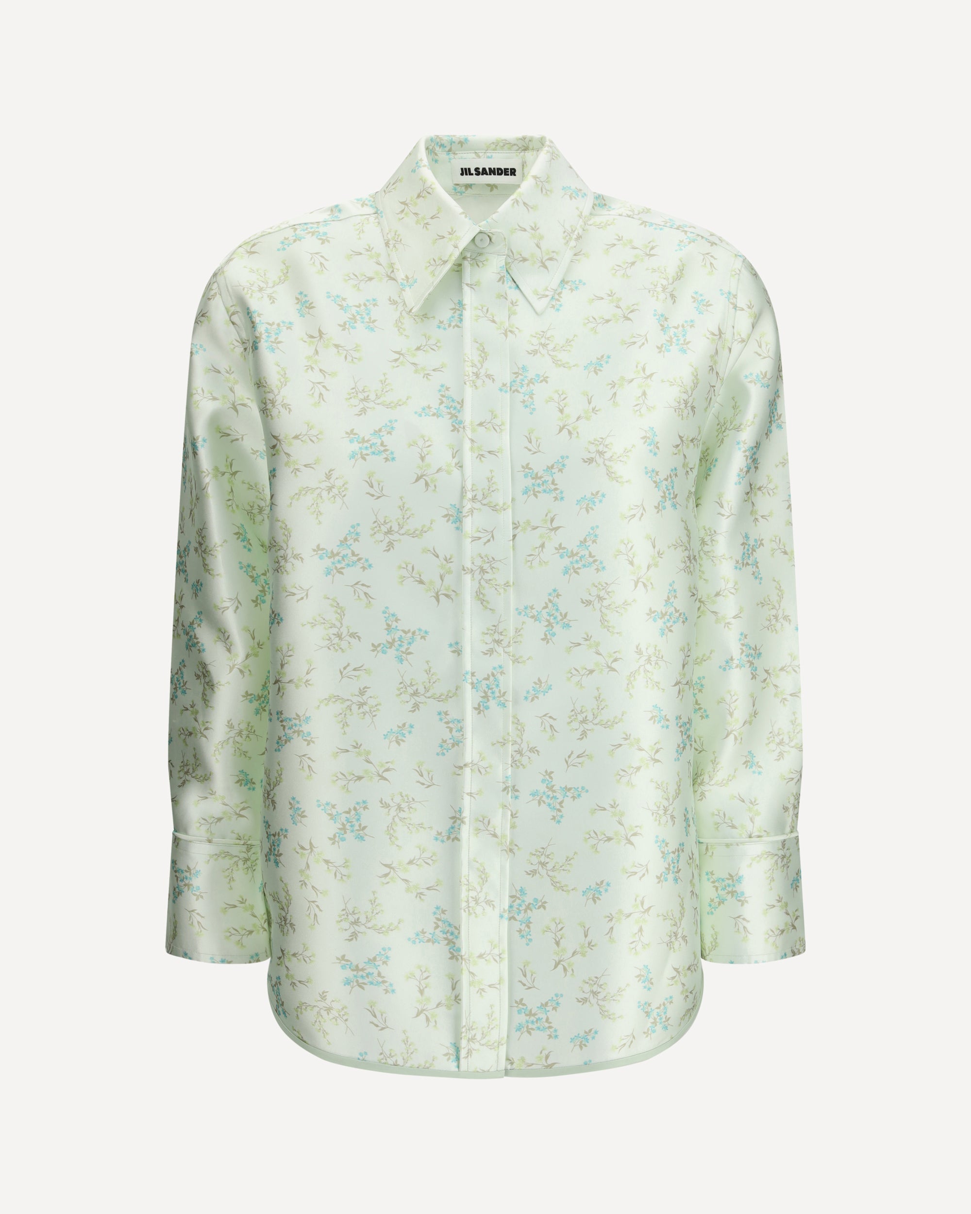La Camicia a stampa floreale di Jil Sander combina eleganza minimale e raffinatezza grafica. Realizzata in una delicata tonalità di verde chiaro, è caratterizzata da una stampa floreale all-over che dona movimento e leggerezza al design. Il colletto a punta, la chiusura con bottoni e le maniche lunghe completano il capo con un tocco di sofisticata semplicità, tipico della maison.