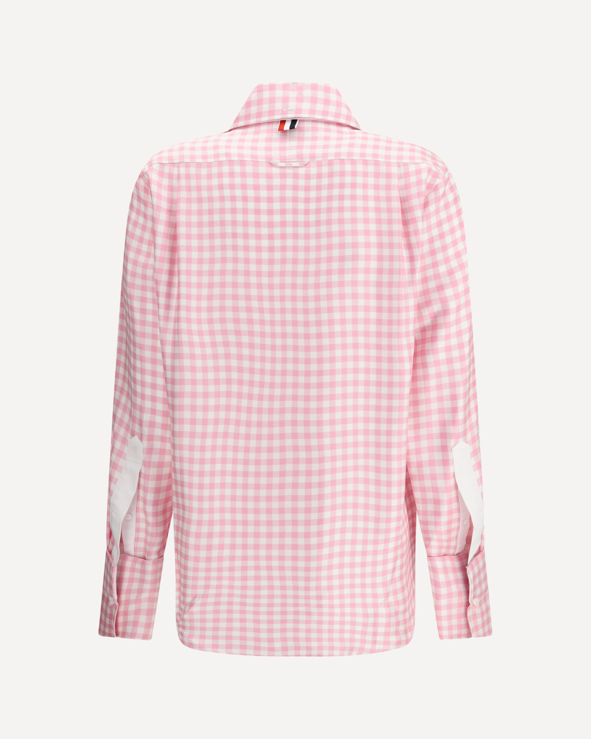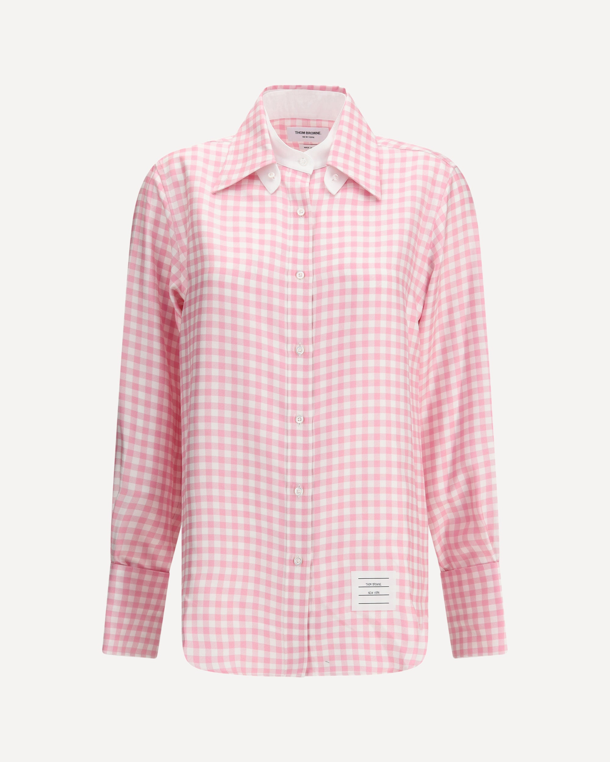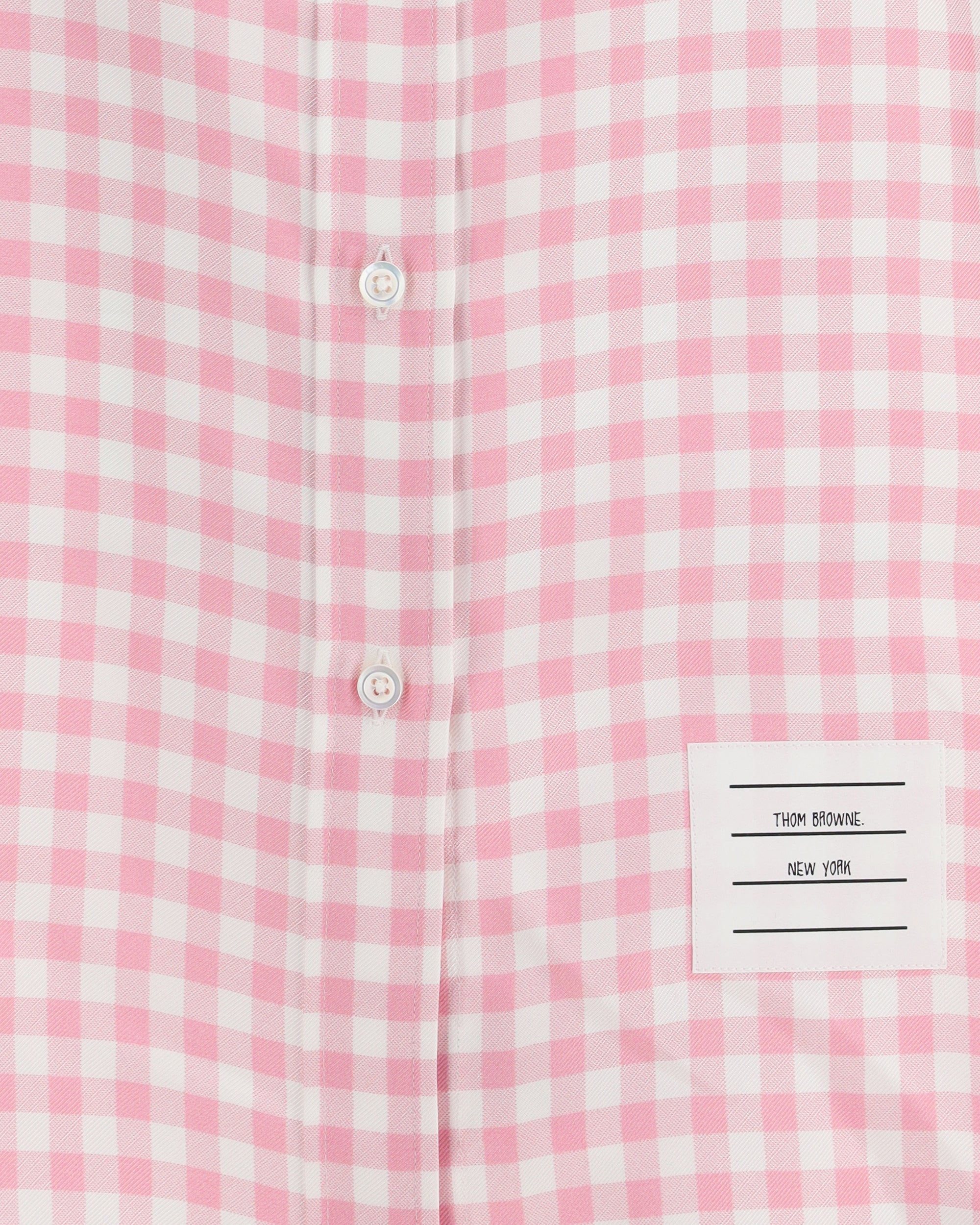 La Camicia a quadri in seta di Thom Browne reinterpreta un classico intramontabile con un tocco di freschezza contemporanea. Caratterizzata dal motivo gingham in delicato rosa pastello, presenta colletto a punta, chiusura con bottoni e maniche lunghe con polsini abbottonati. Un capo essenziale che combina rigore sartoriale e leggerezza, ideale per look raffinati dal fascino senza tempo.