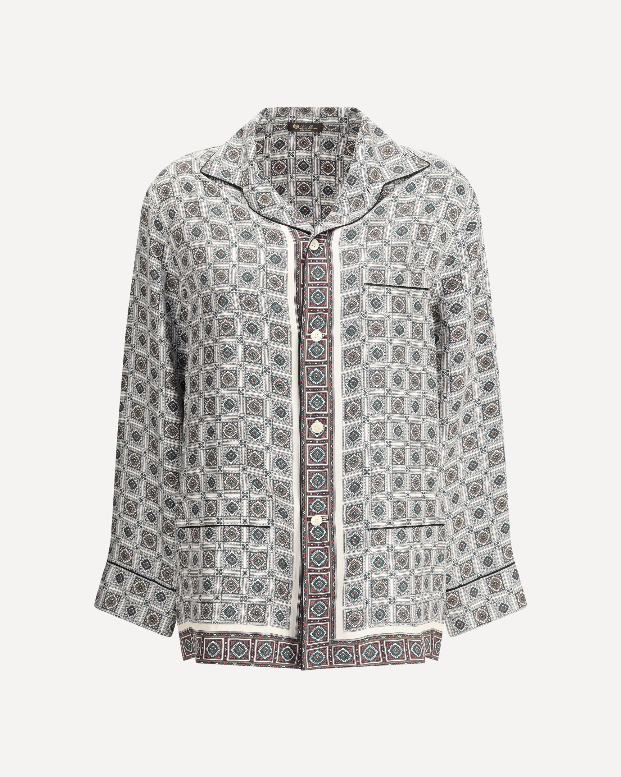 La Camicia Liam di Loro Piana è un capo dallo spirito fresco e sofisticato. Caratterizzata da un collo aperto e una stampa floreale che dona un tocco di delicatezza, presenta due tasche applicate sul petto, di cui una più piccola per dettagli funzionali. I polsi con bordo arrotolato e la chiusura con bottoni in madreperla esaltano l’artigianalità del modello, mentre le finiture a contrasto sul profilo aggiungono carattere. La vestibilità leggermente oversize completa il design, conferendo comodità e uno stile moderno.