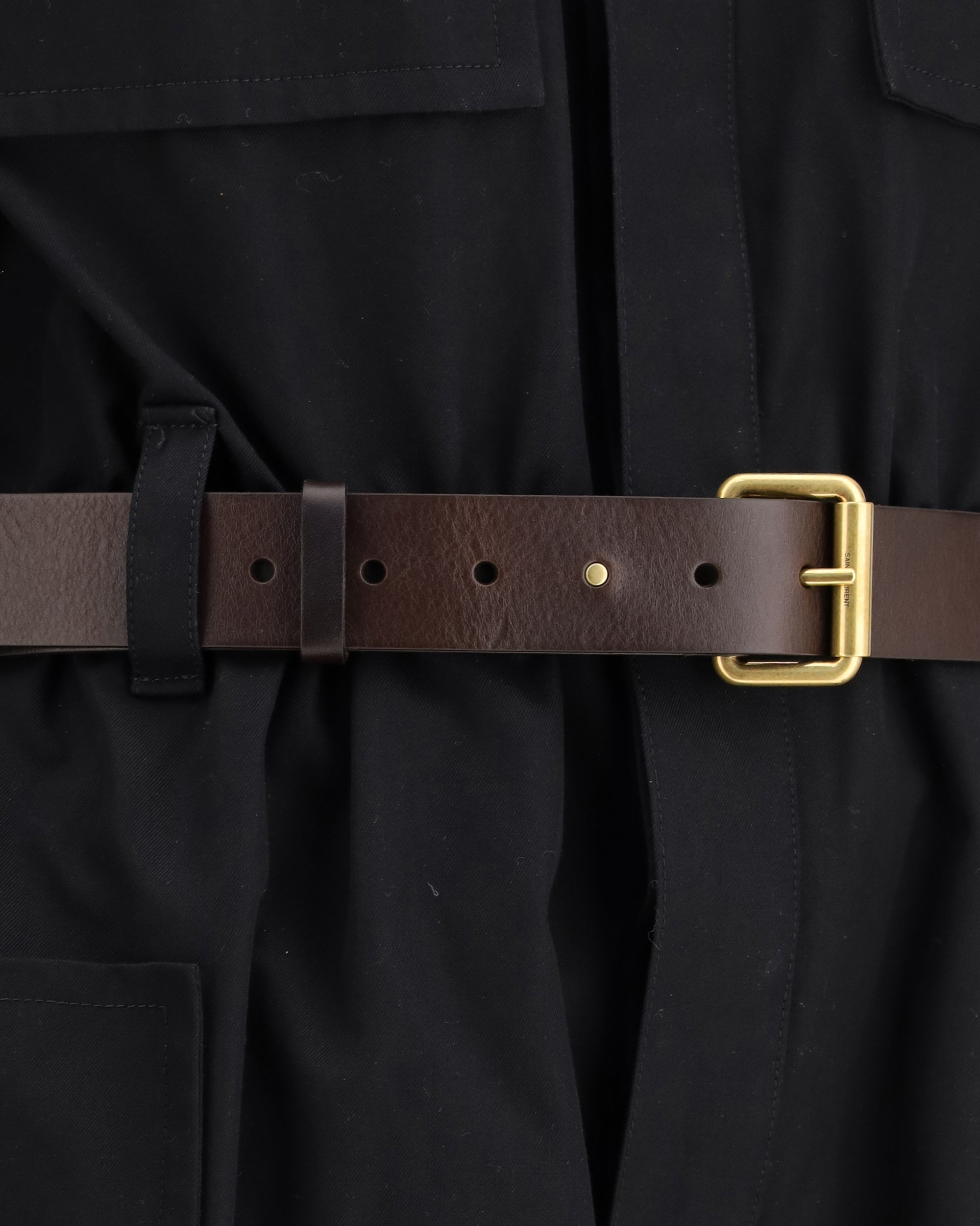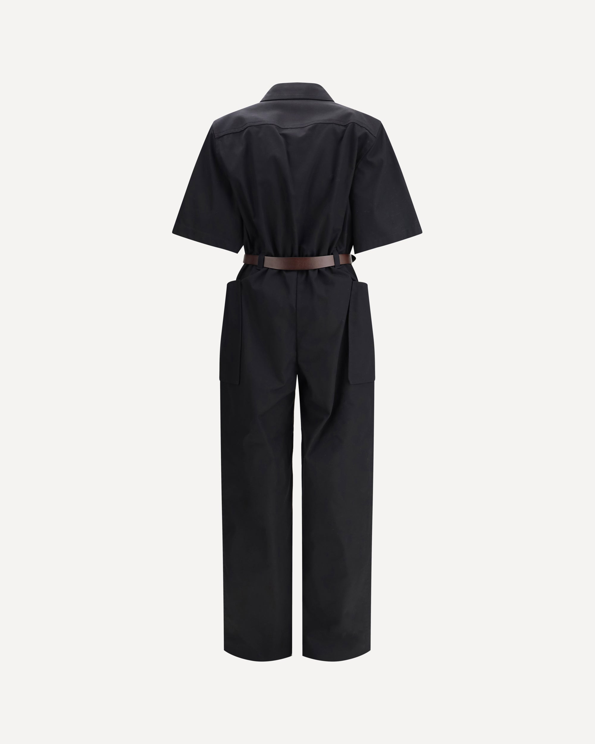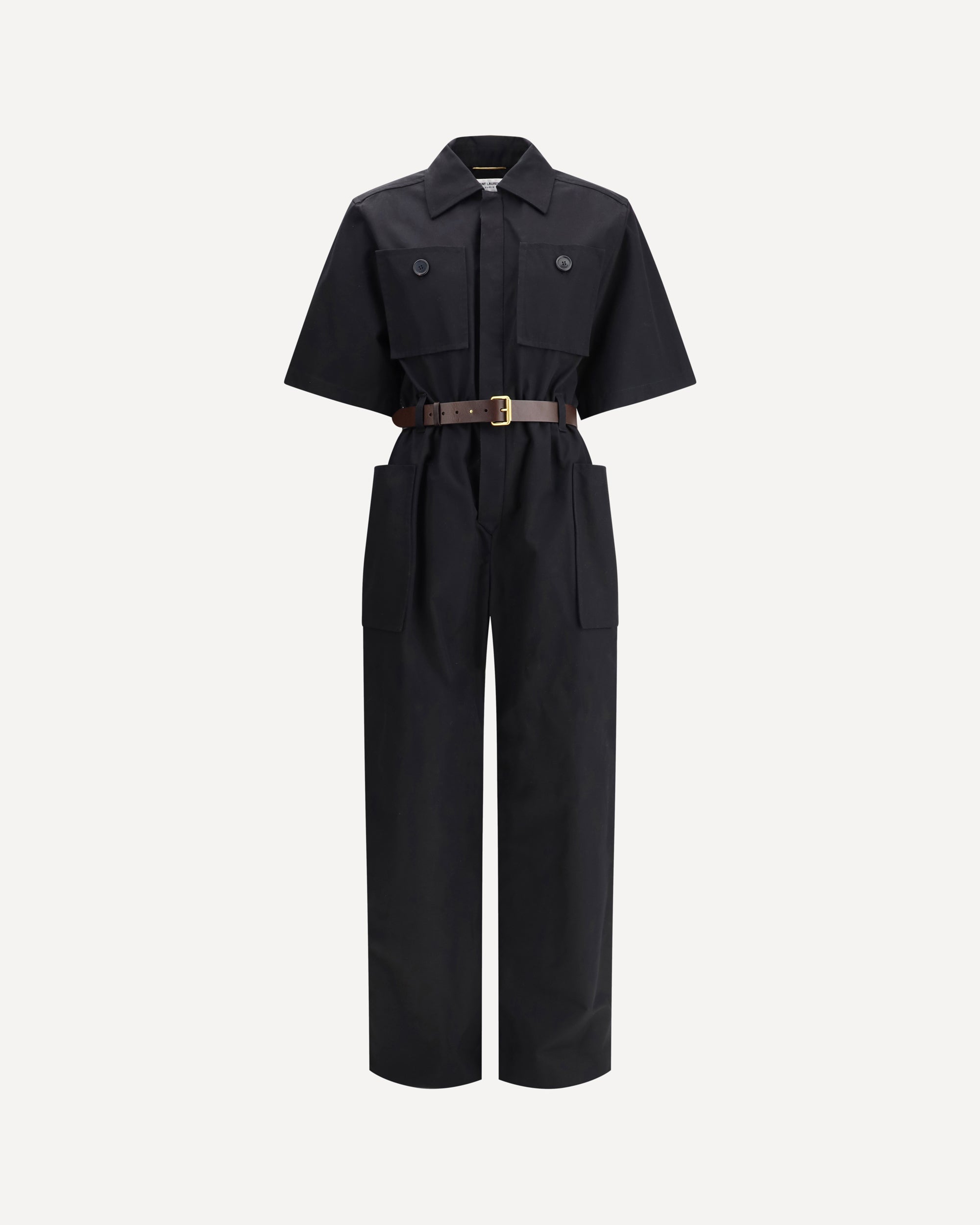 La Jumpsuit a maniche corte di Saint Laurent è un capo audace e contemporaneo, caratterizzato da un colletto classico e una chiusura frontale con bottoni che le conferiscono un look raffinato ma pratico. Le due tasche applicate sul fronte con bottoni e le tasche cargo aggiungono un tocco di funzionalità e un accento utilitario. Il girovita elasticizzato con passanti per cintura permette di personalizzare la vestibilità, mentre la gamba dritta dona un taglio pulito e moderno. Perfetta per un look casual-chic o per un'uscita informale, questa jumpsuit unisce praticità e stile con l'inconfondibile eleganza di Saint Laurent.