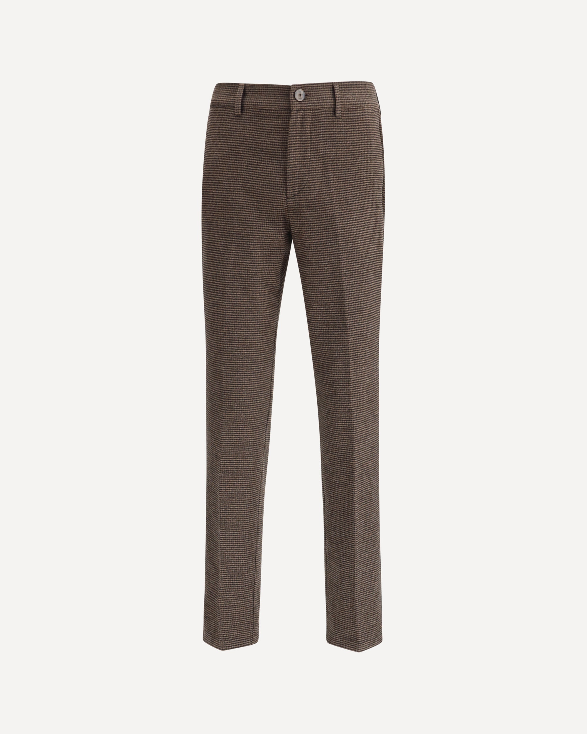 I Pantaloni Solferino di Cruna, realizzati in cotone stretch a spina di pesce, offrono un perfetto equilibrio tra comfort e raffinatezza. Il taglio regular fit con vita elasticizzata e coulisse nascosta rende il capo estremamente versatile, pensato per un’eleganza rilassata che non rinuncia allo stile. Il tessuto resca, morbido e leggermente elasticizzato, conferisce fluidità e carattere al design. Da indossare in abbinamento con la giacca Tribeca nello stesso tessuto e colore, per un total look dal fascino Elevated Casual.