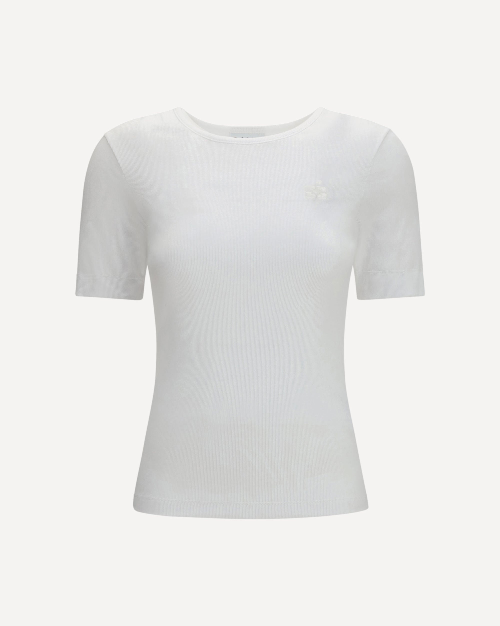 La T-shirt in cotone a costine di Ganni è un capo semplice ma dallo stile distintivo. Realizzata in cotone a costine, presenta un ricamo con logo che aggiunge un tocco di raffinatezza. Con girocollo e maniche corte, è perfetta per creare look casual e versatili, mantenendo un equilibrio tra comfort e stile.