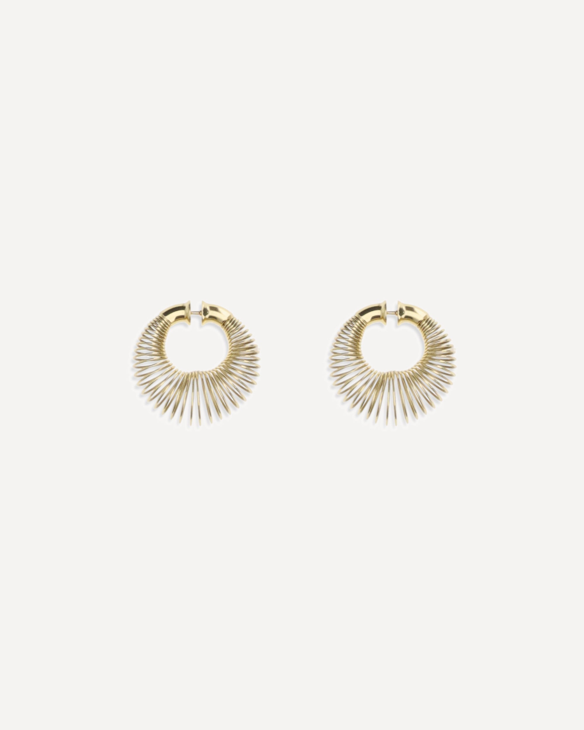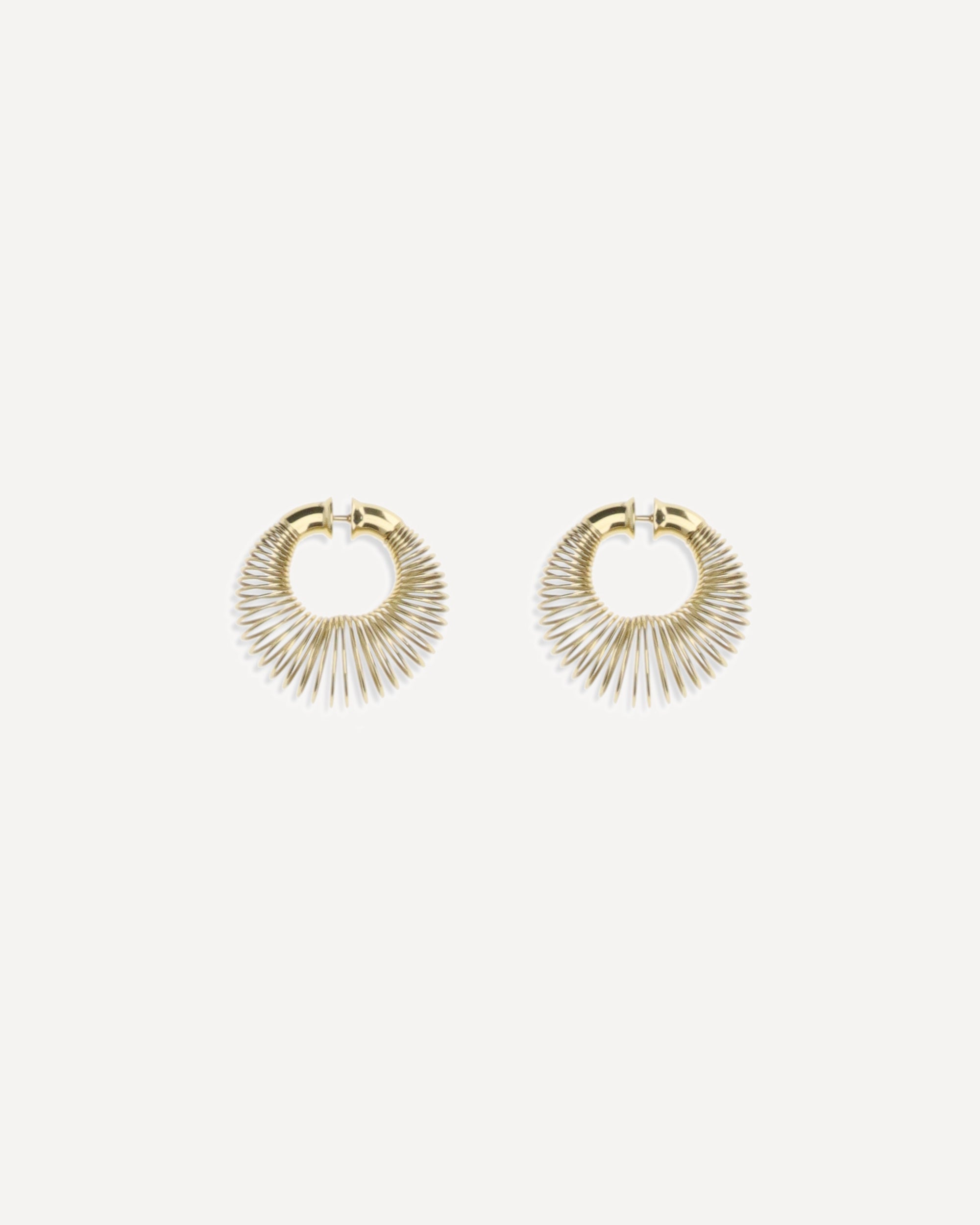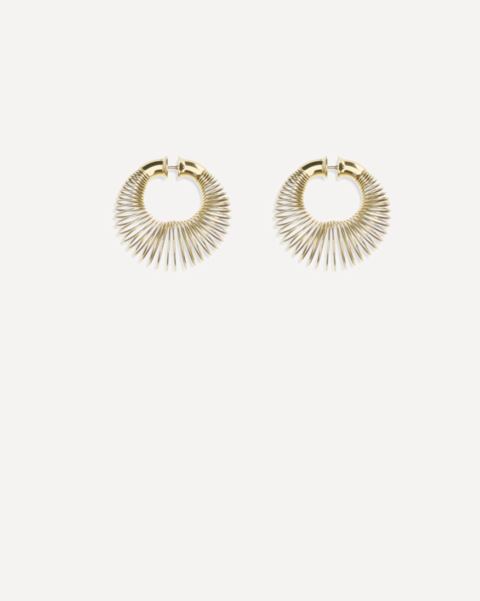 Gli Orecchini Spiral di Alaïa uniscono minimalismo e design scultoreo. Realizzati in acciaio inossidabile, il sottile filo forma eleganti spirali che avvolgono l’orecchio, pensati per orecchie forate, per un effetto moderno e distintivo.